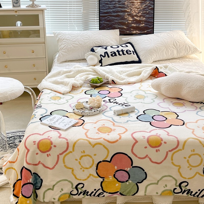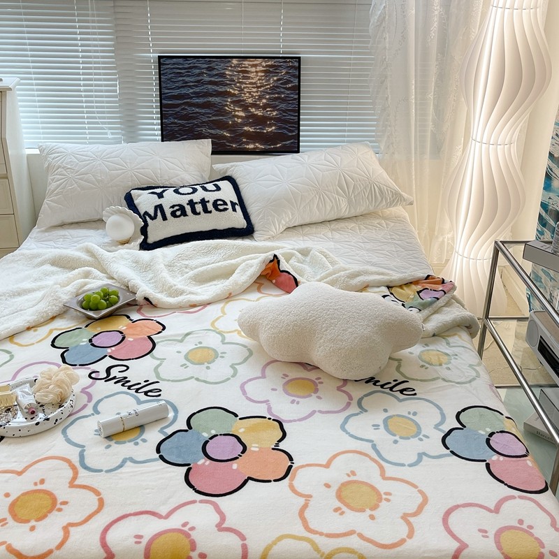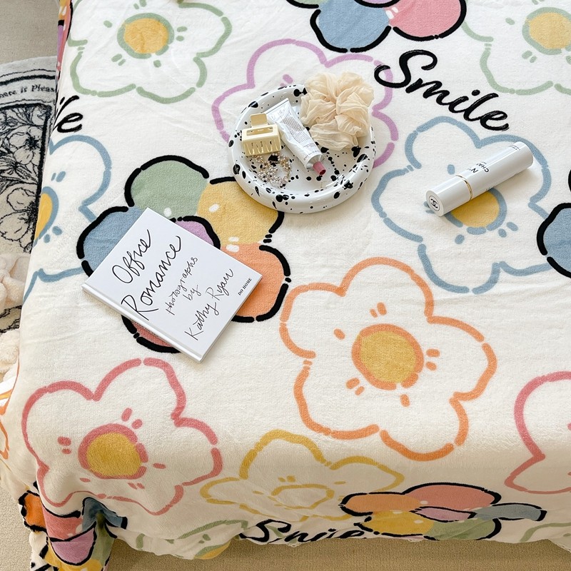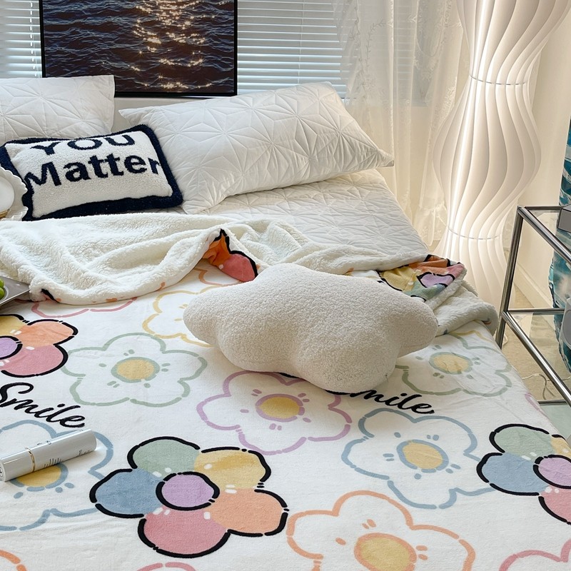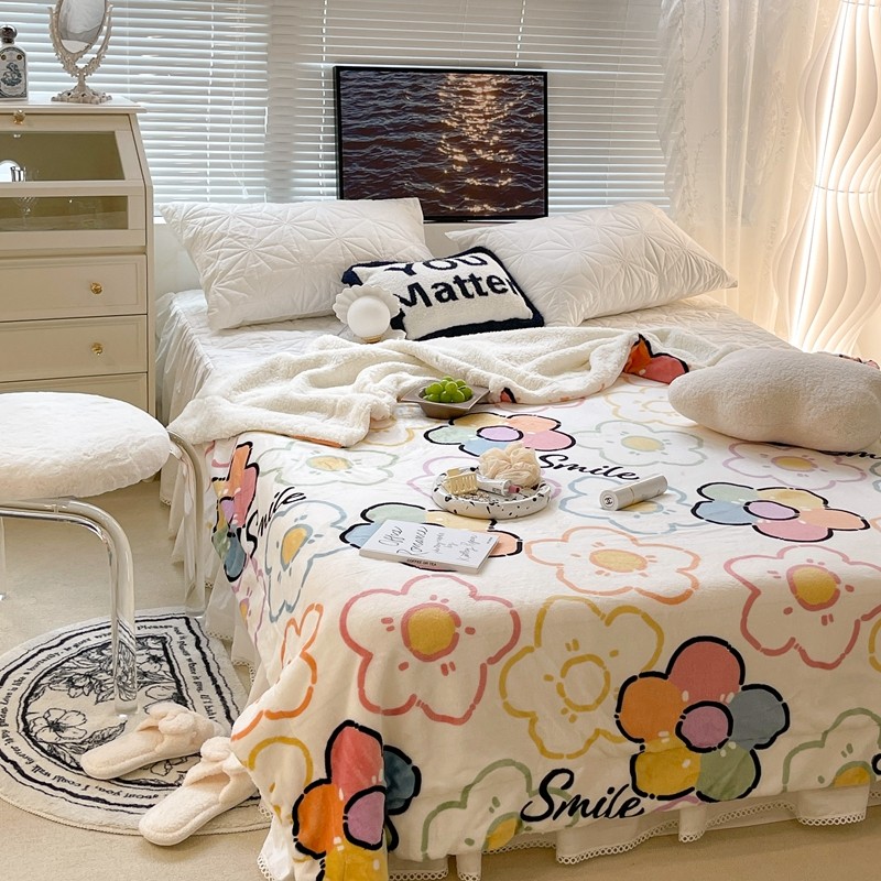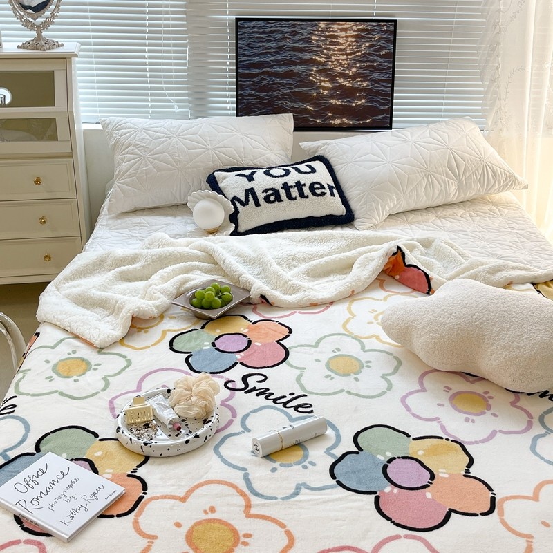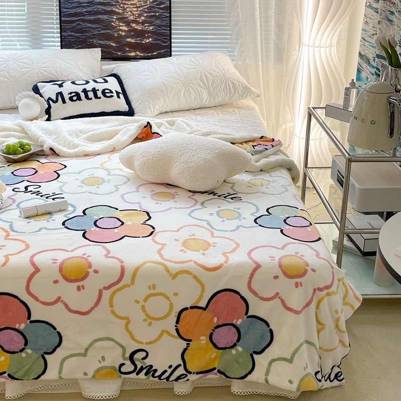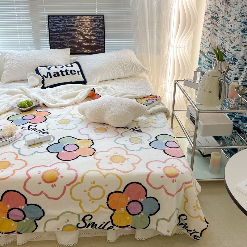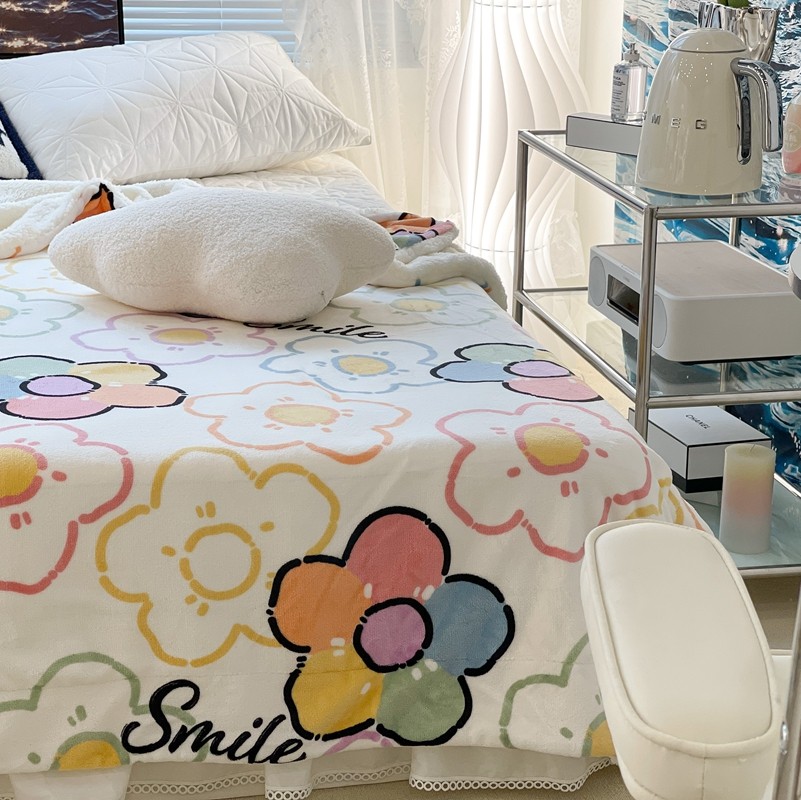 昔可家纺 2021新款牛奶羊羔绒印花毯 彩色微笑花