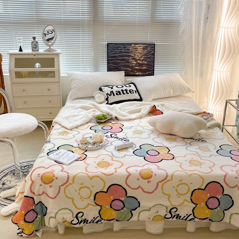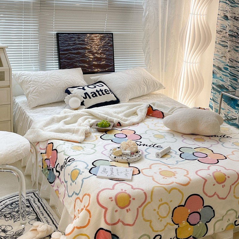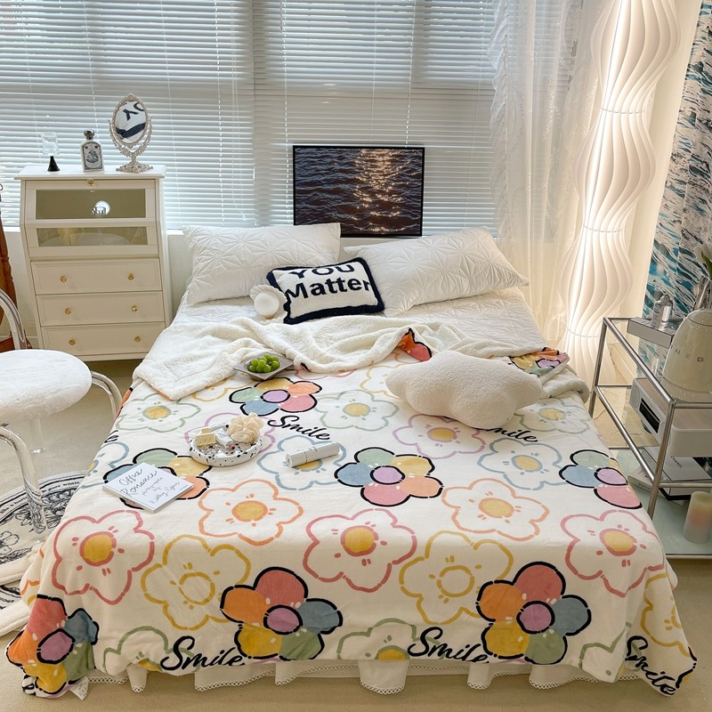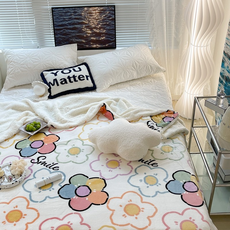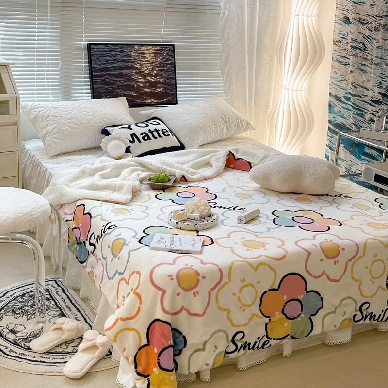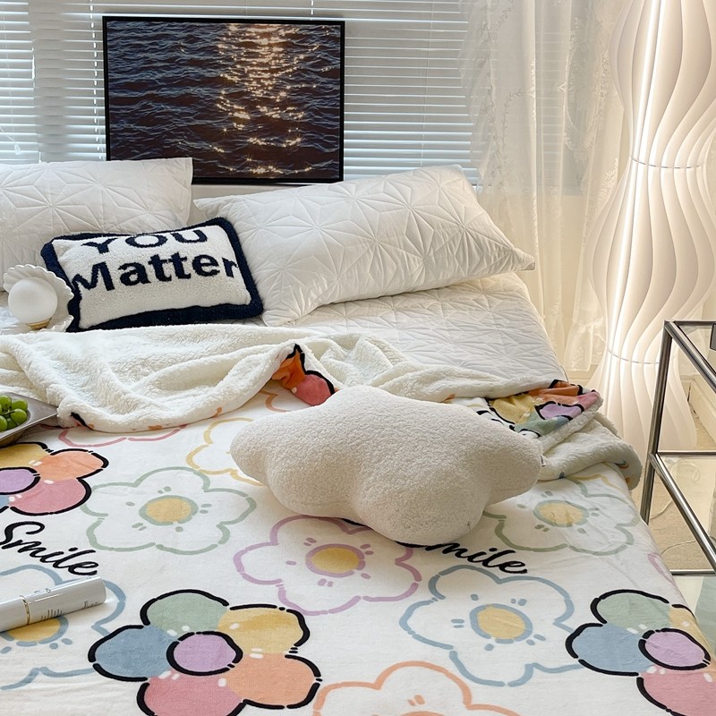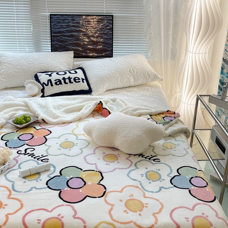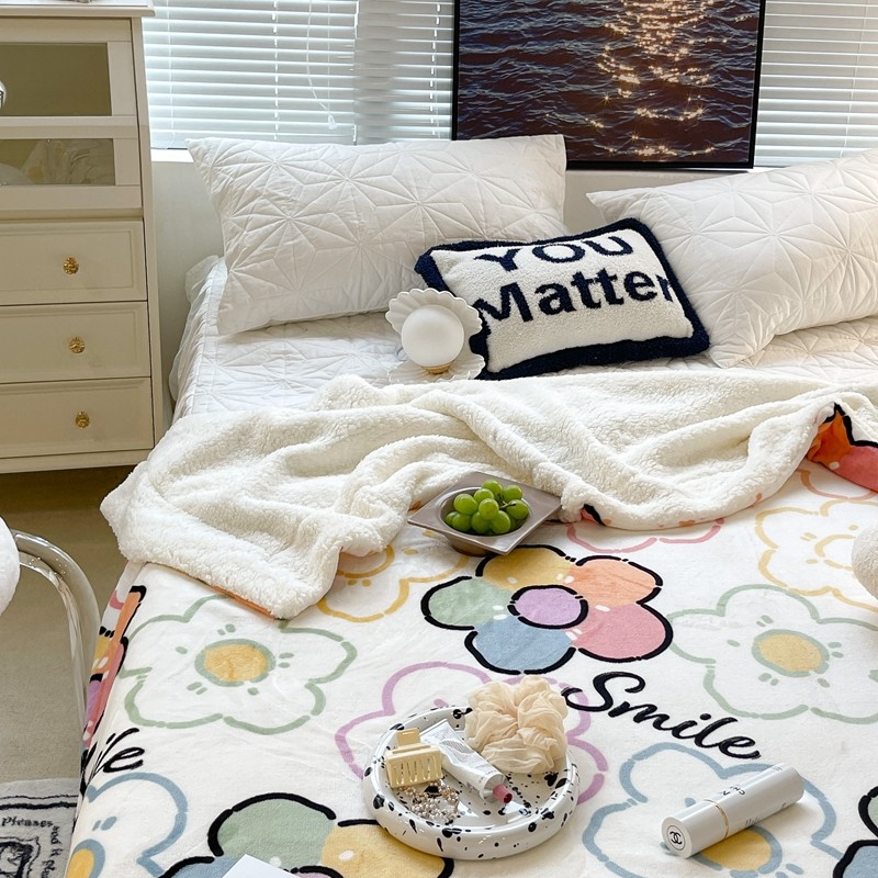 昔可家纺 2021新款牛奶羊羔绒印花毯 彩色微笑花
