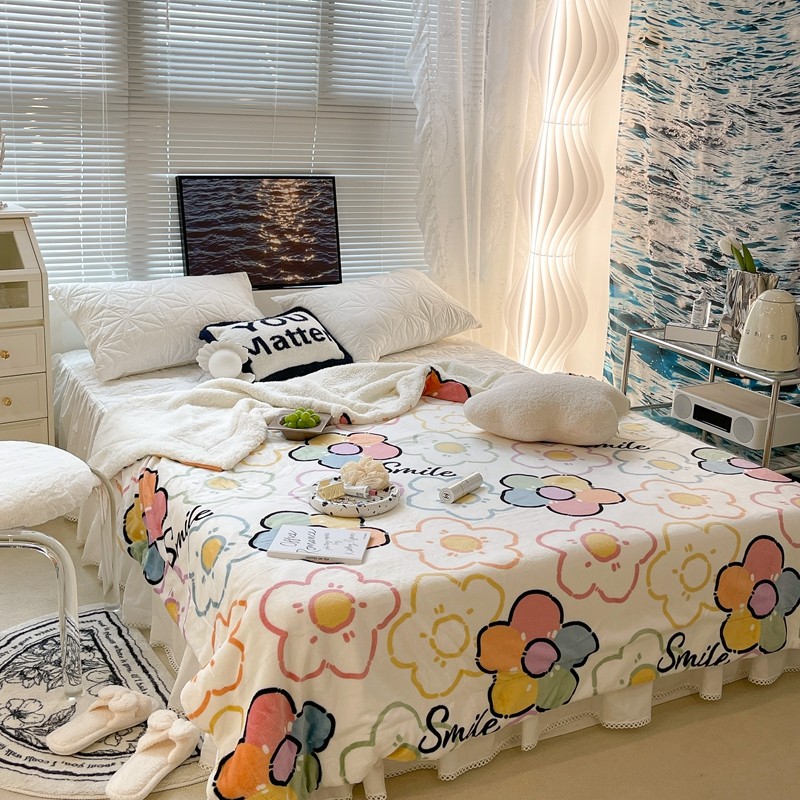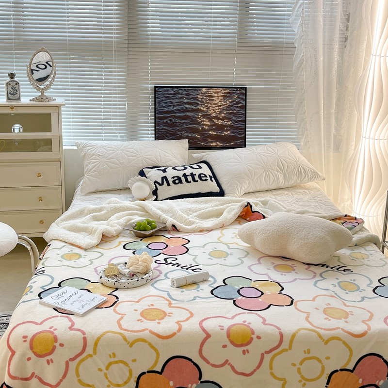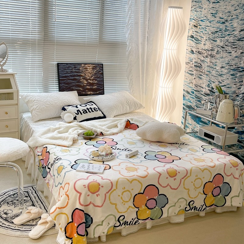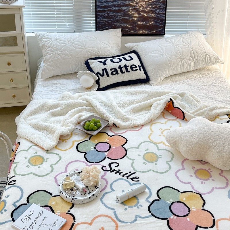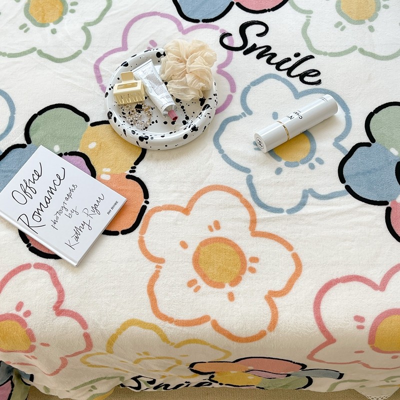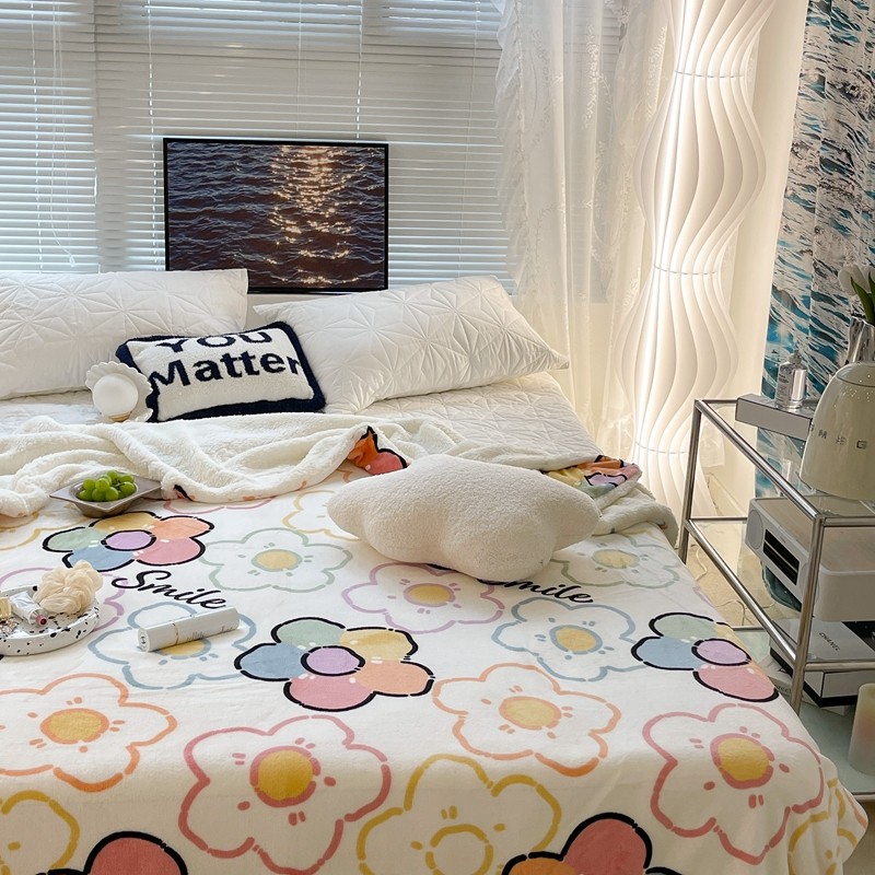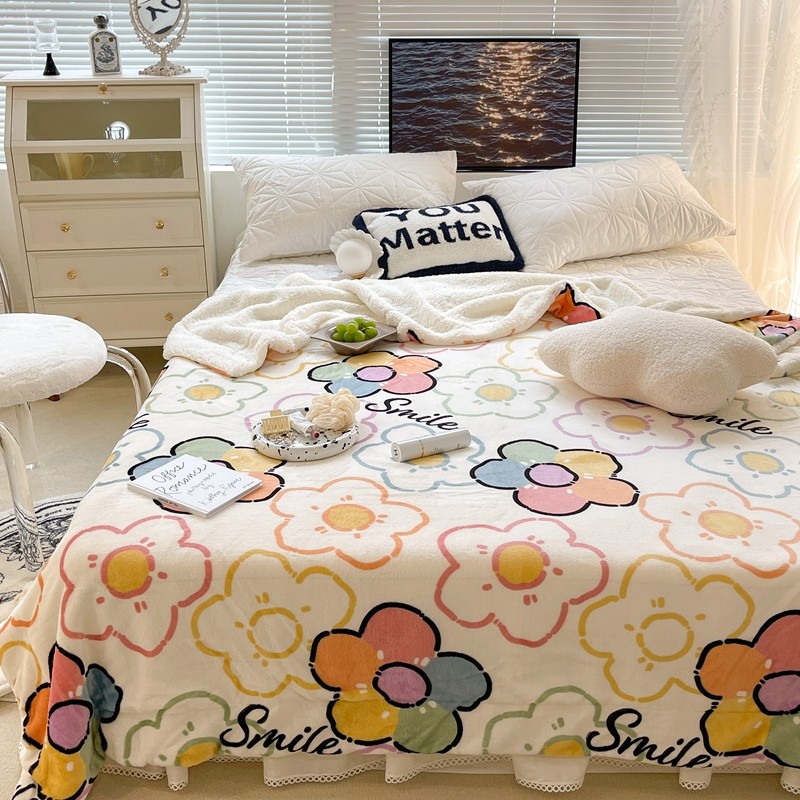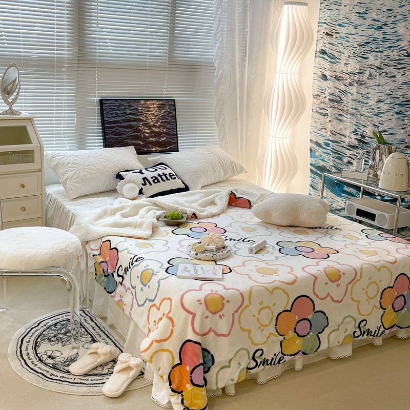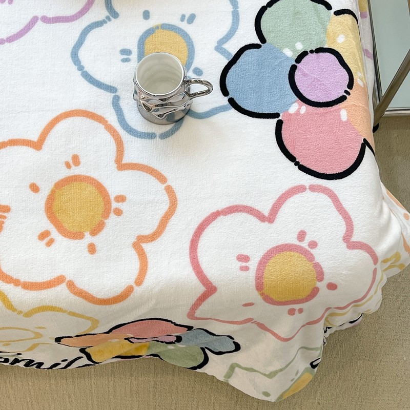 昔可家纺 2021新款牛奶羊羔绒印花毯 彩色微笑花