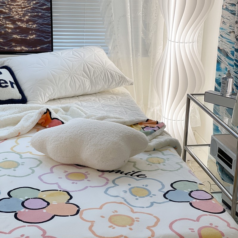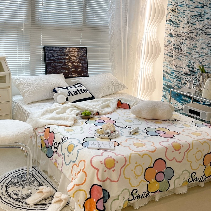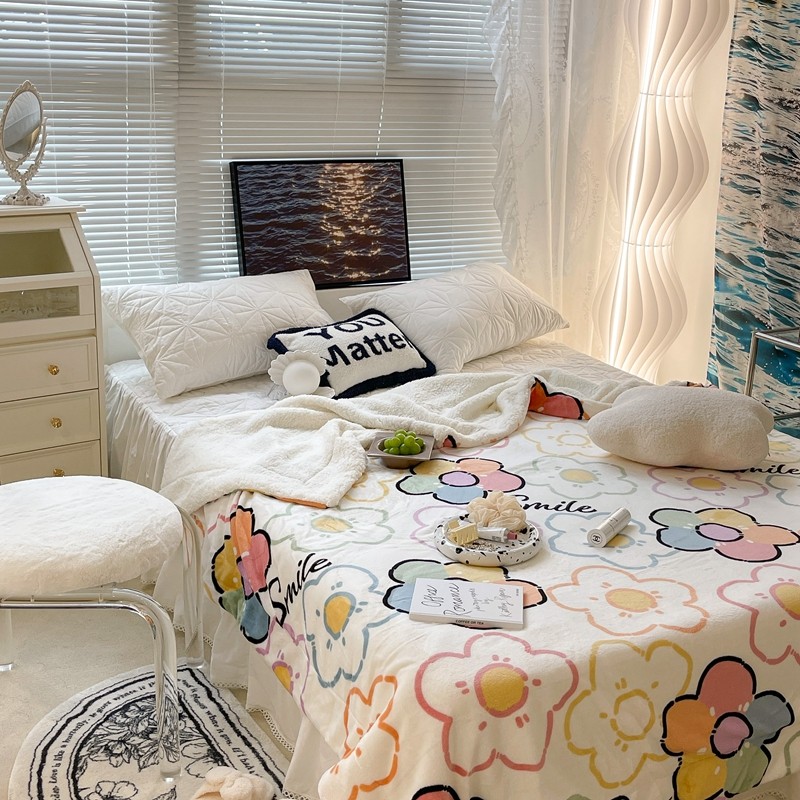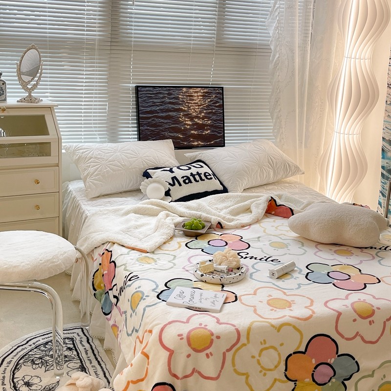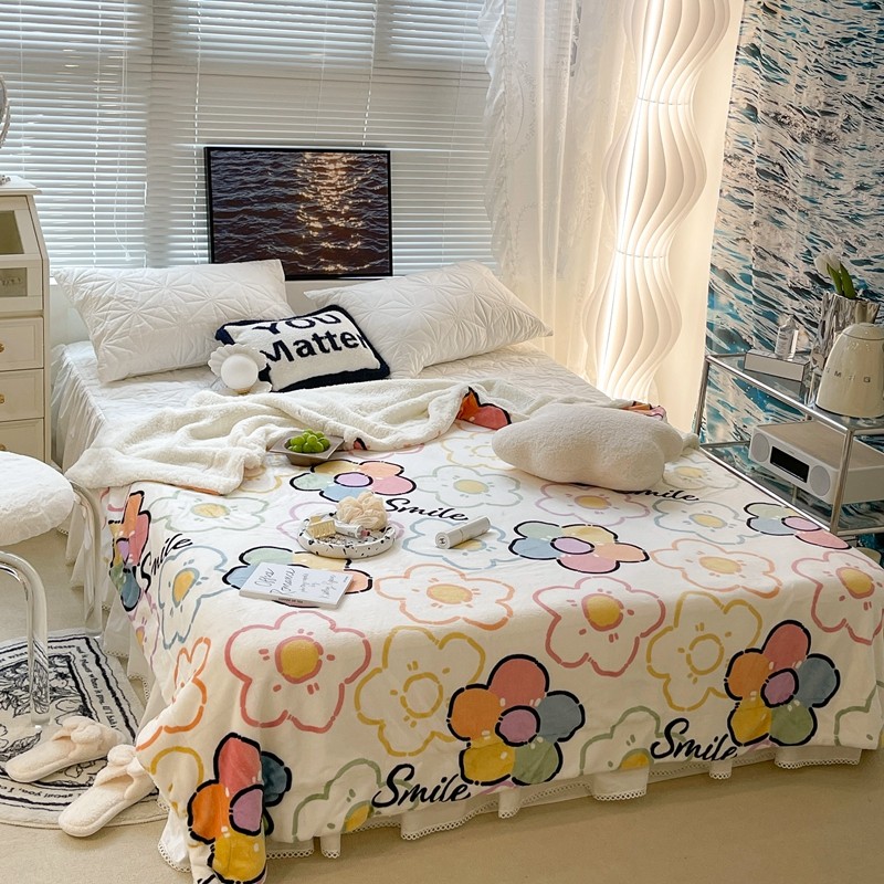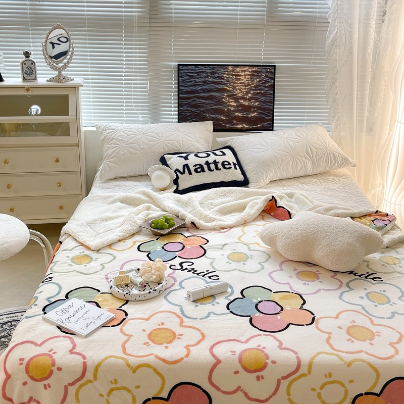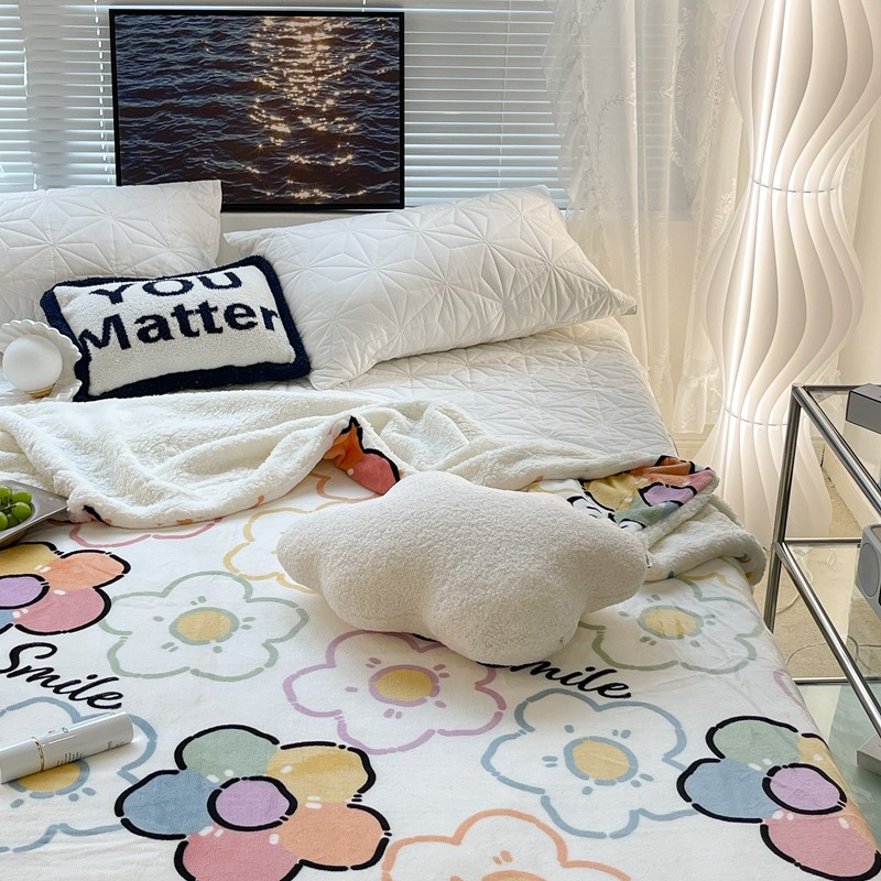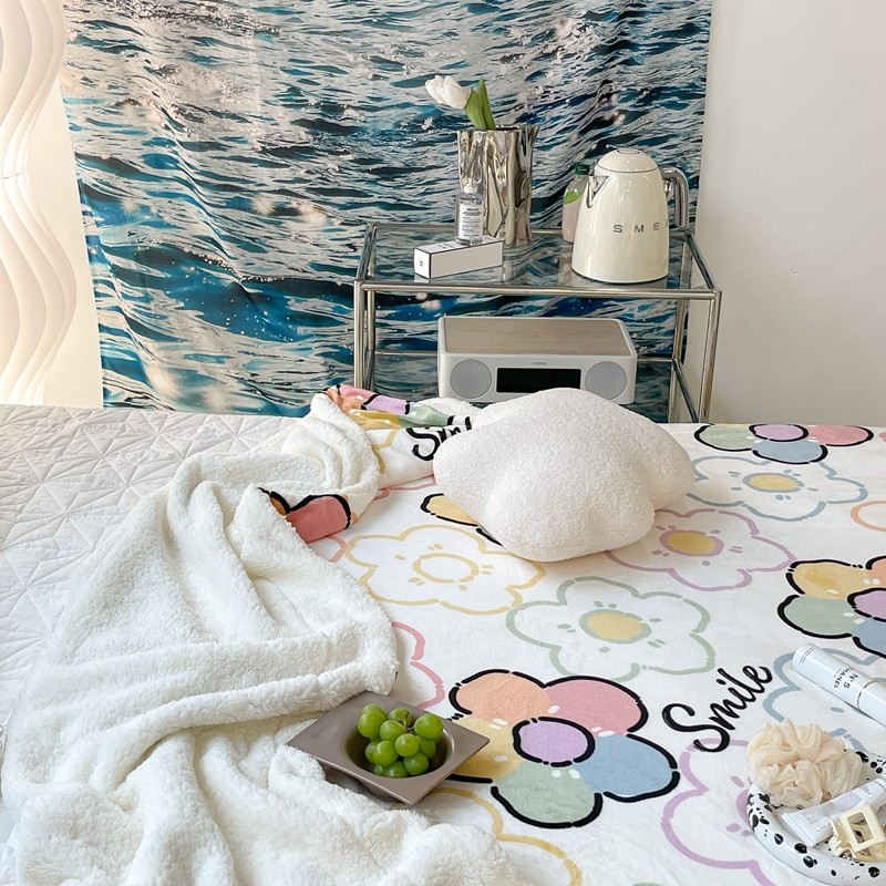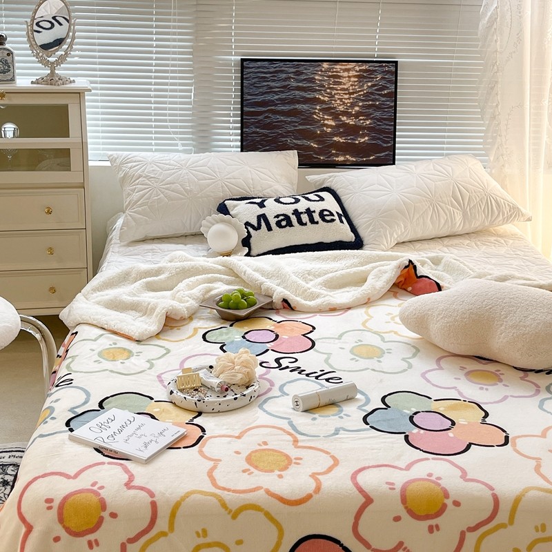 昔可家纺 2021新款牛奶羊羔绒印花毯 彩色微笑花