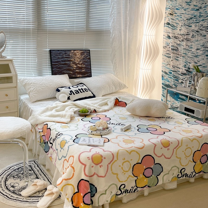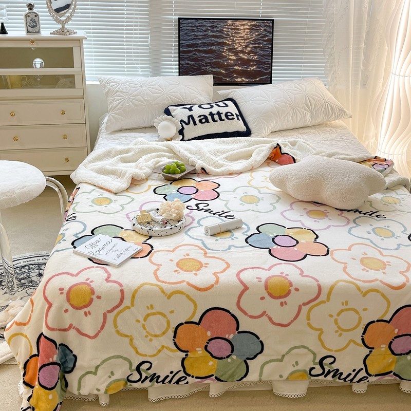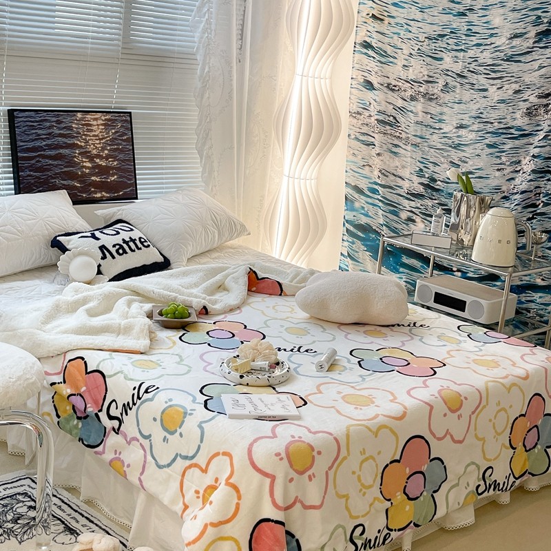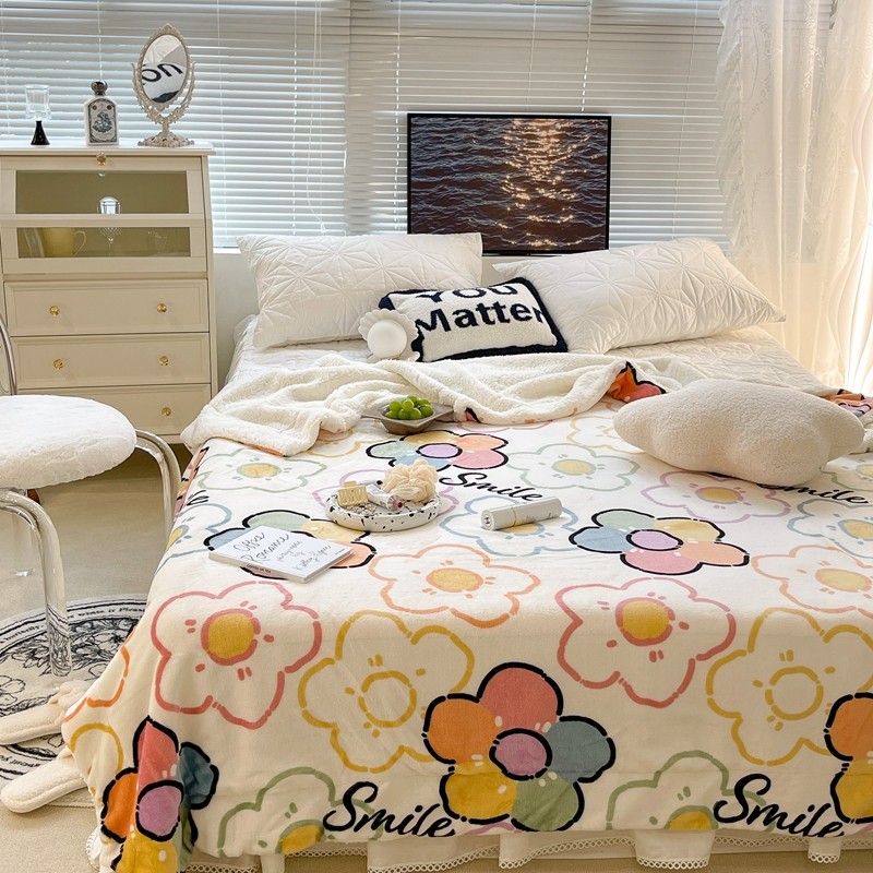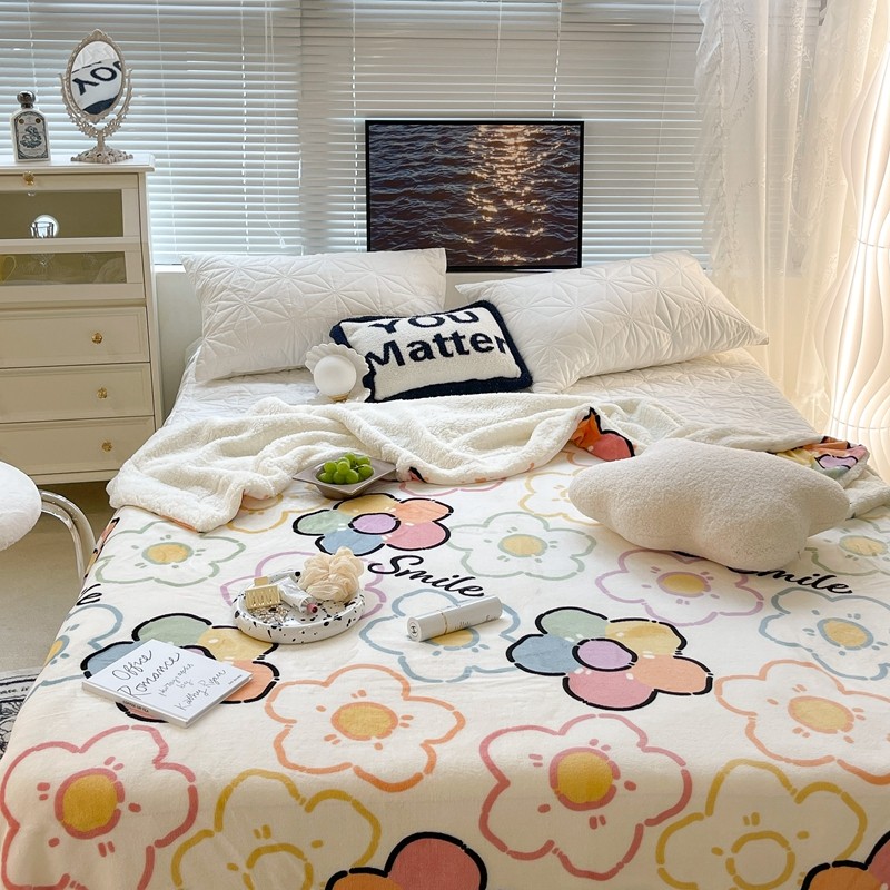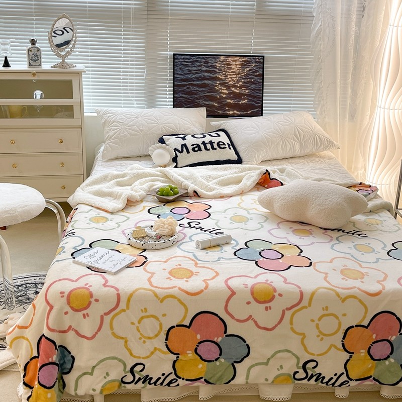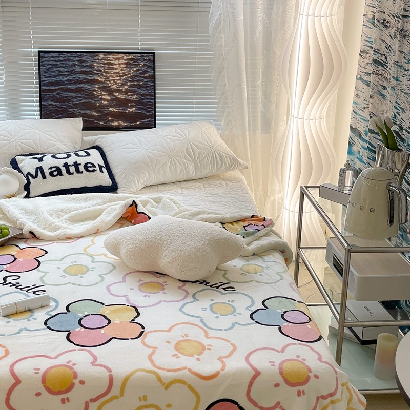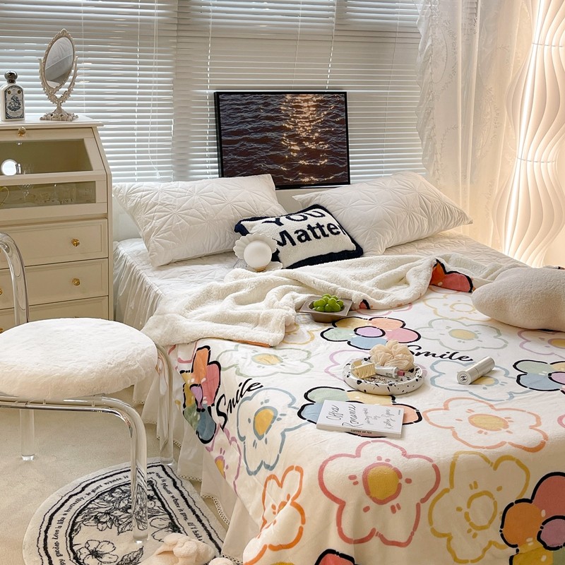 昔可家纺 2021新款牛奶羊羔绒印花毯 彩色微笑花