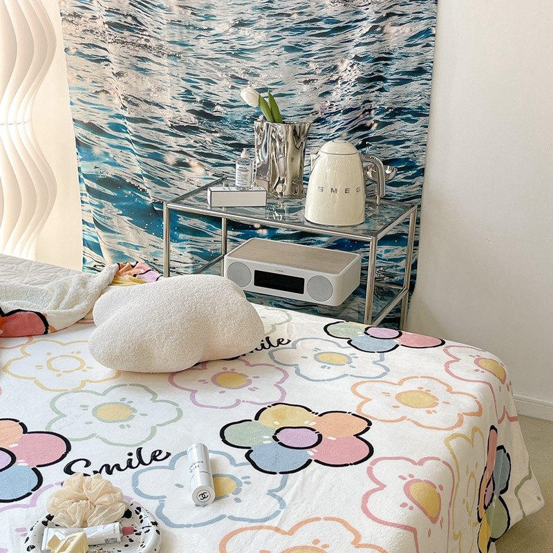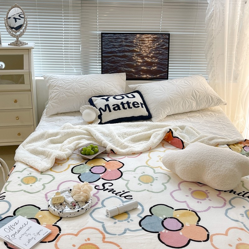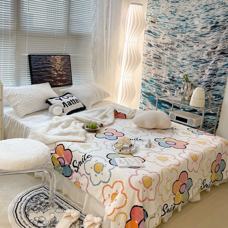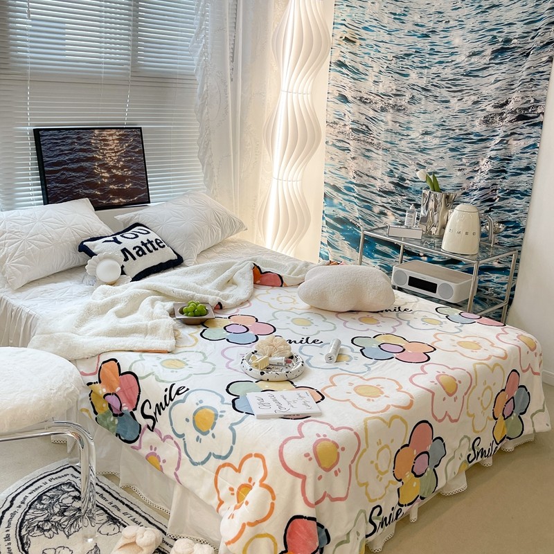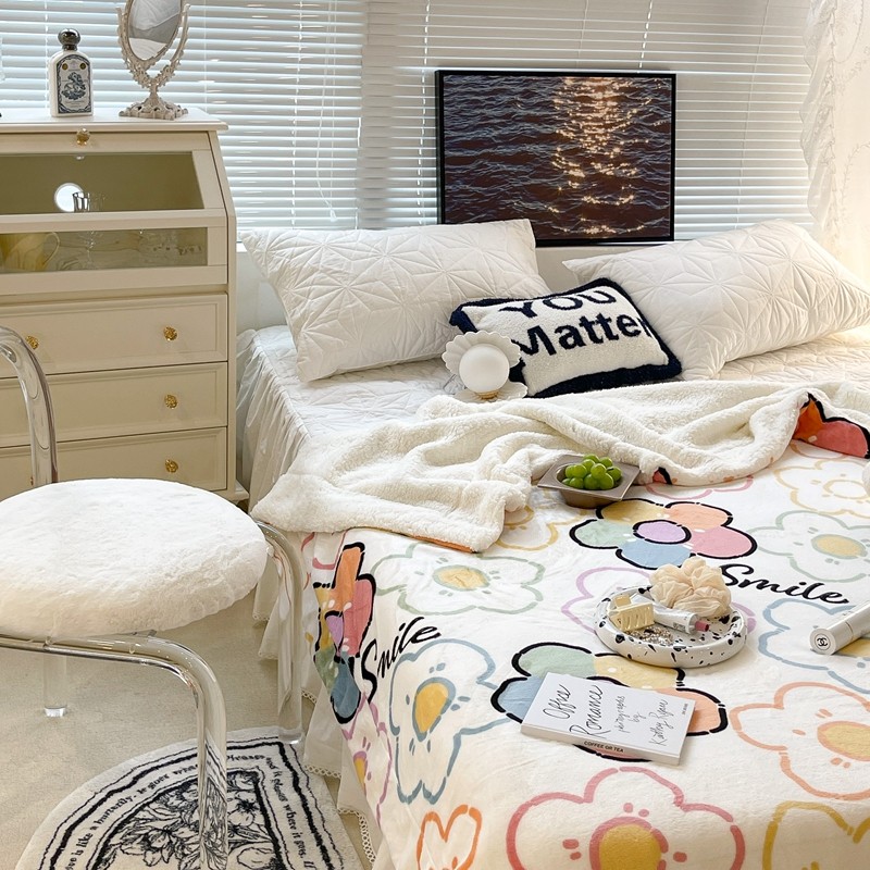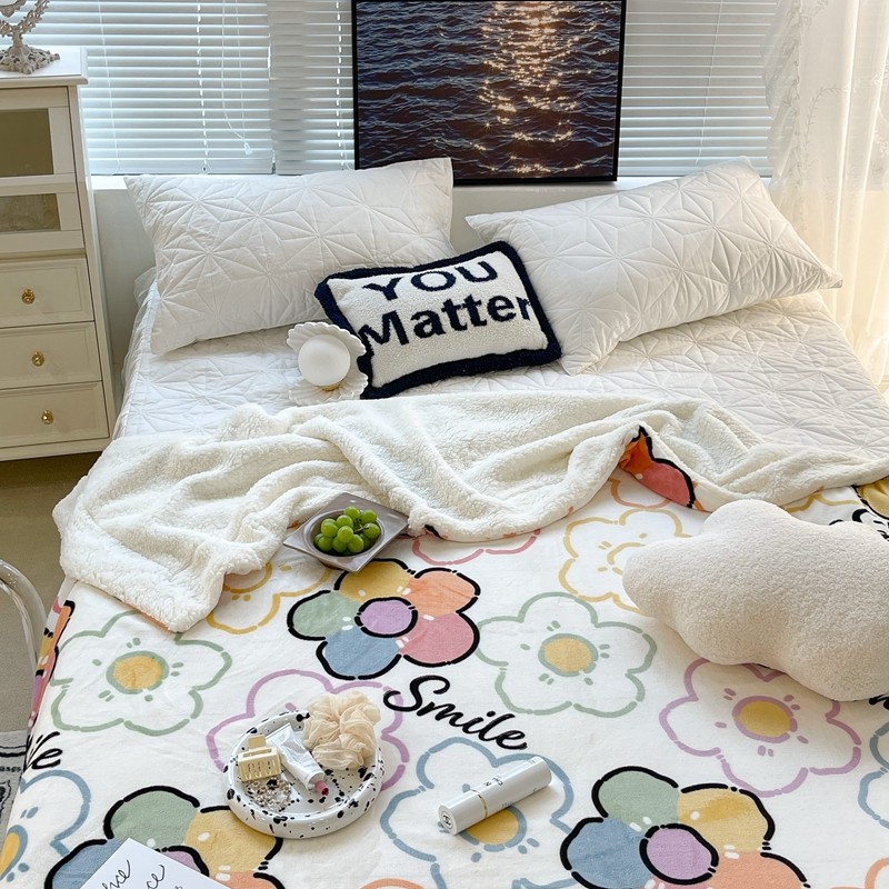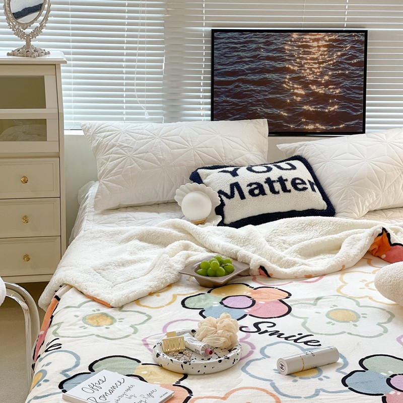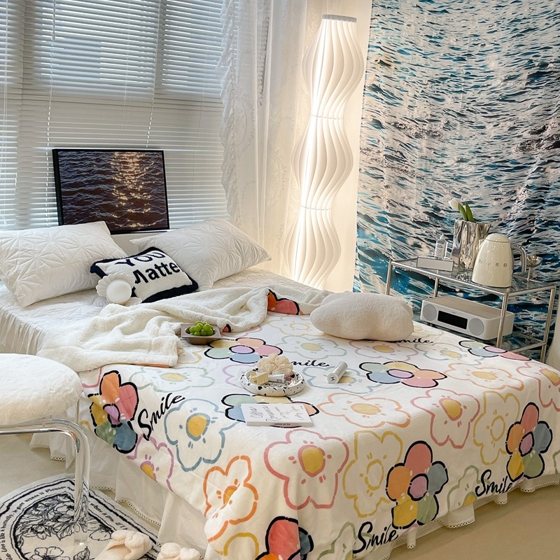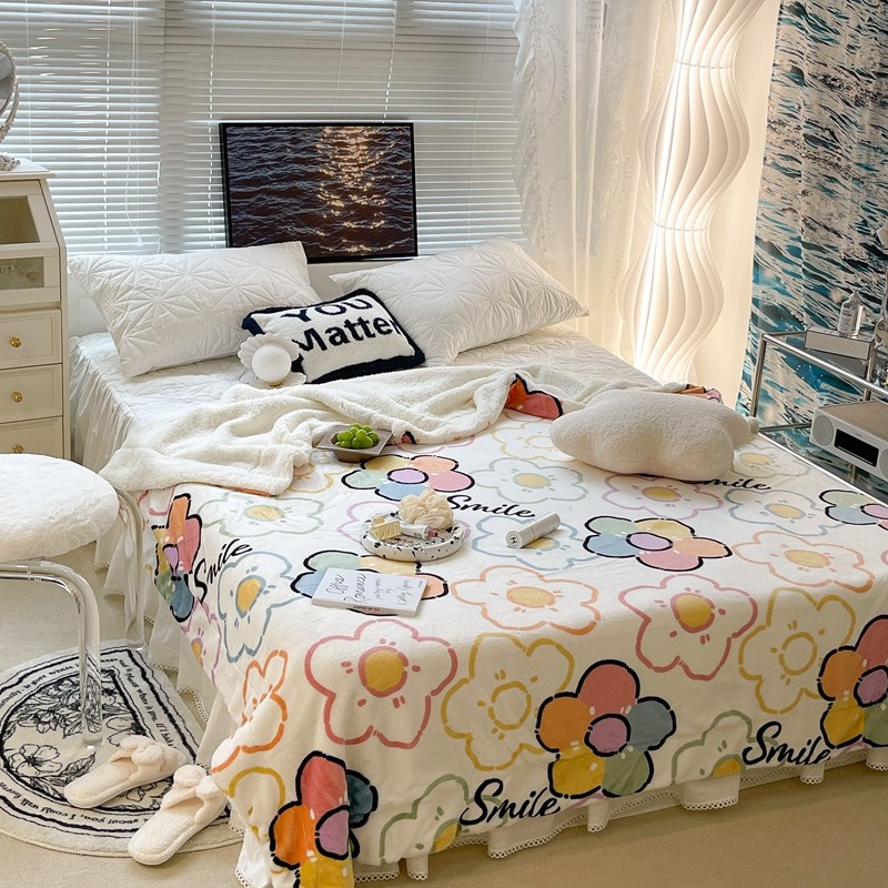 昔可家纺 2021新款牛奶羊羔绒印花毯 彩色微笑花