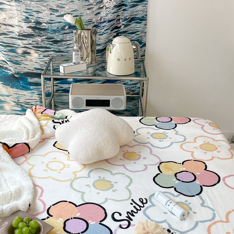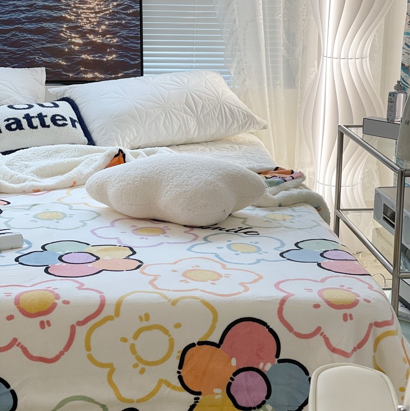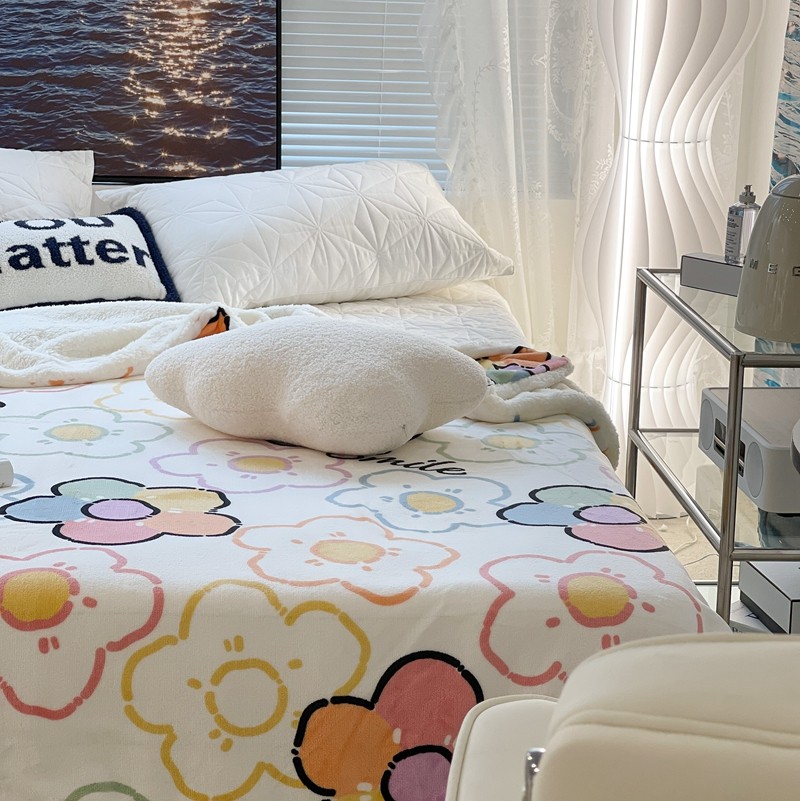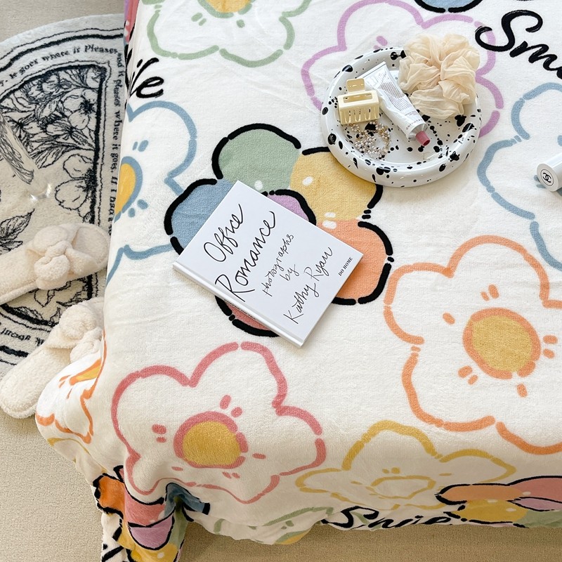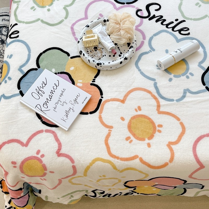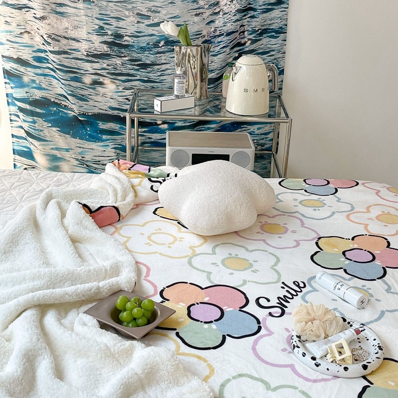 商品名称:昔可家纺 2021新款牛奶羊羔绒印花毯 彩色微笑花