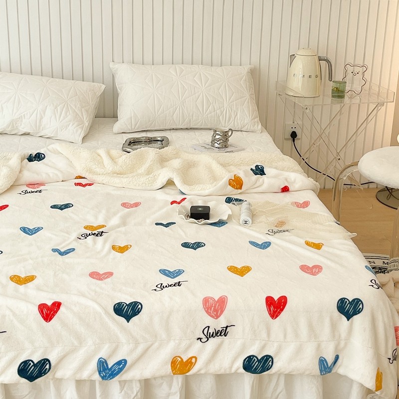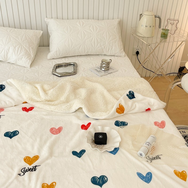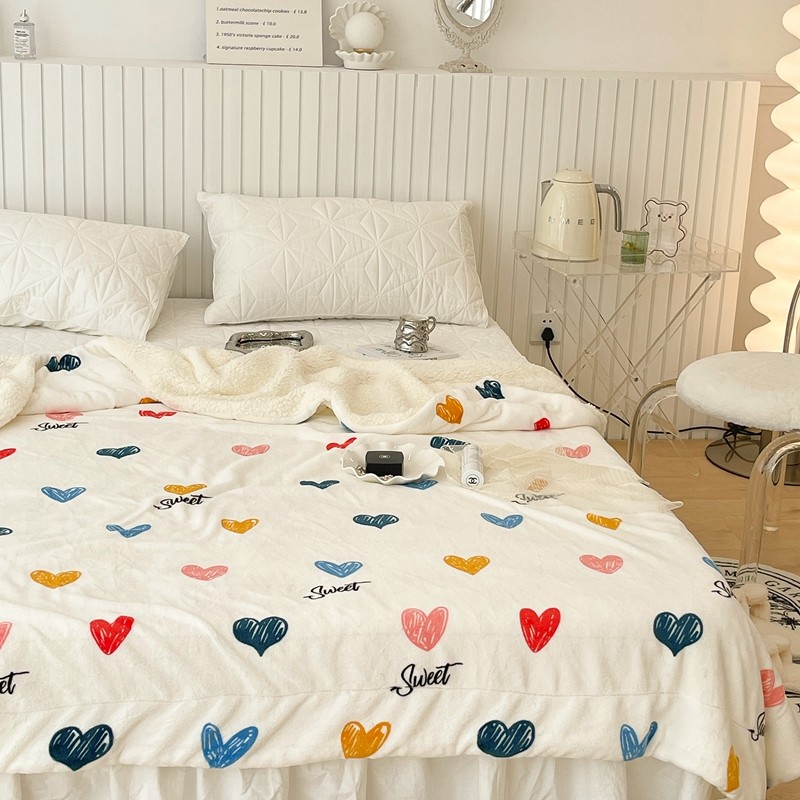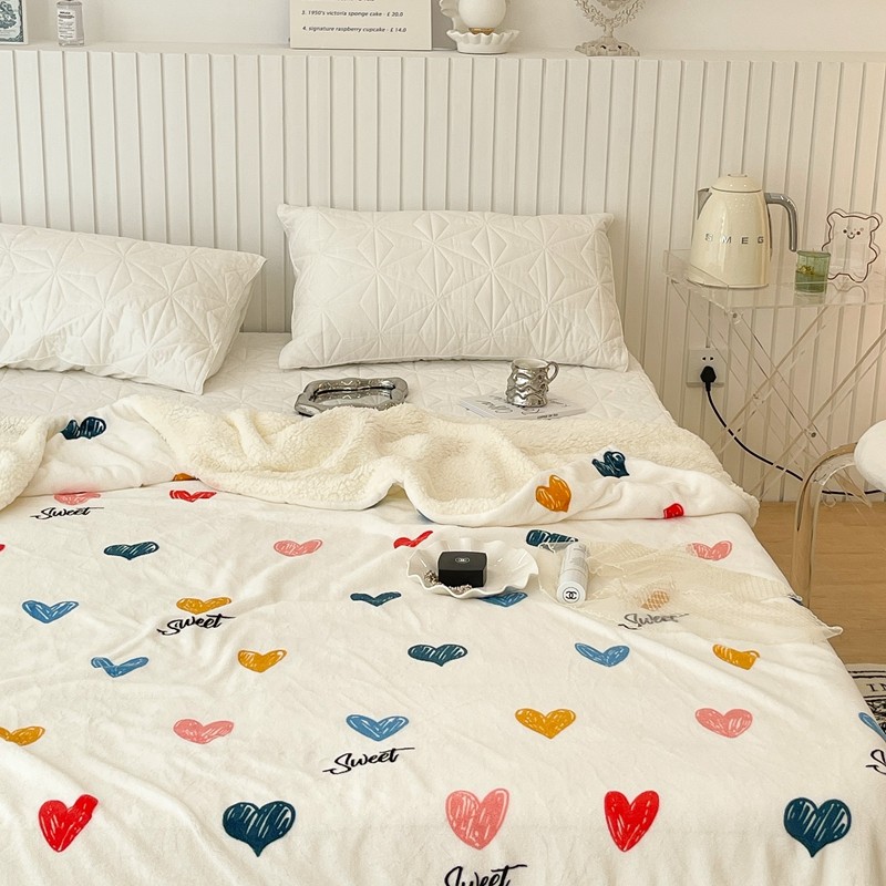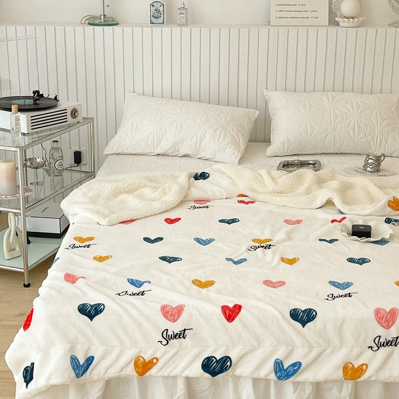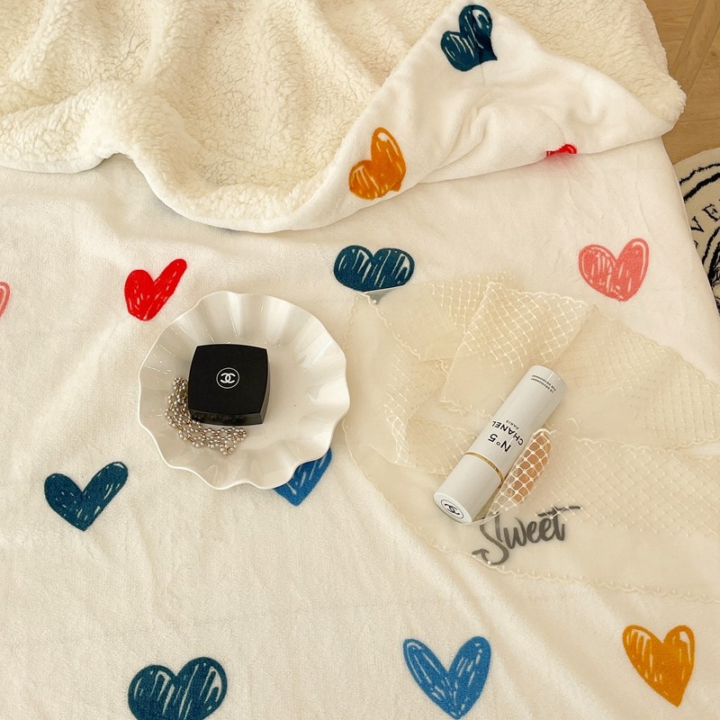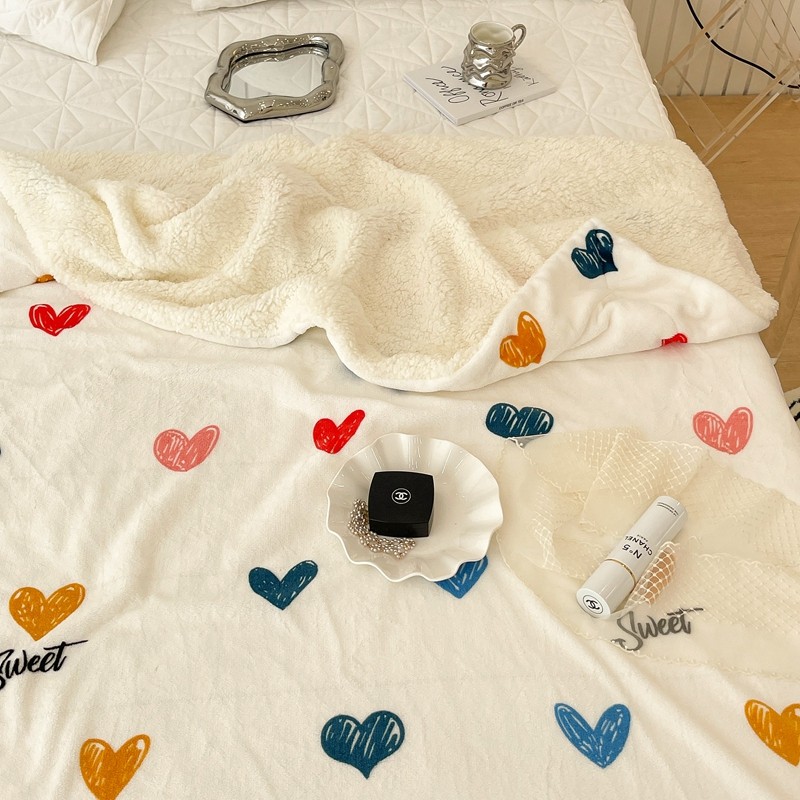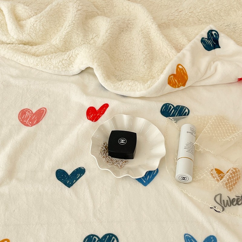 昔可家纺 2021新款牛奶羊羔绒印花毯 涂鸦比心