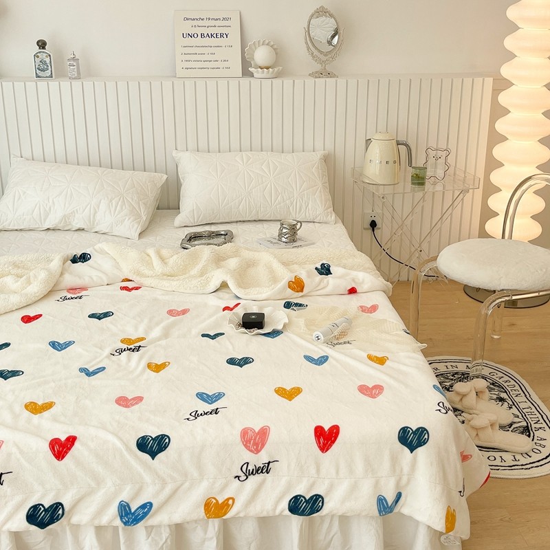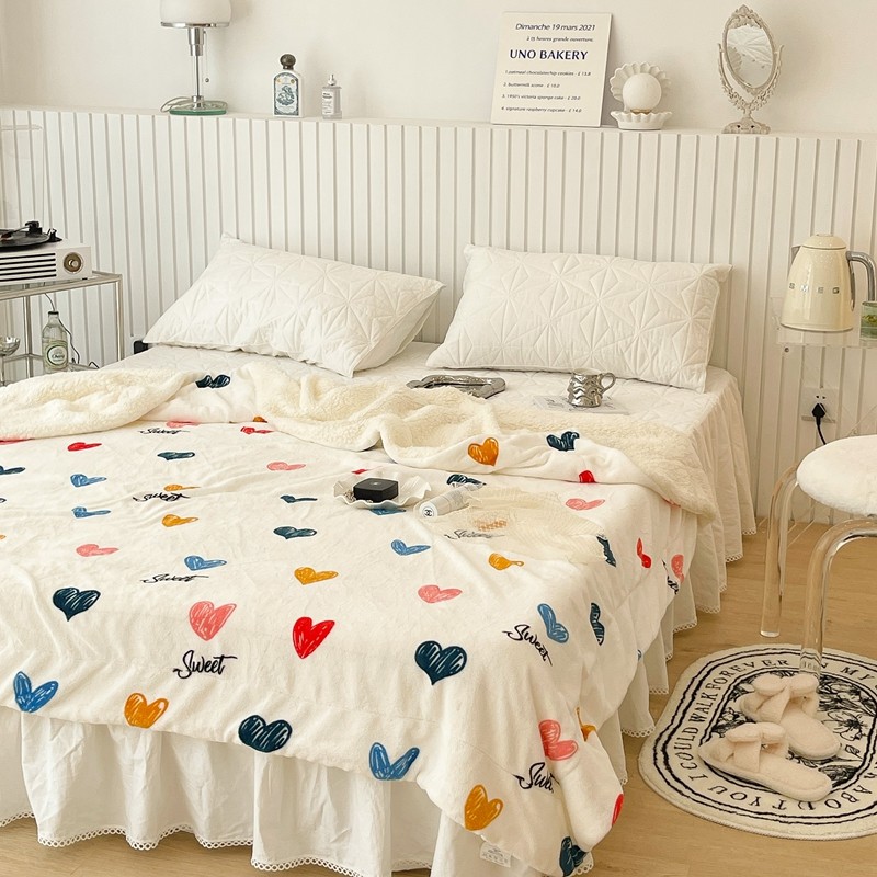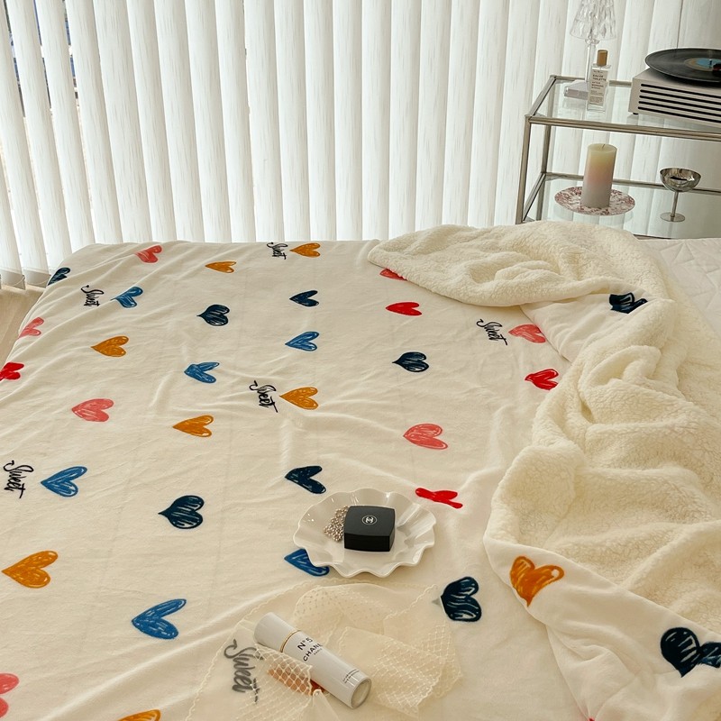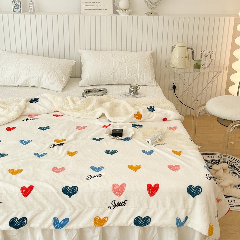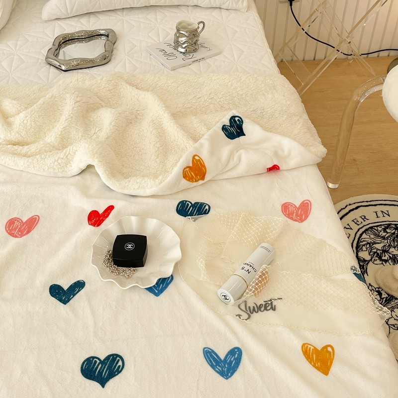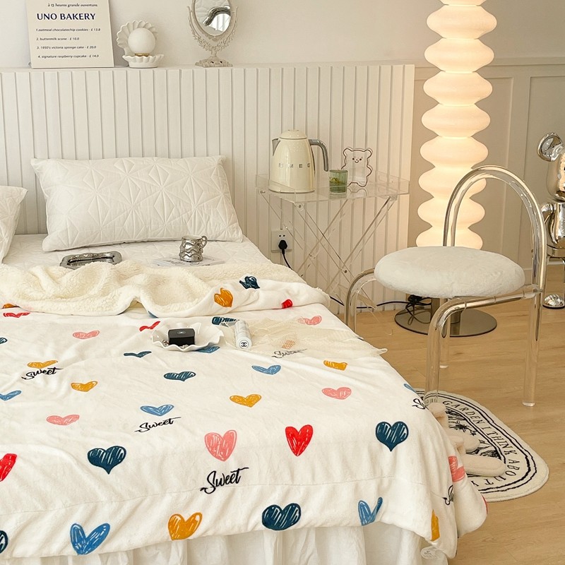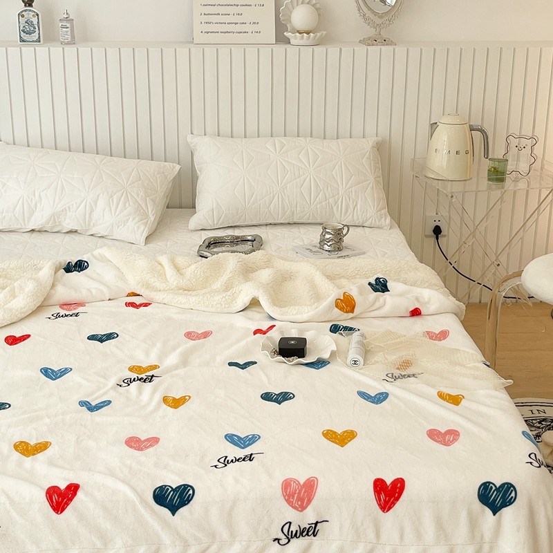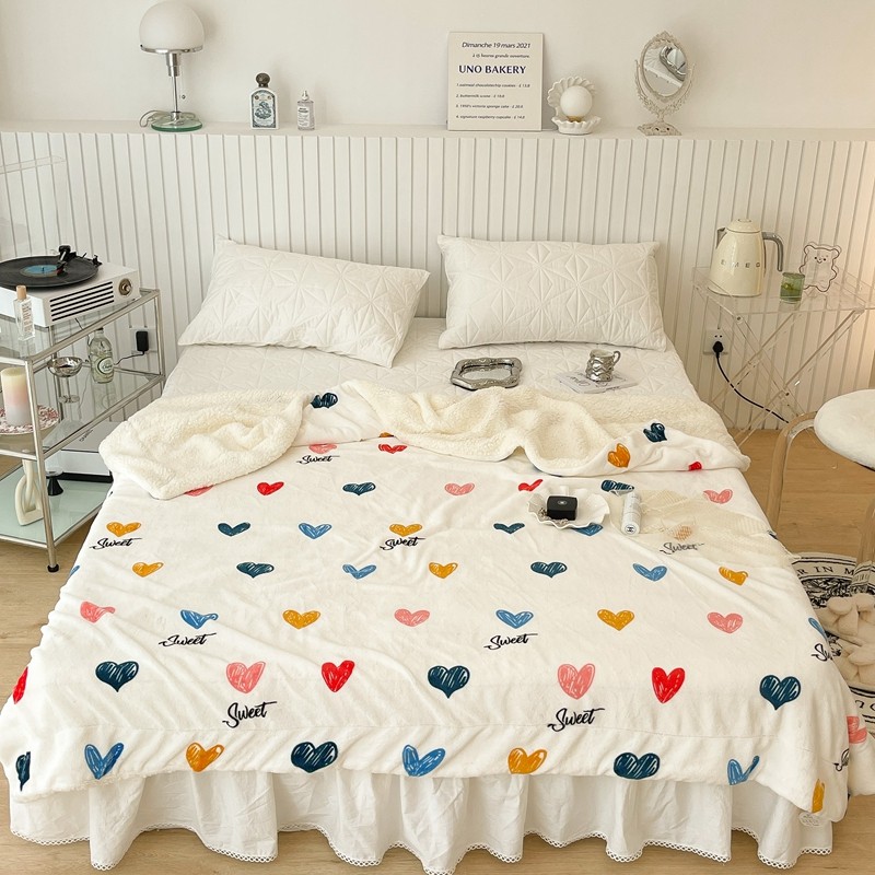 昔可家纺 2021新款牛奶羊羔绒印花毯 涂鸦比心
