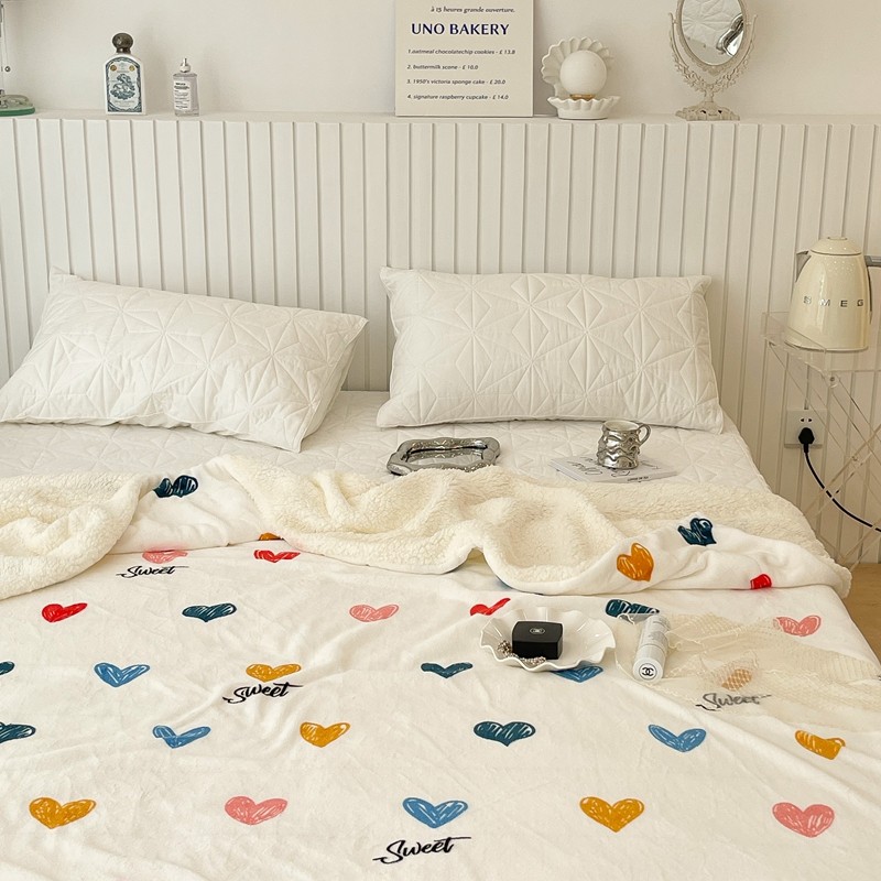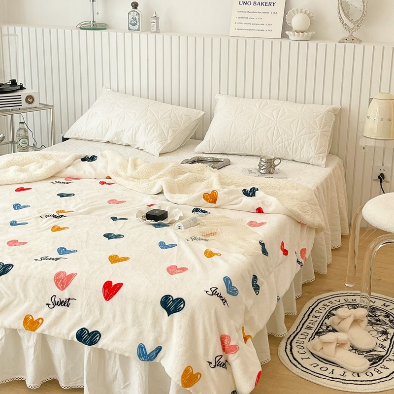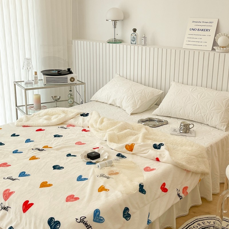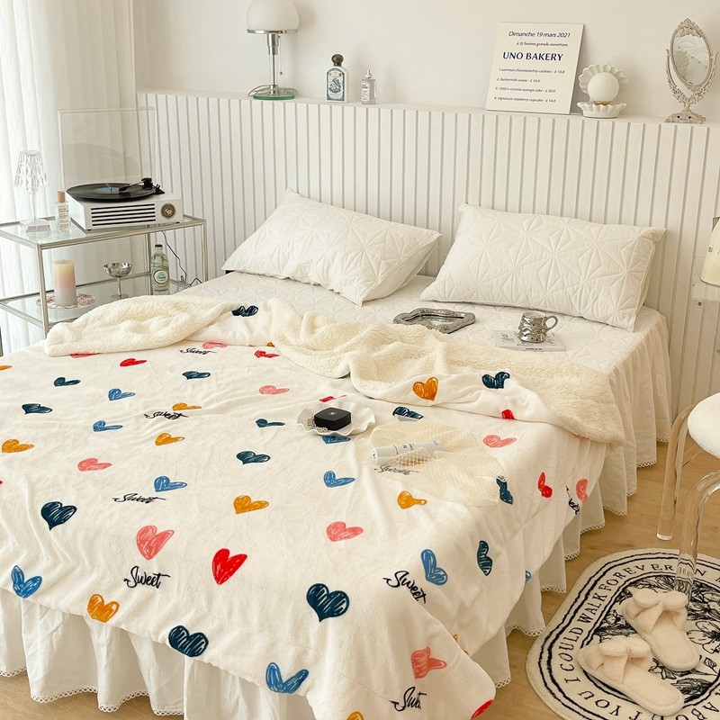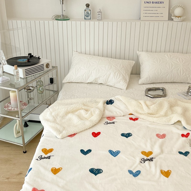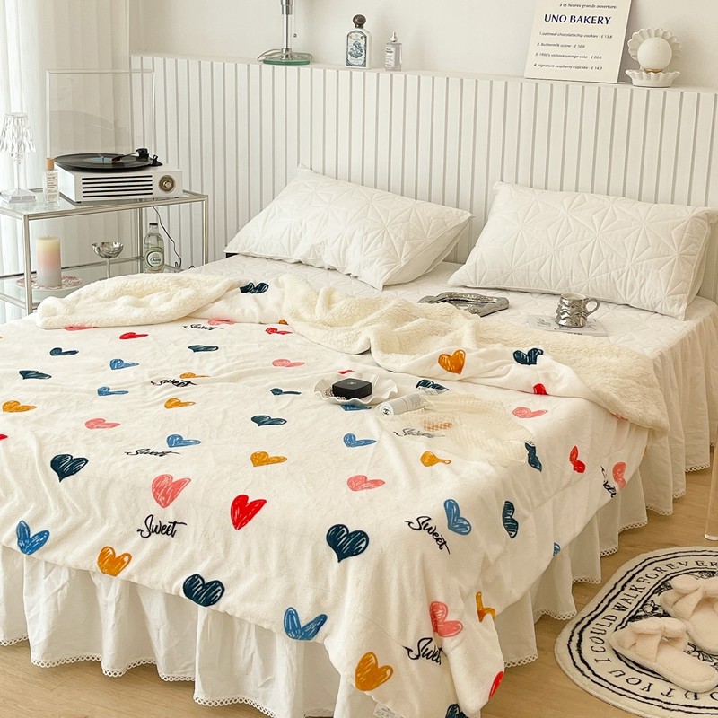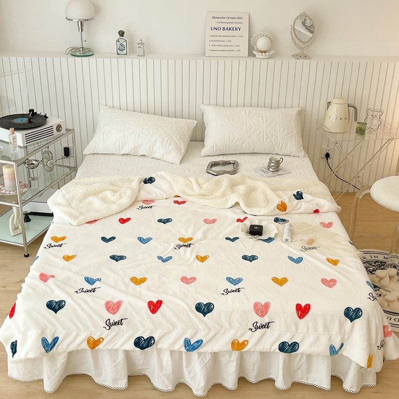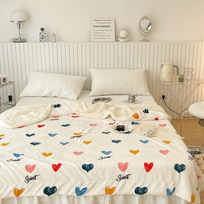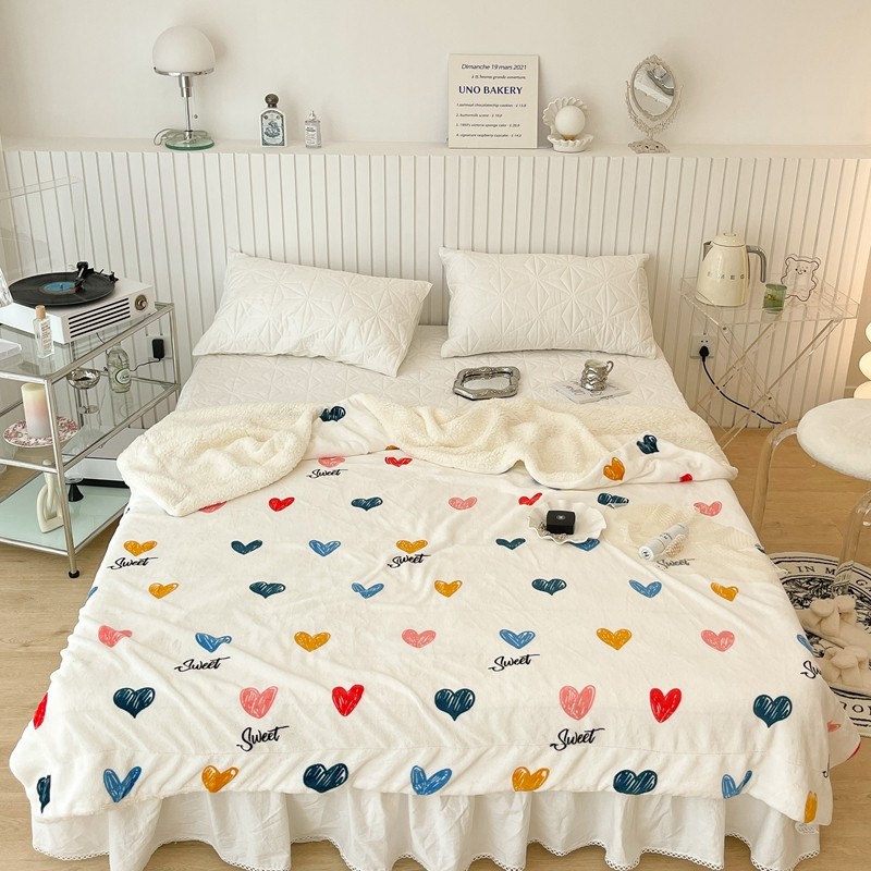 昔可家纺 2021新款牛奶羊羔绒印花毯 涂鸦比心