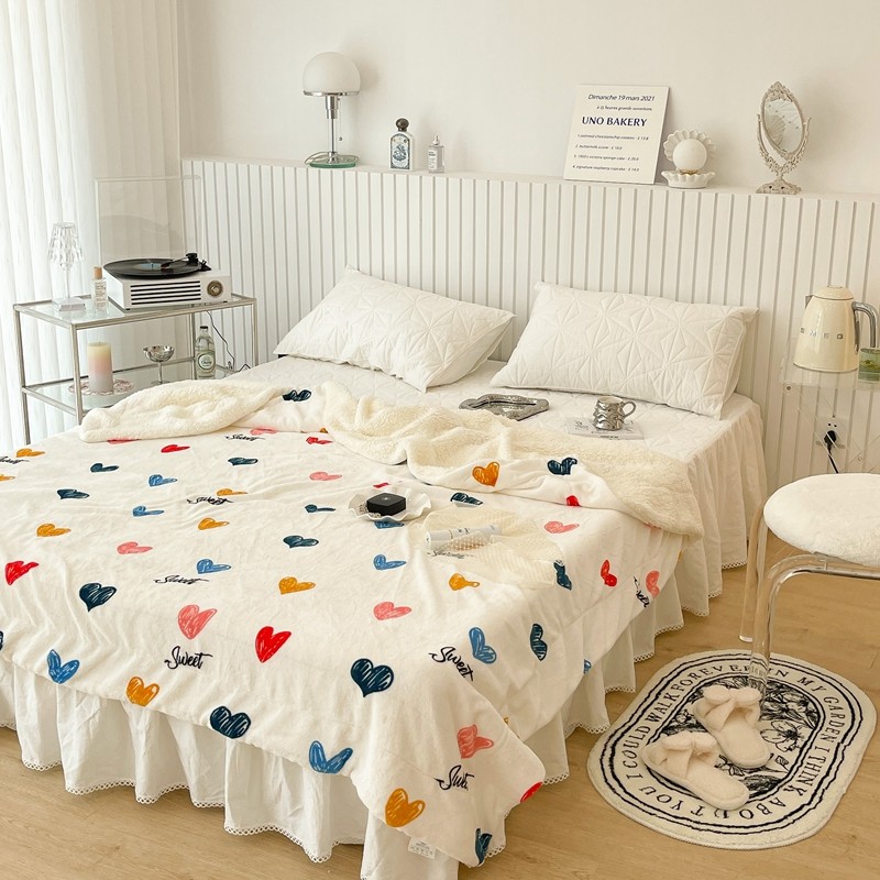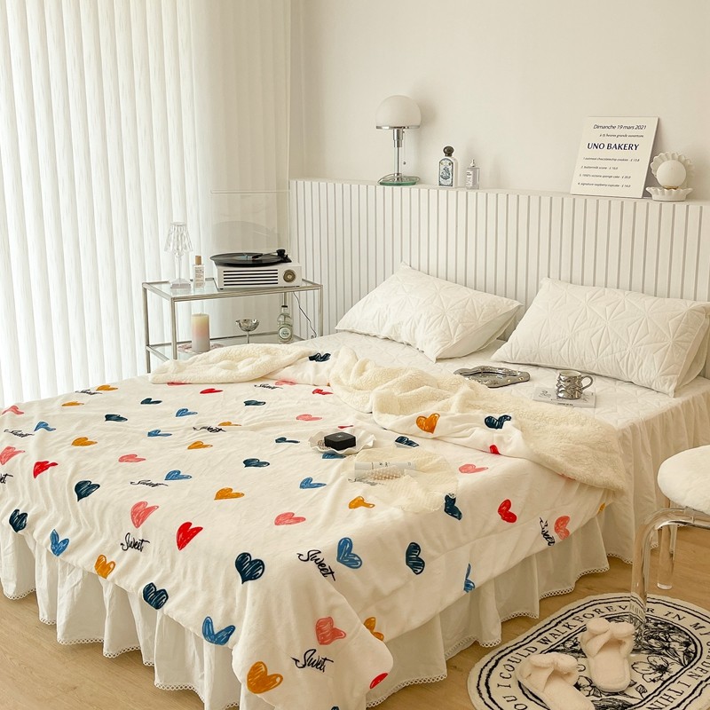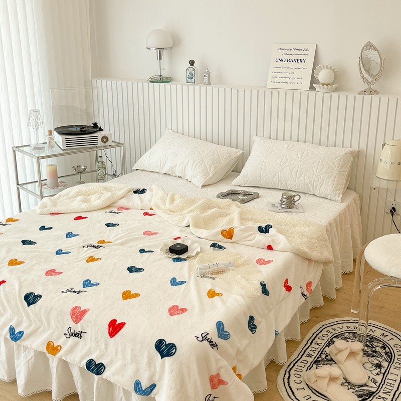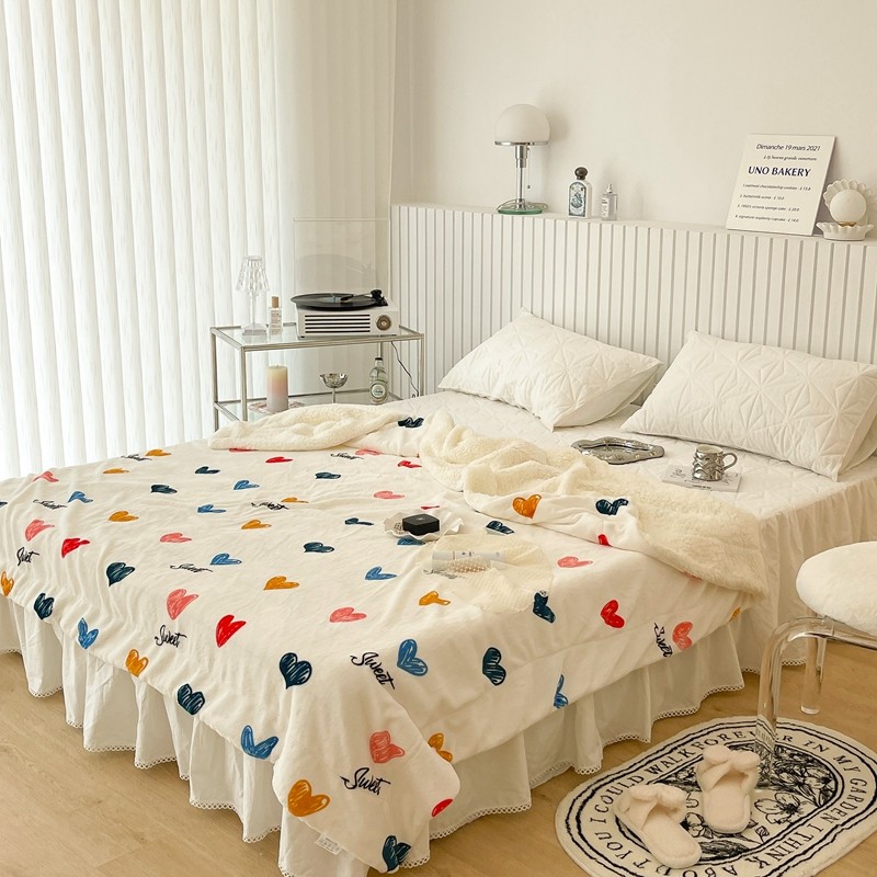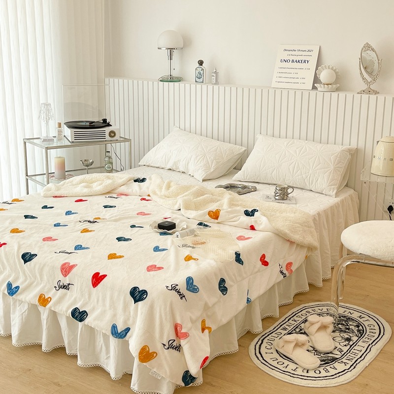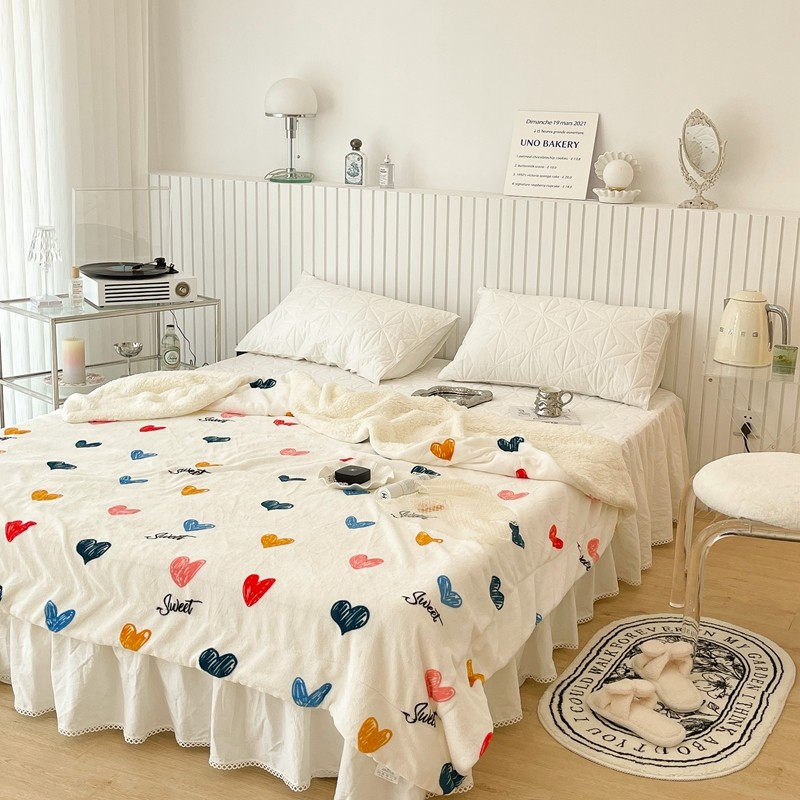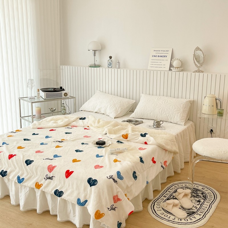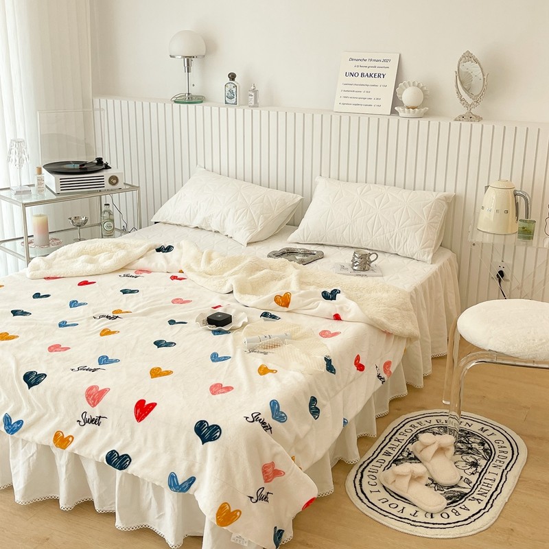 昔可家纺 2021新款牛奶羊羔绒印花毯 涂鸦比心
