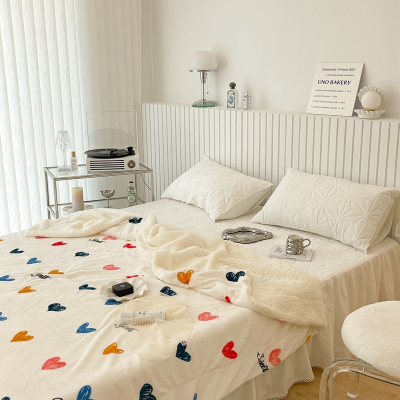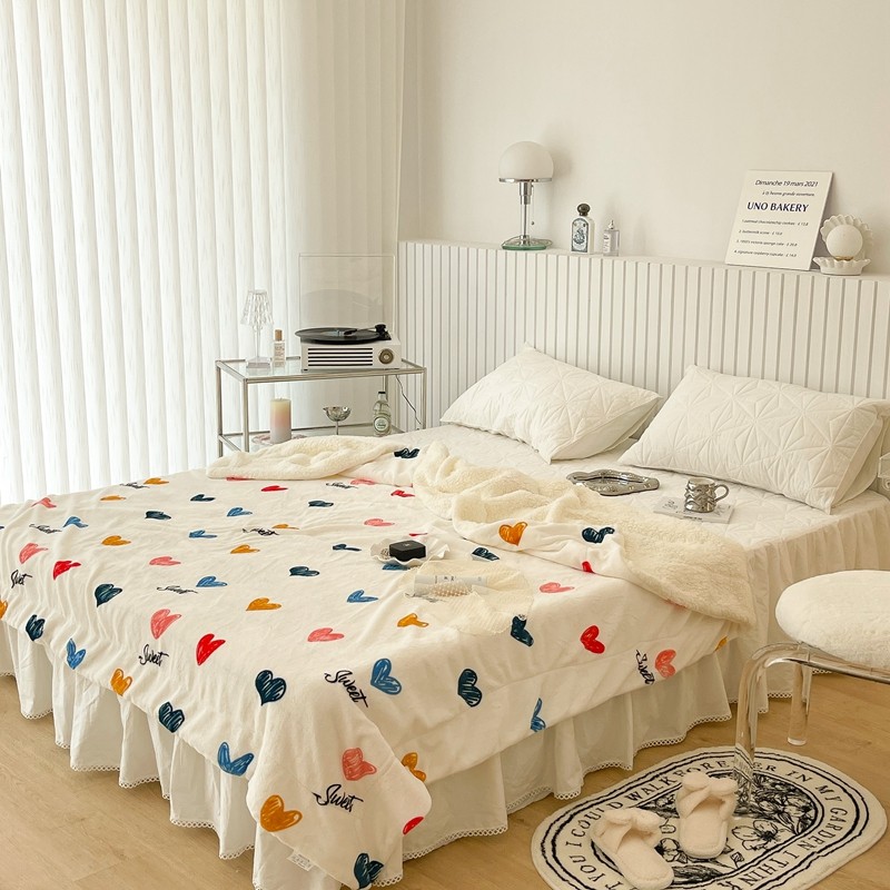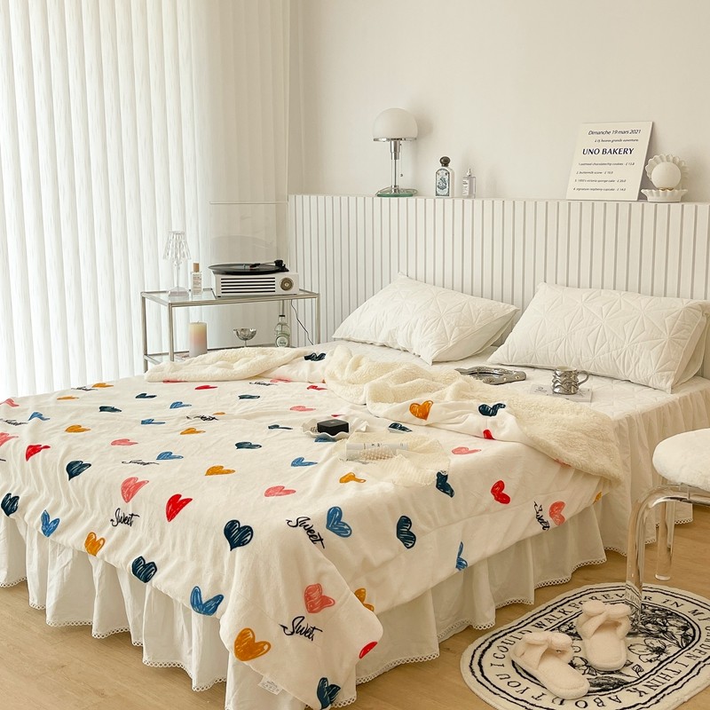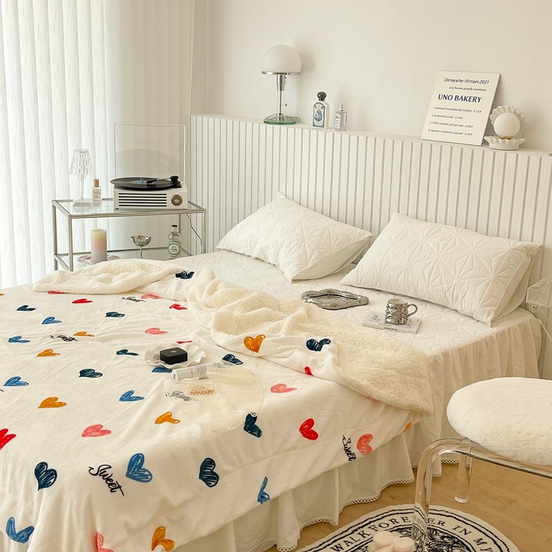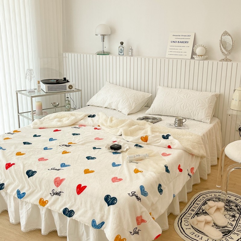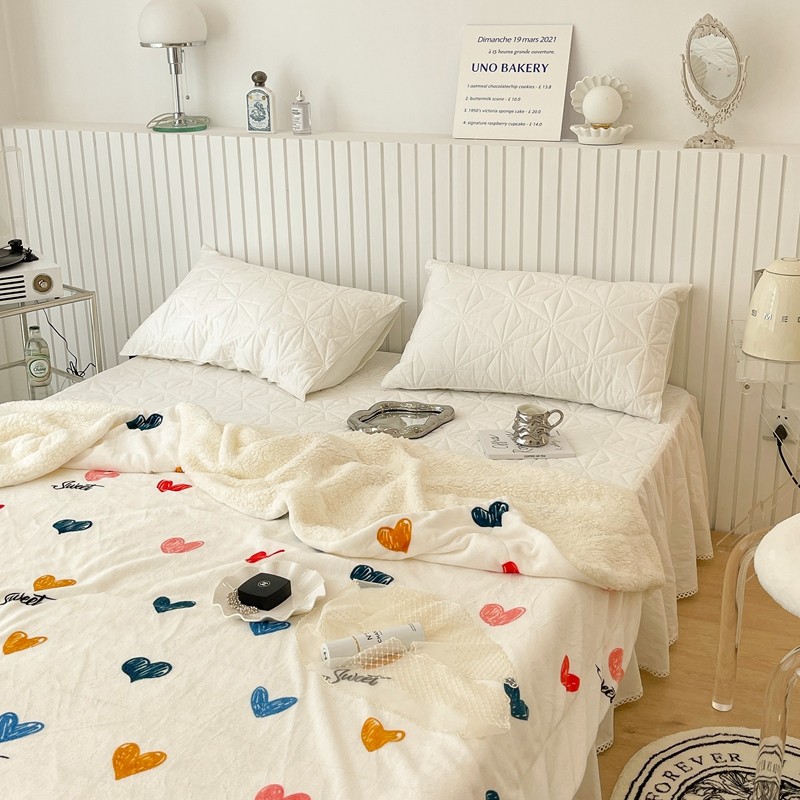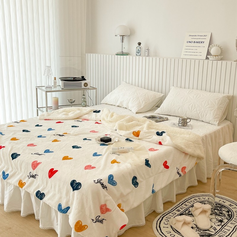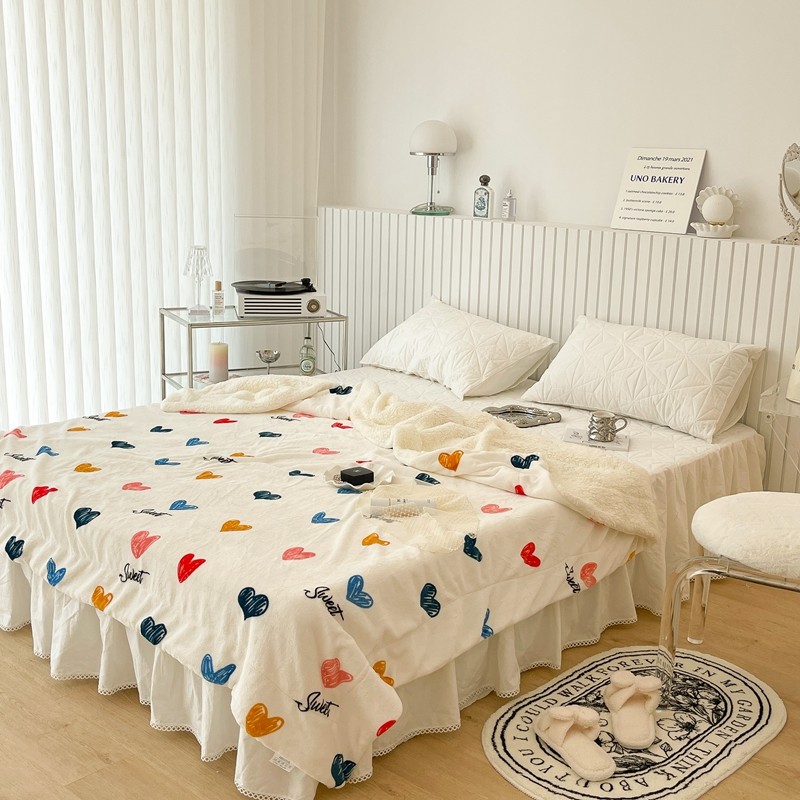 昔可家纺 2021新款牛奶羊羔绒印花毯 涂鸦比心