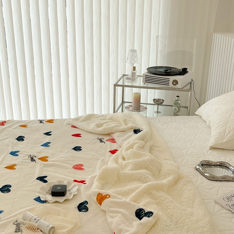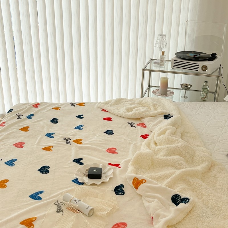 商品名称:昔可家纺 2021新款牛奶羊羔绒印花毯 涂鸦比心