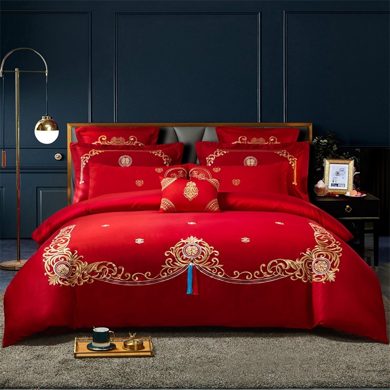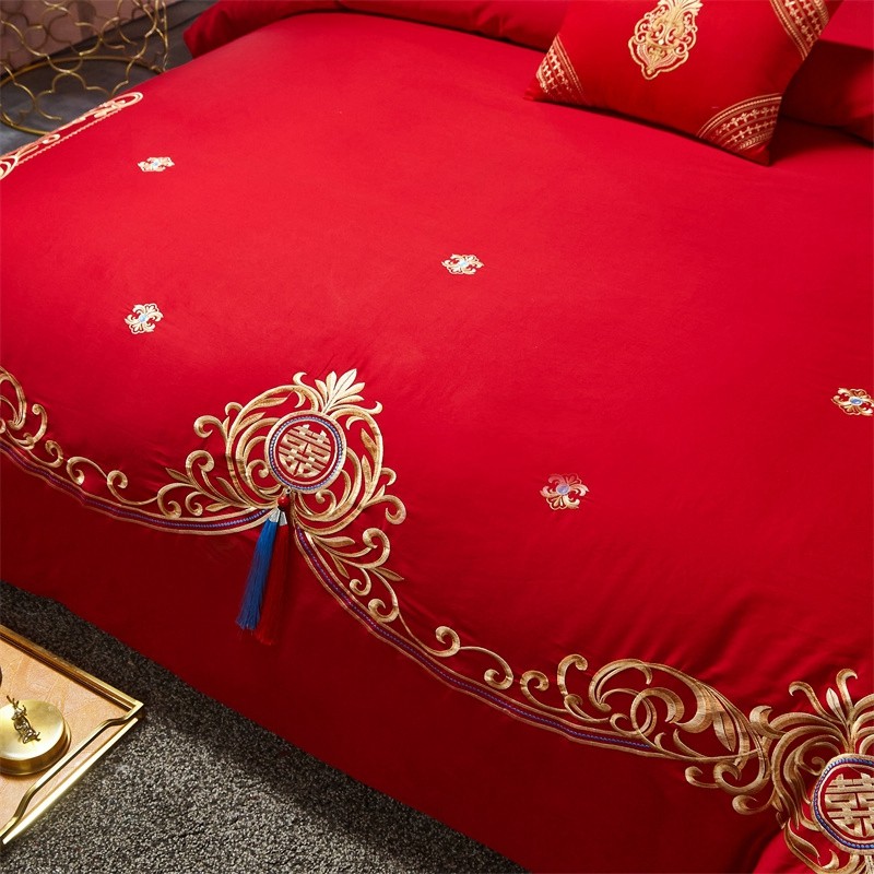 当前位置: 91家纺网 > 商品网购 > 床品套件 > 四件套 > 全棉普通四件套 > 布乐意 2025新款全棉绣花大红婚庆四件套多件套直播千禧姻缘