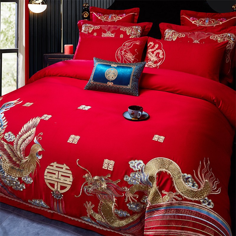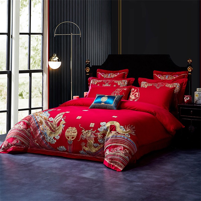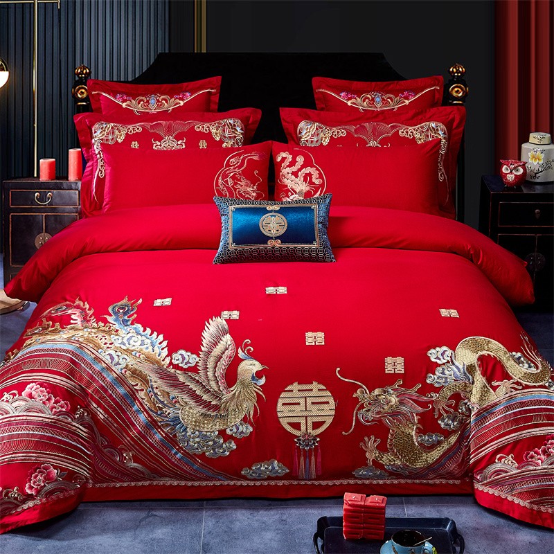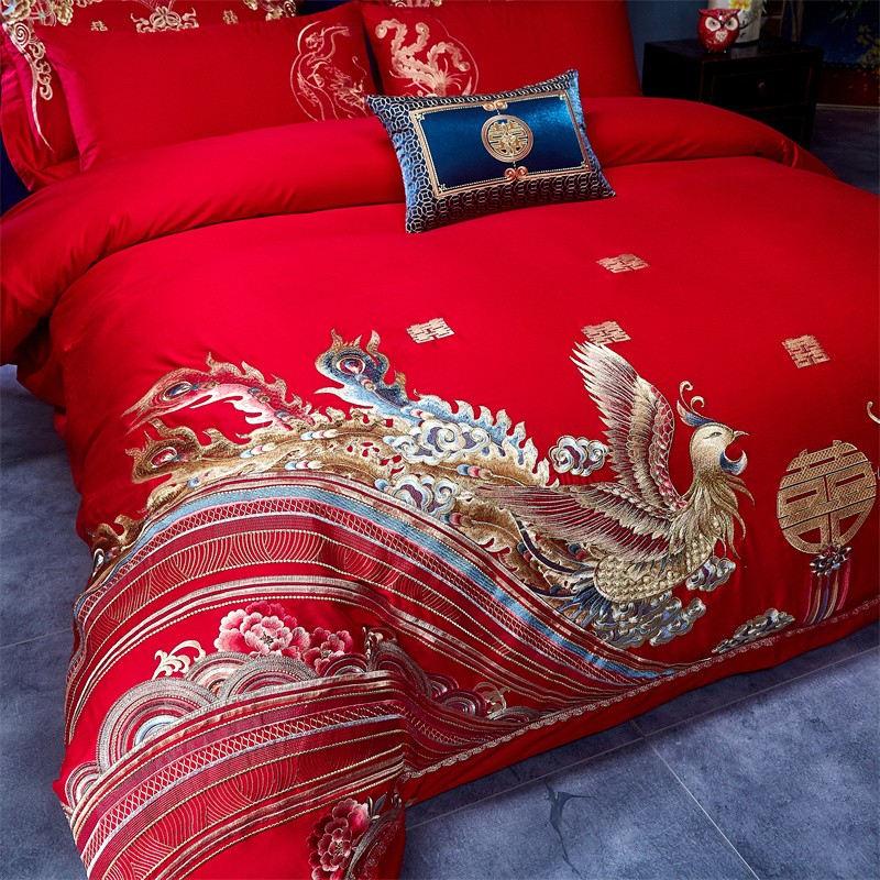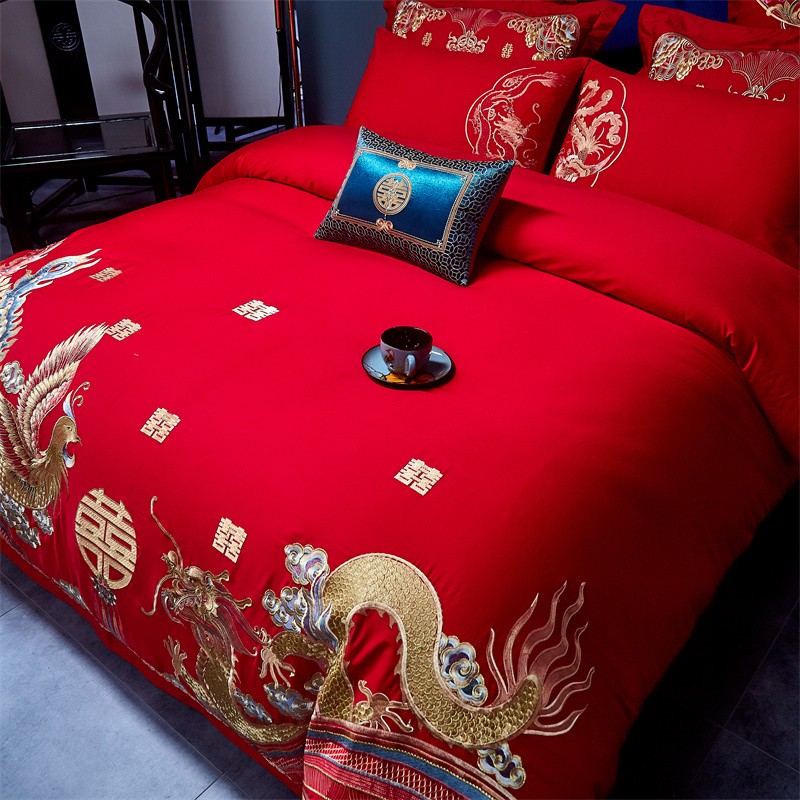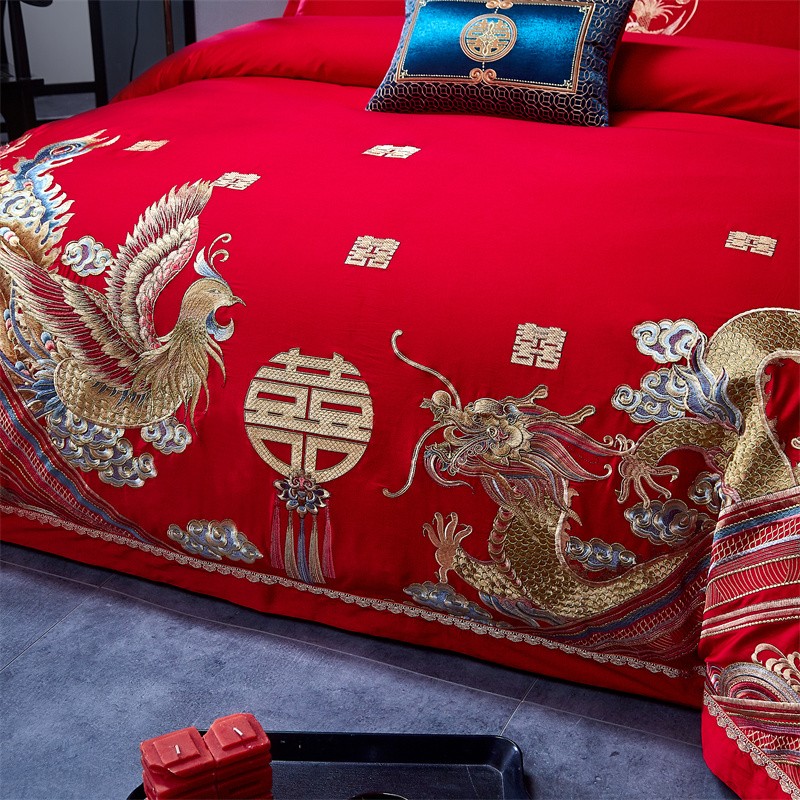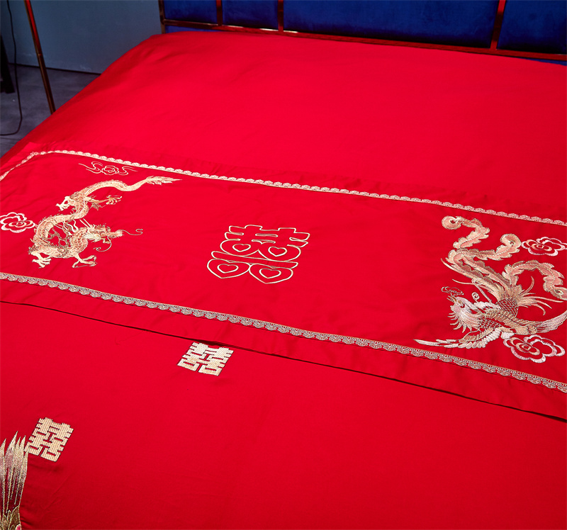 当前位置: 91家纺网 > 商品网购 > 床品套件 > 四件套 > 全棉普通四件套 > 2025新款全棉绣花大红婚庆四件套多件套直播双面60龙凤祥和