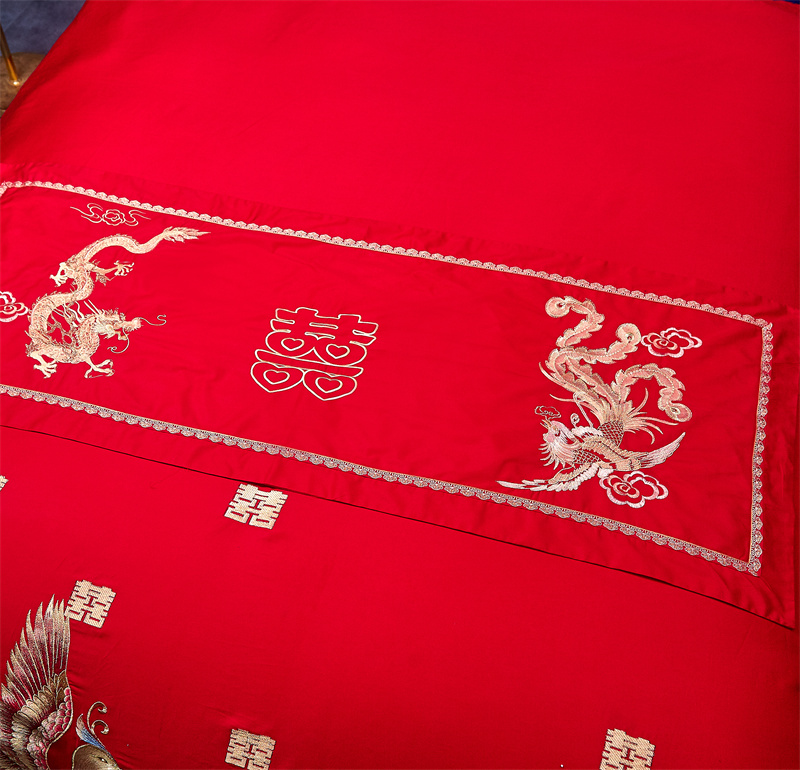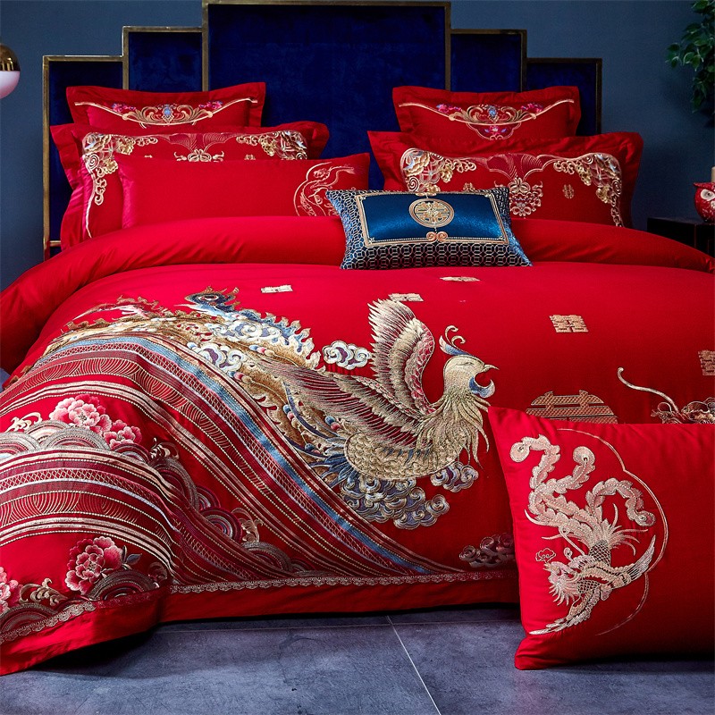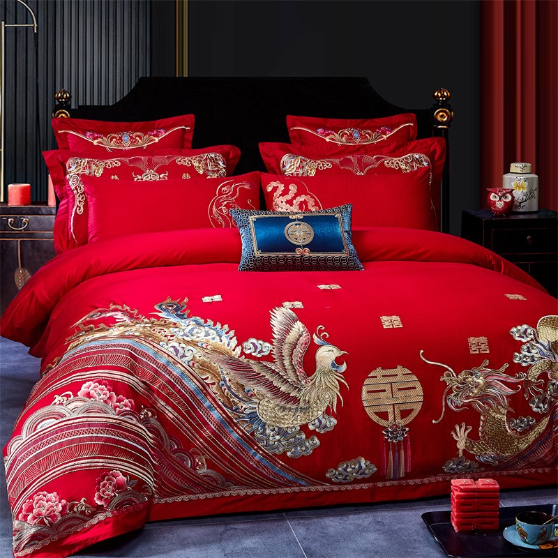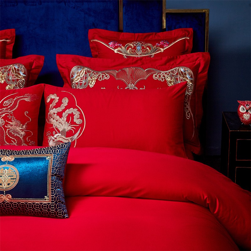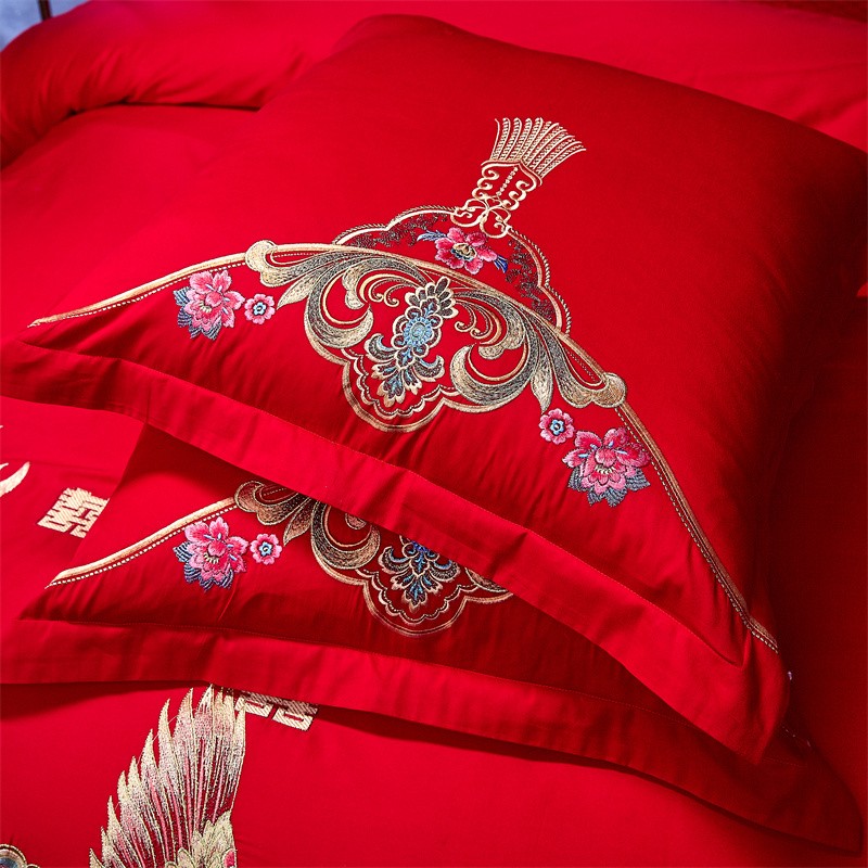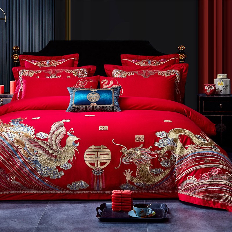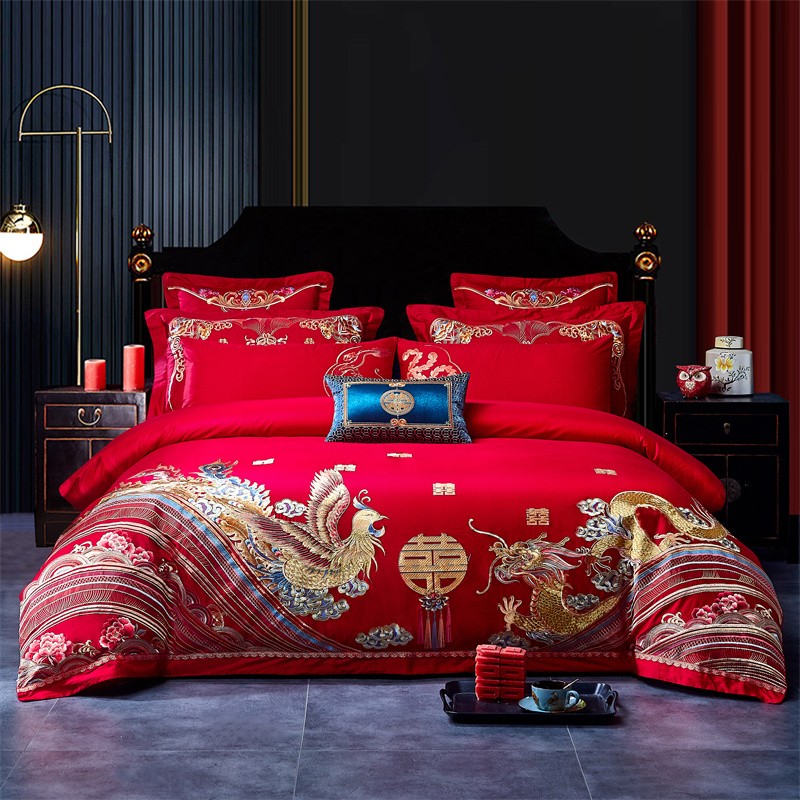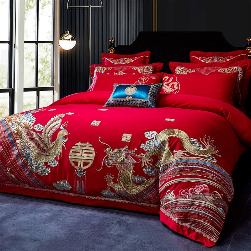 当前位置: 91家纺网 > 商品网购 > 床品套件 > 四件套 > 全棉普通四件套 > 2025新款全棉绣花大红婚庆四件套多件套直播双面60龙凤祥和