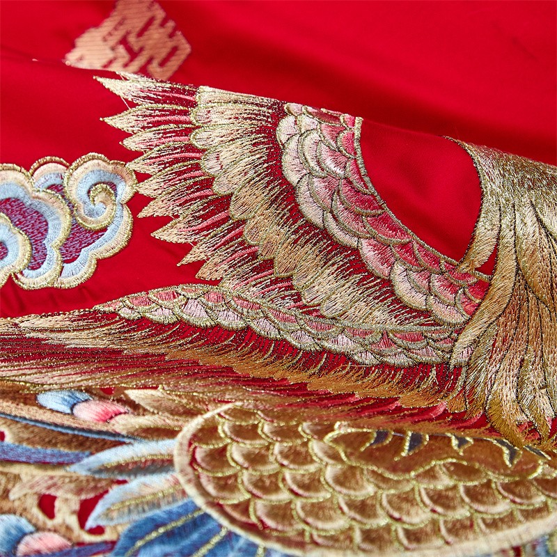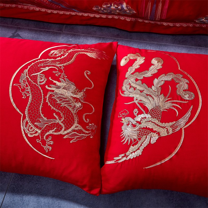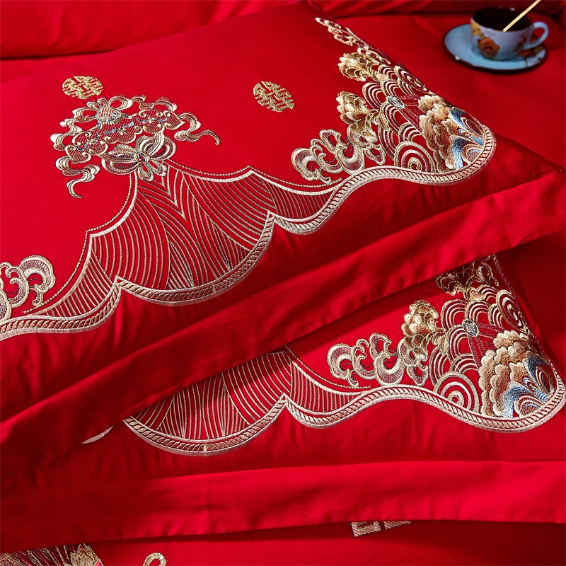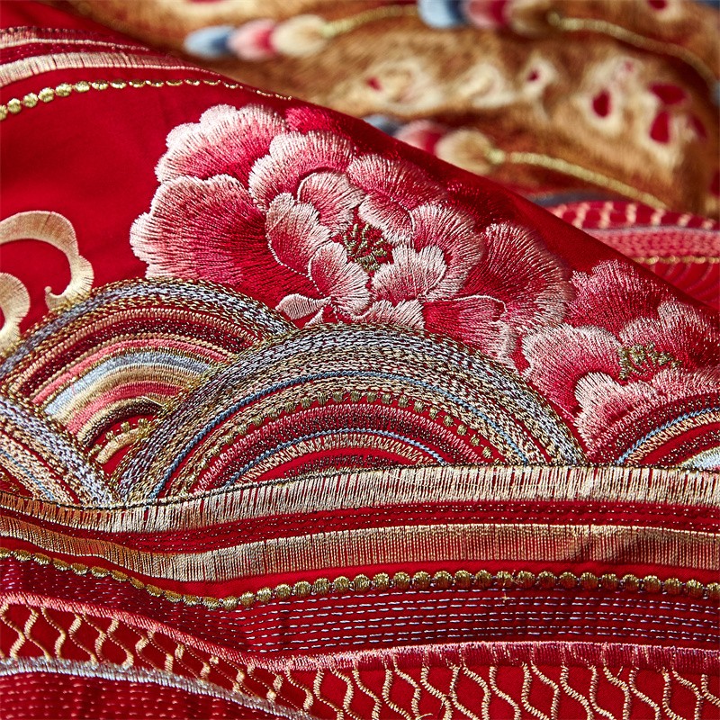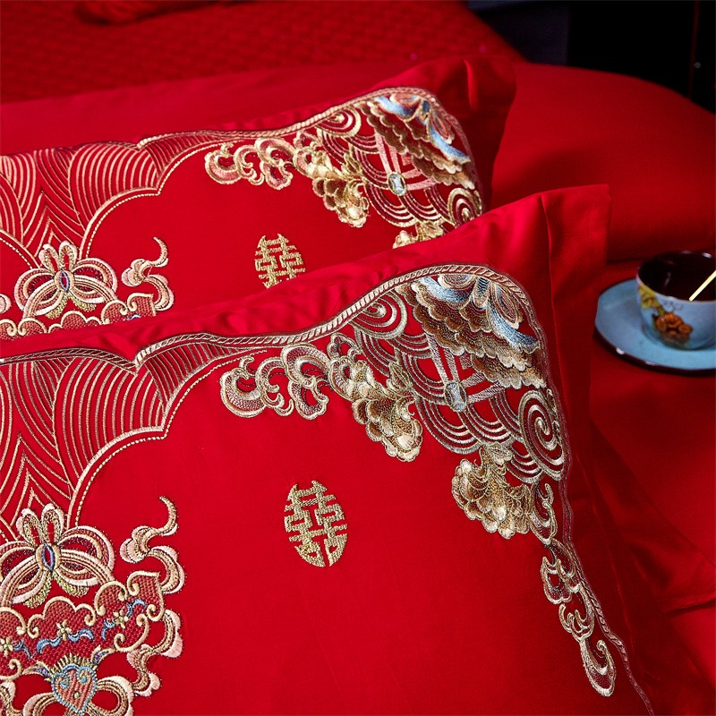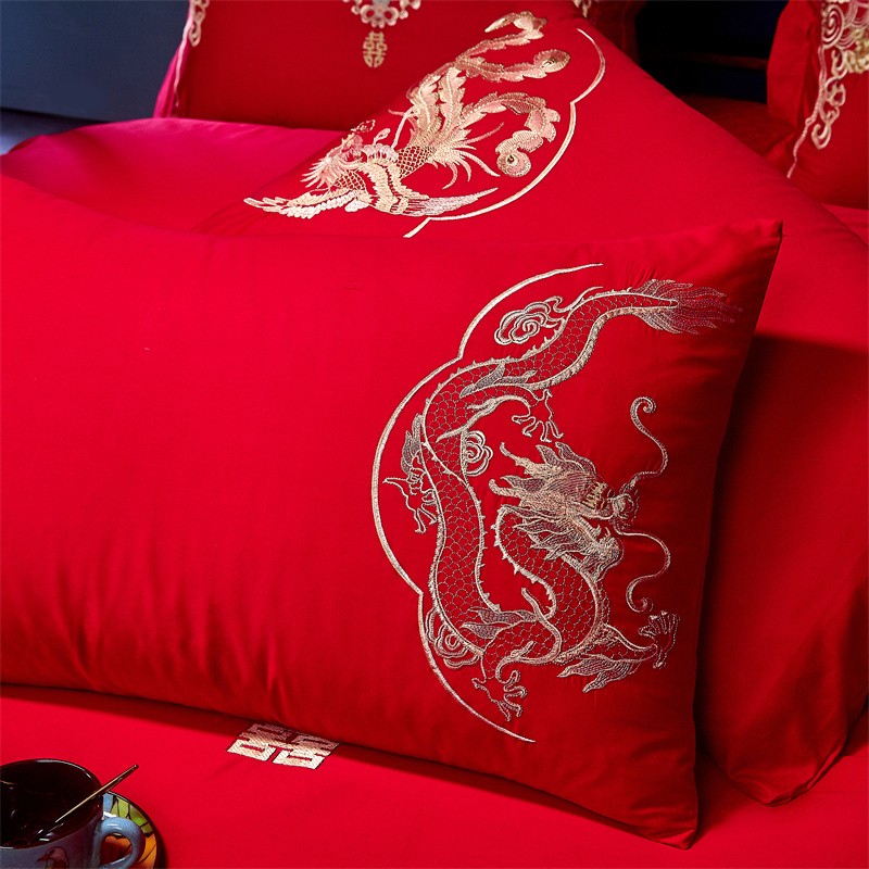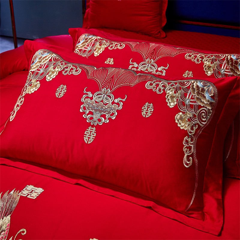 当前位置: 91家纺网 > 商品网购 > 床品套件 > 四件套 > 全棉普通四件套 > 2025新款全棉绣花大红婚庆四件套多件套直播双面60龙凤祥和