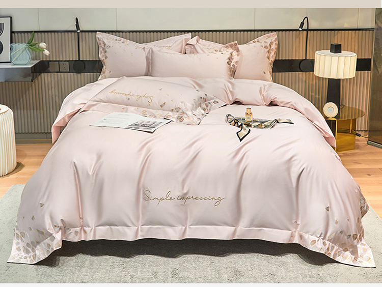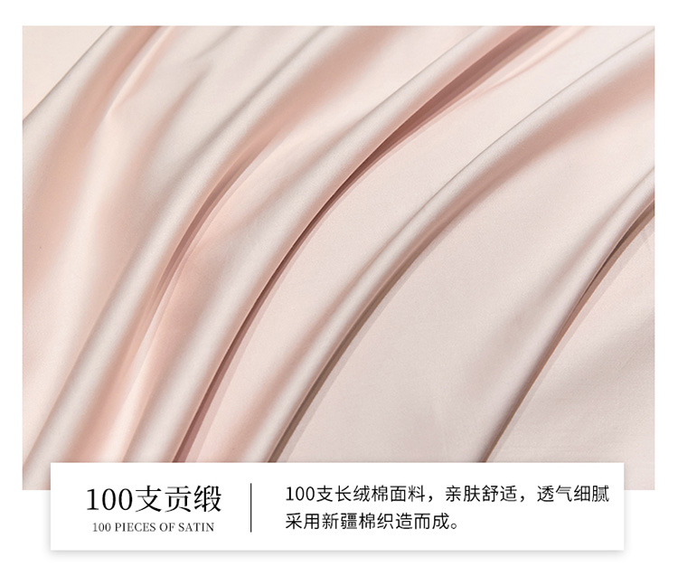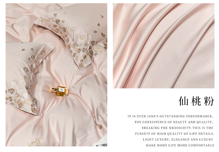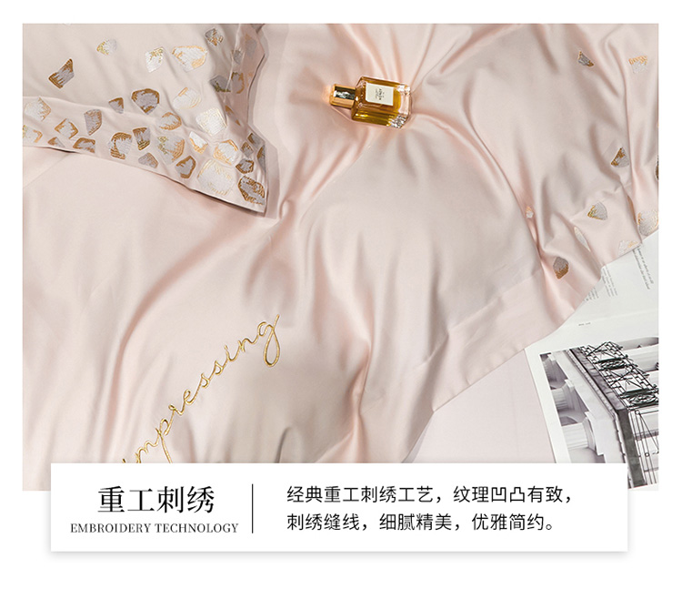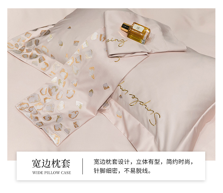 商品名称:爱缦 新款100支长绒棉贡缎刺绣宽边四件套-耀影系列 仙桃粉