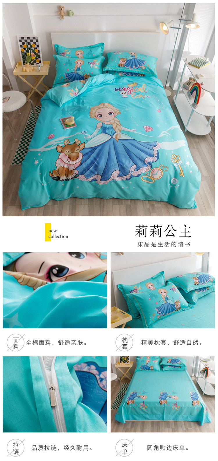 当前位置: 91家纺网 > 商品网购 > 床品套件 > 四件套 > 全棉普通四件套 > 金爱家 2023新款大版纯棉卡通四件套 莉莉公主