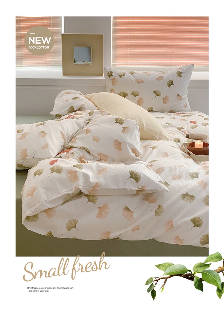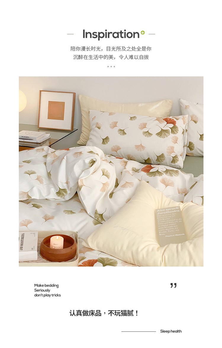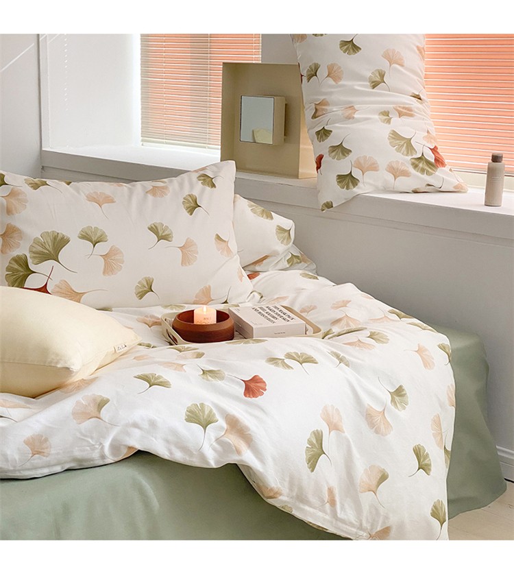窝米 2022新款全棉印花活性四件套花卉系列 银杏叶