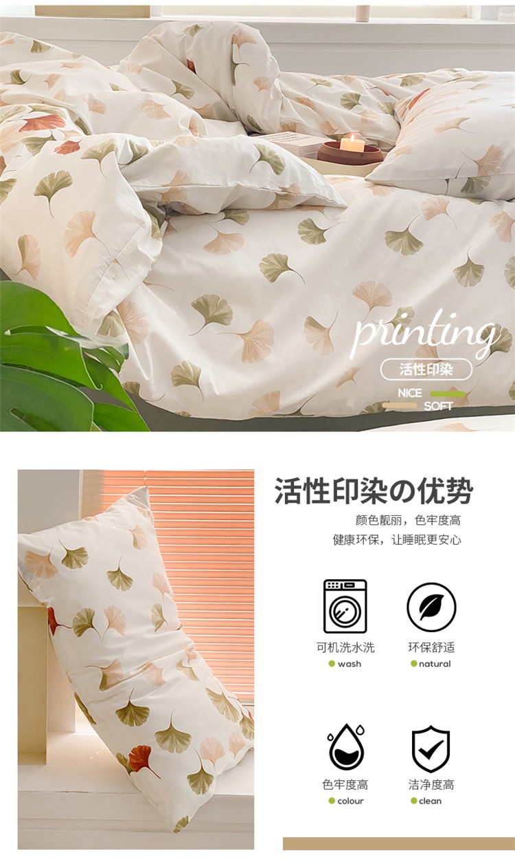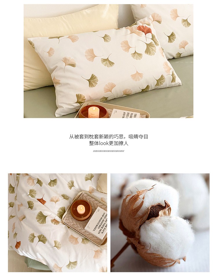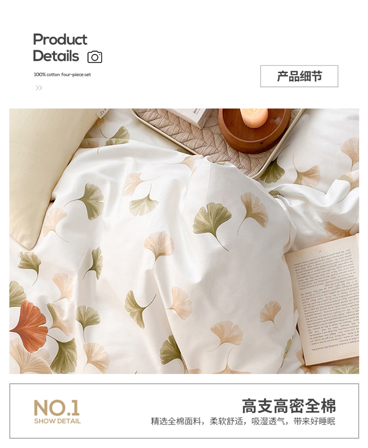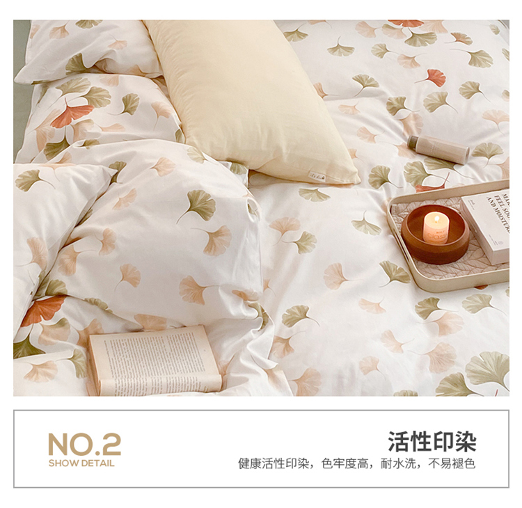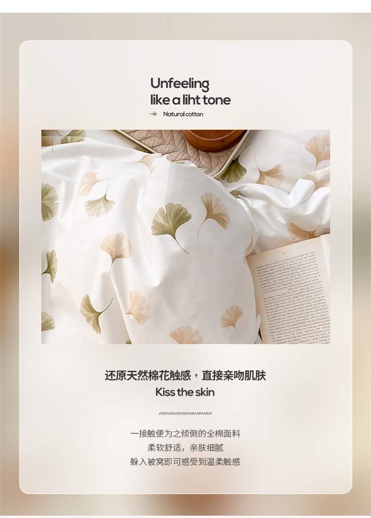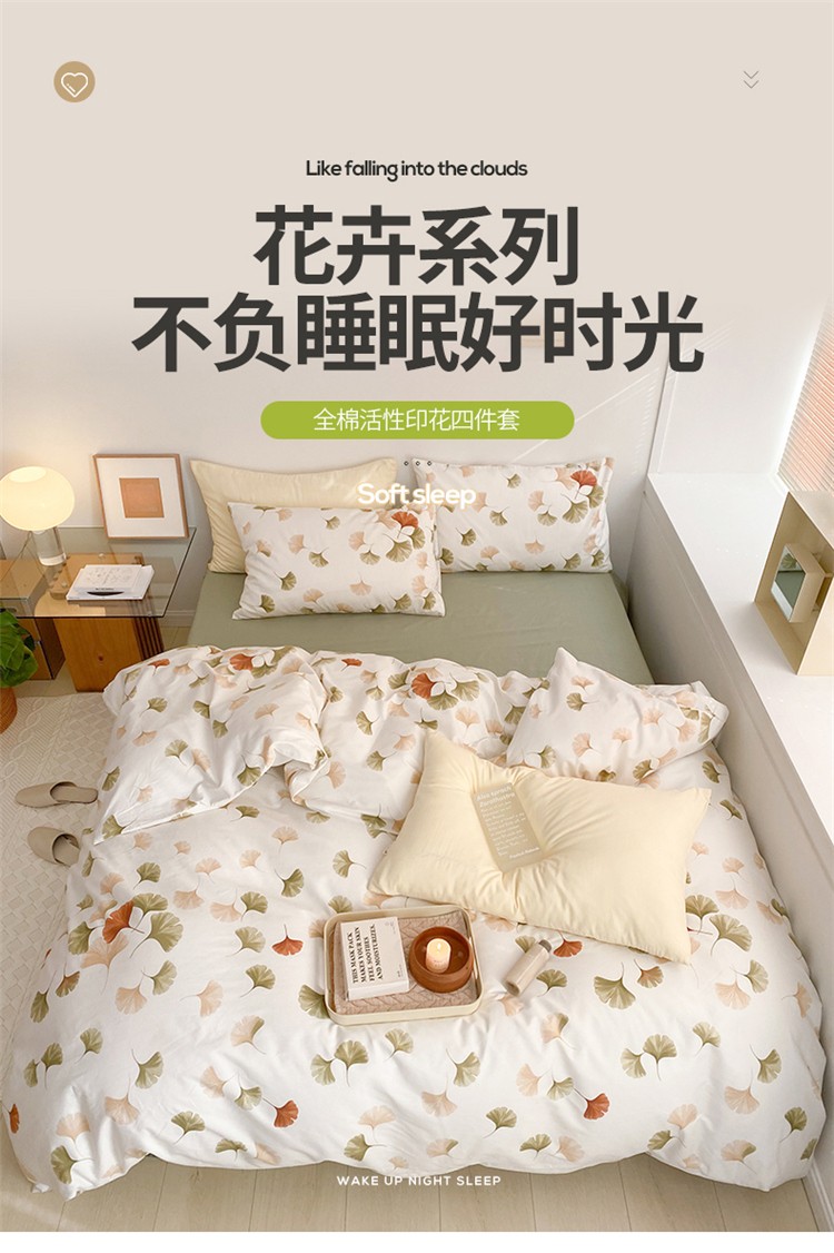商品名称:窝米 2022新款全棉印花活性四件套花卉系列 银杏叶