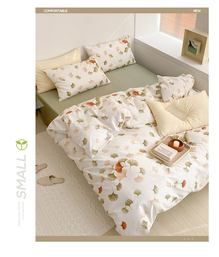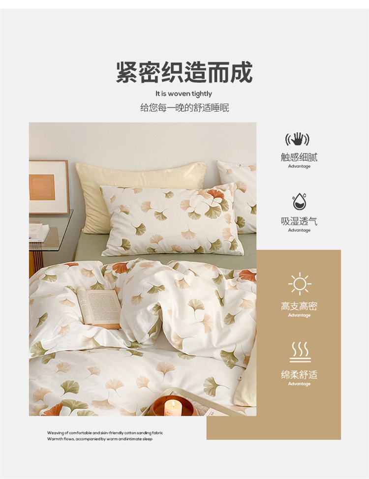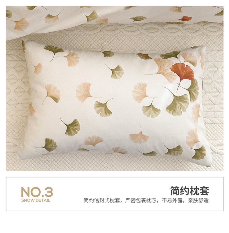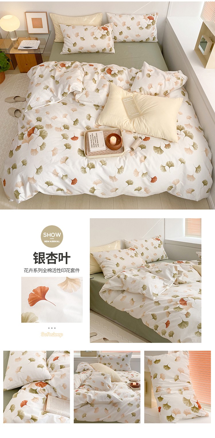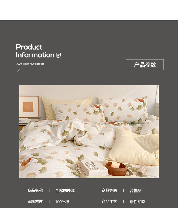商品名称:窝米 2022新款全棉印花活性四件套花卉系列 银杏叶