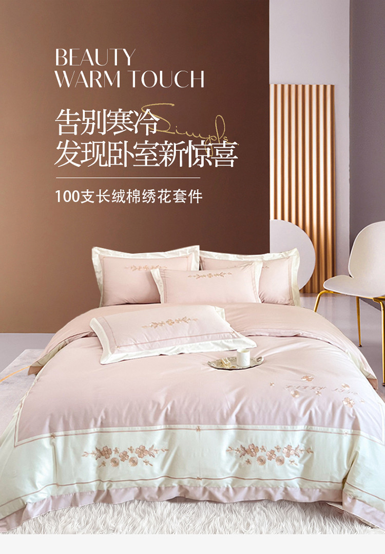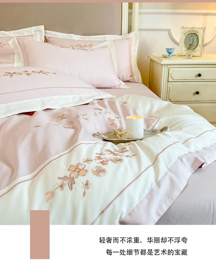 时亿 2022新款100支高密长绒棉绣花四件套 粉色