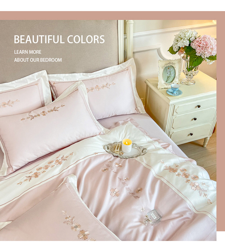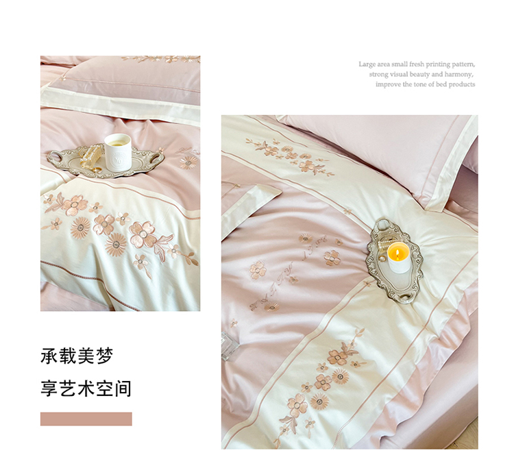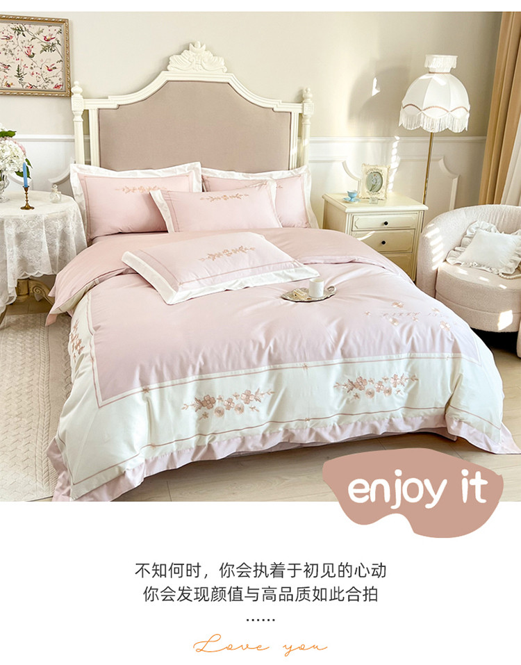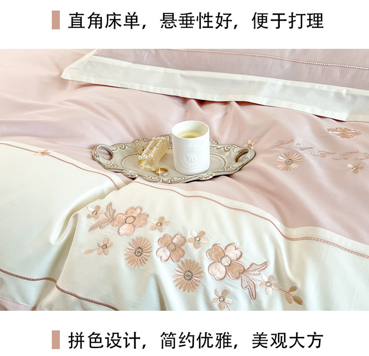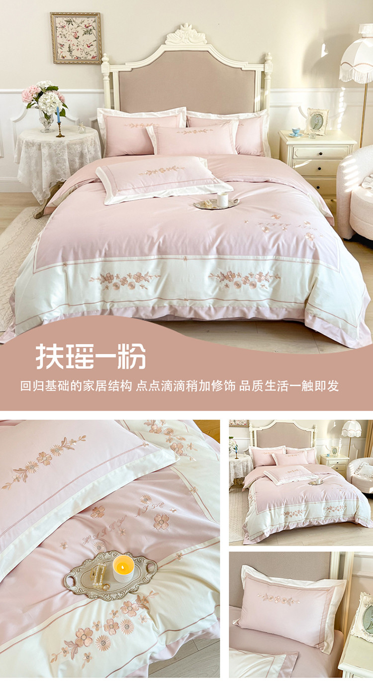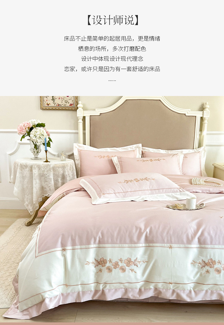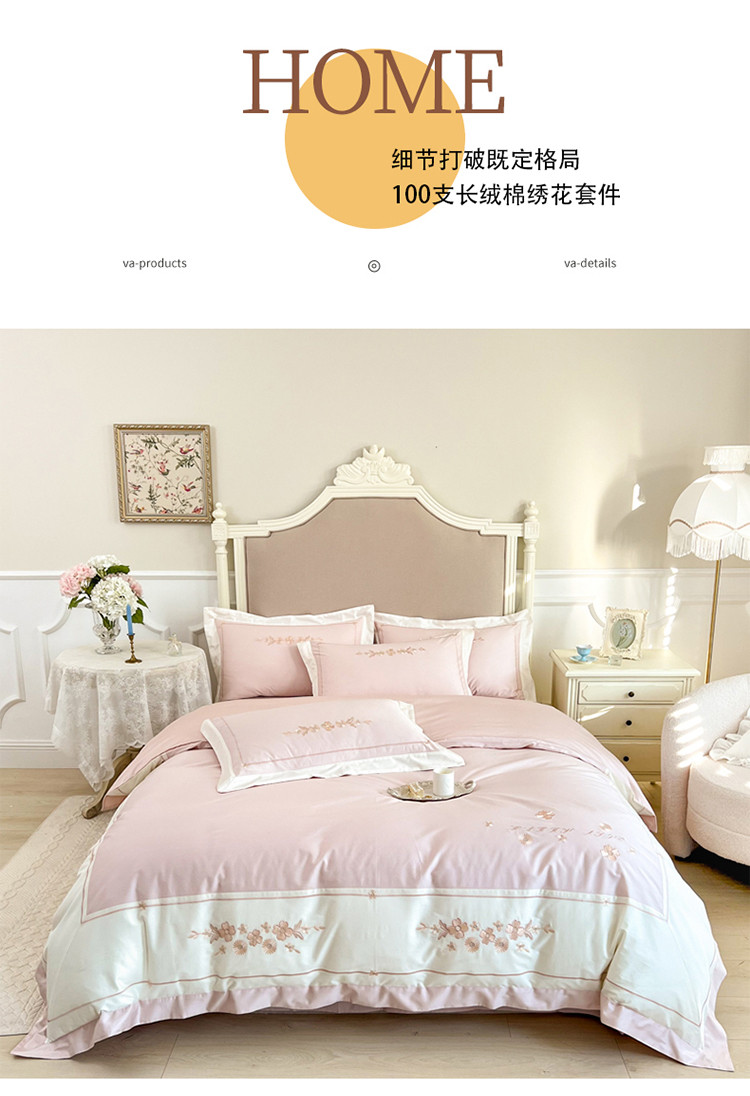 商品名称:时亿 2022新款100支高密长绒棉绣花四件套 粉色