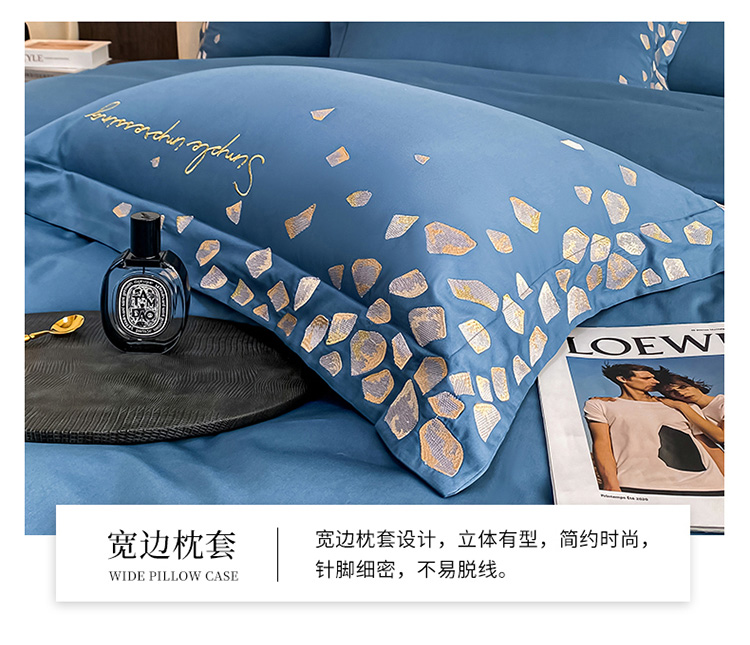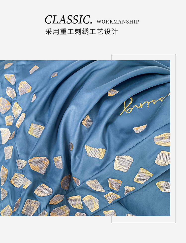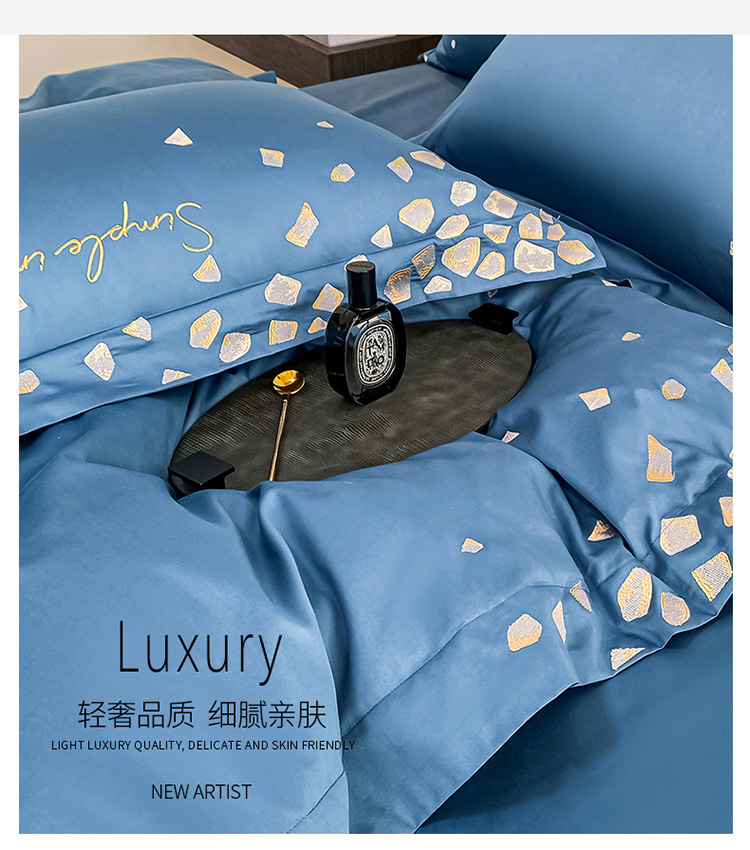 商品名称:爱缦 2022耀影系列100支长绒棉奥棉四件套 星梦蓝