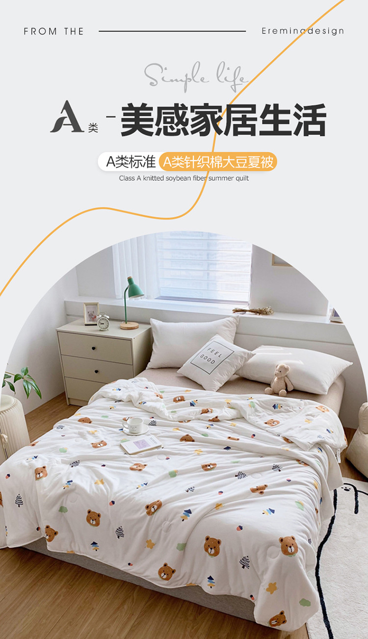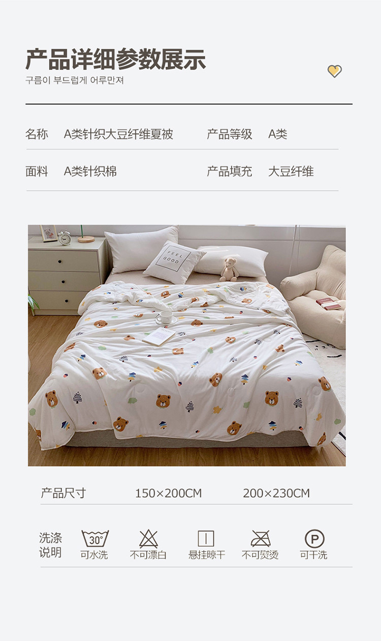 商品名称:佰亿莱 2024新款针织大豆纤维夏被 可爱小熊-白