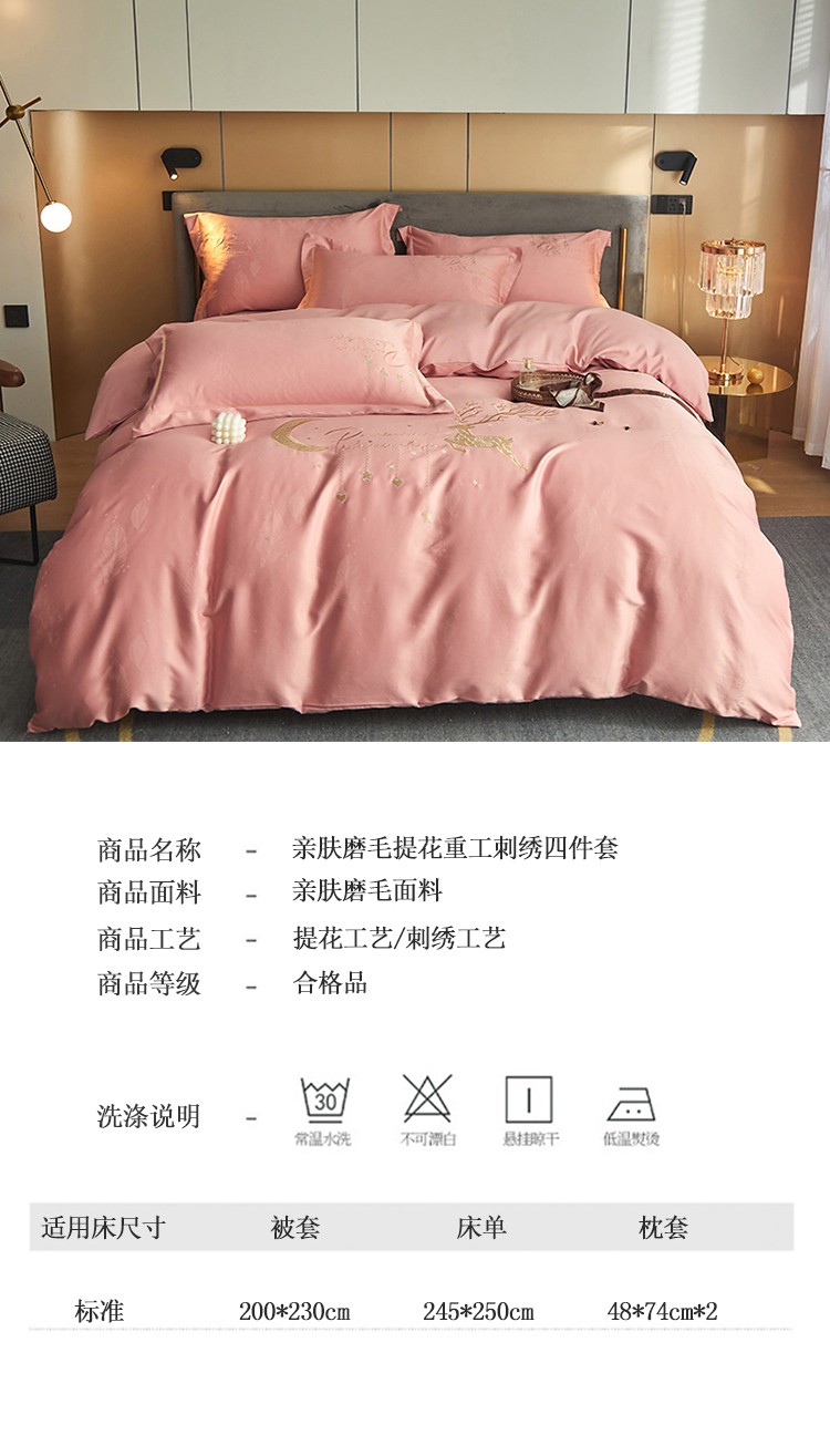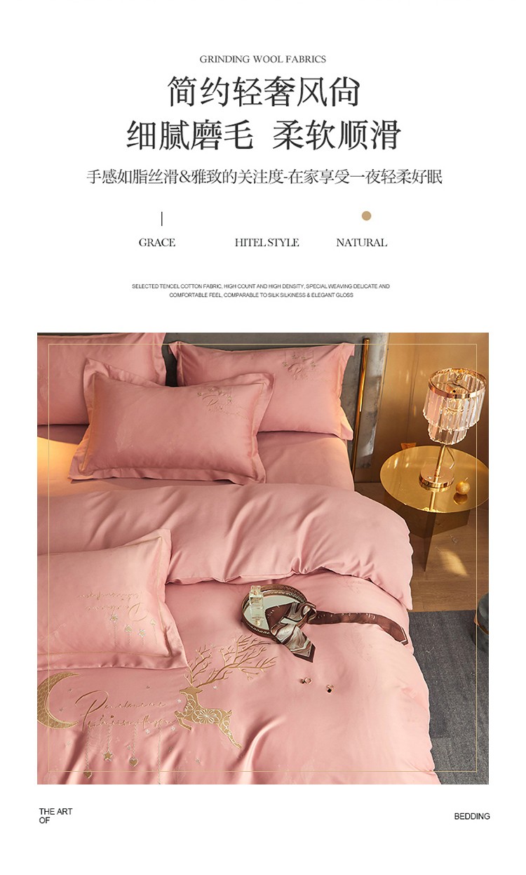商品名称:凡客 2022新款磨毛提花重工刺绣小鹿四件套 小鹿森林-粉