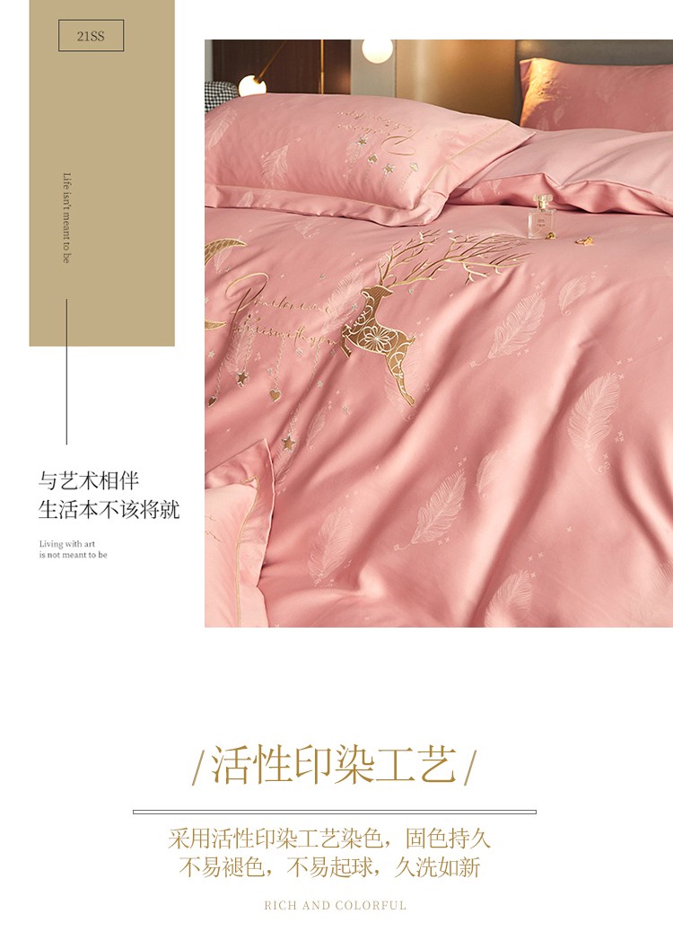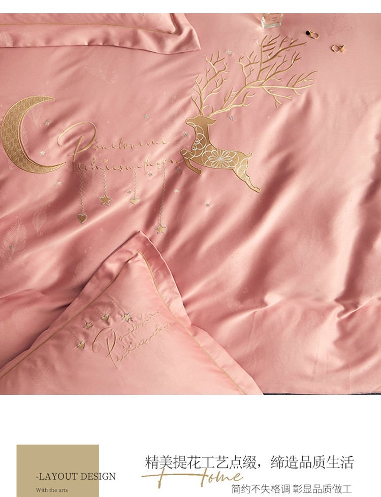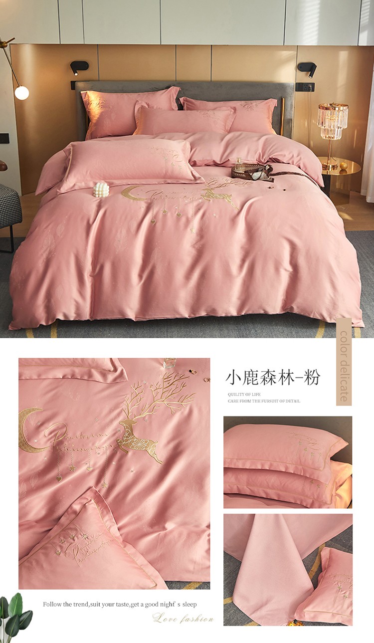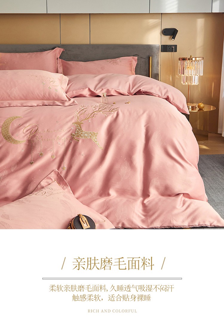 凡客 2022新款磨毛提花重工刺绣小鹿四件套 小鹿森林-粉