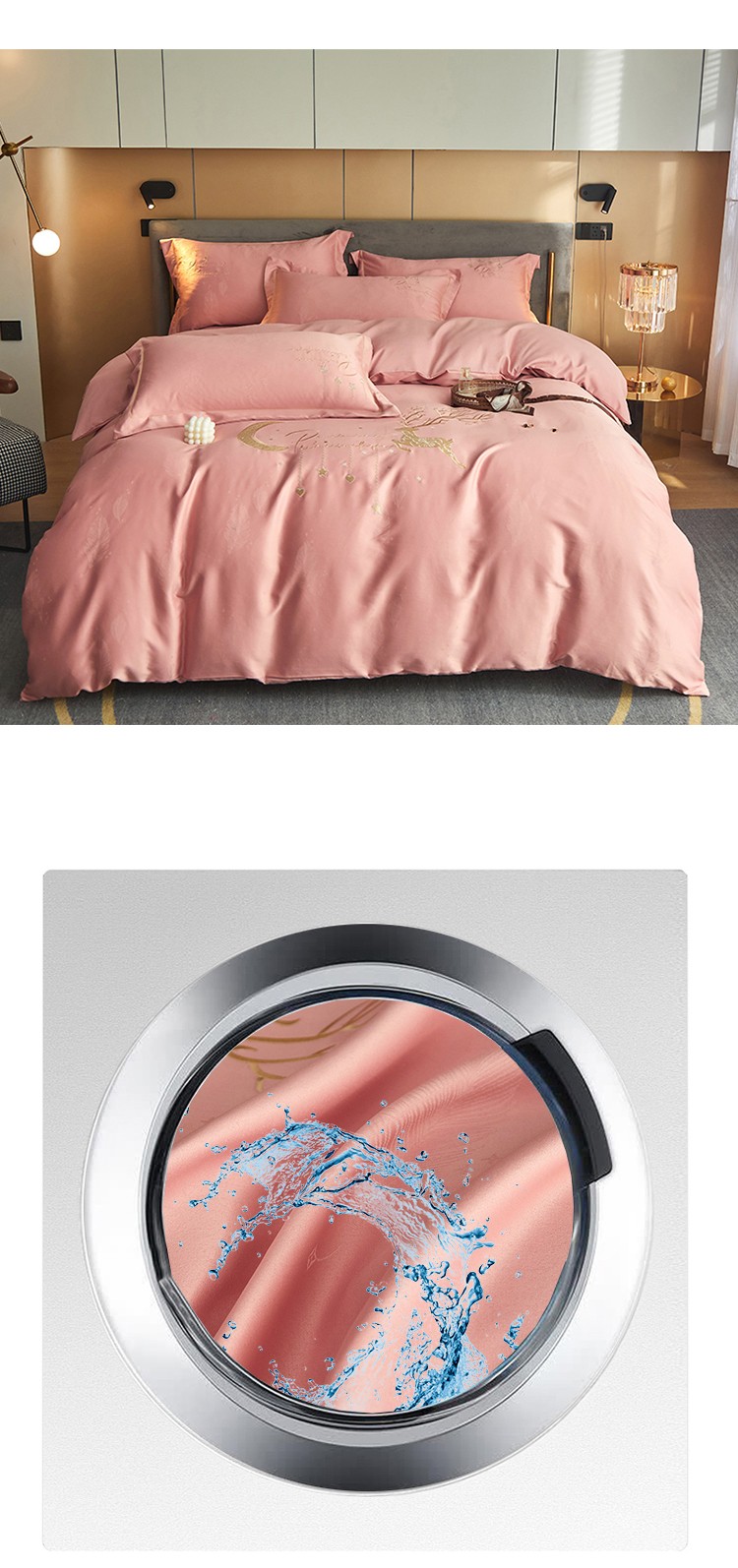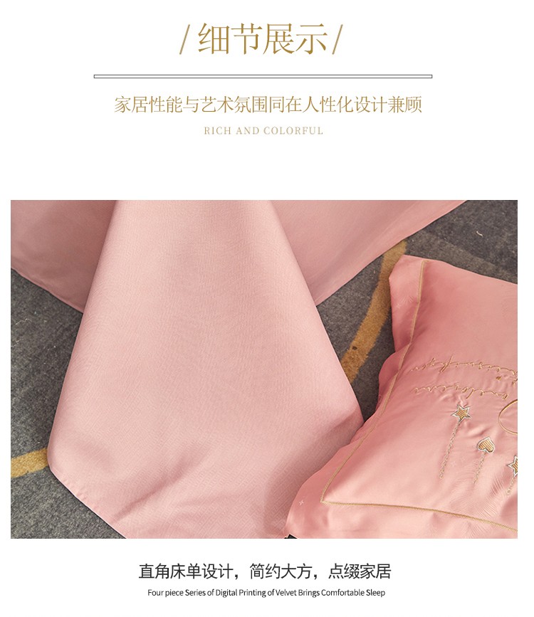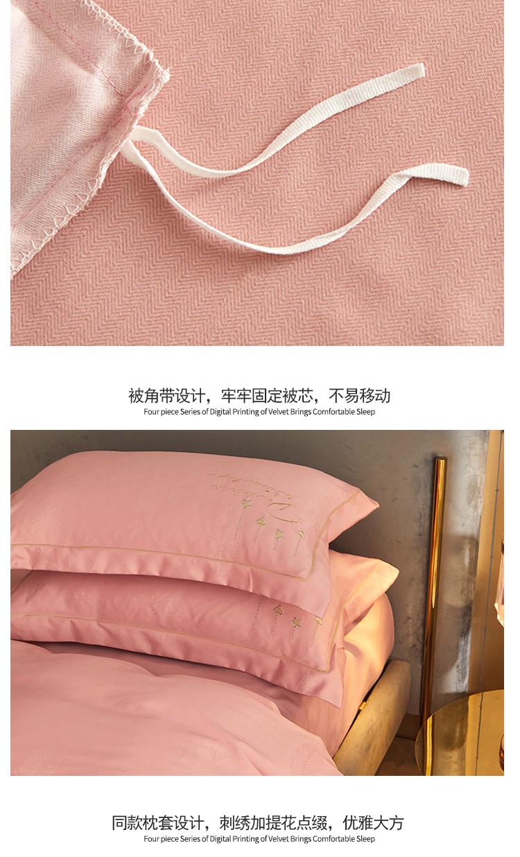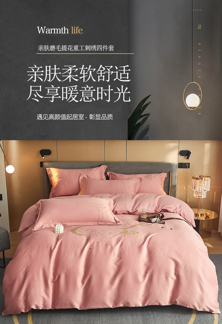 凡客 2022新款磨毛提花重工刺绣小鹿四件套 小鹿森林-粉