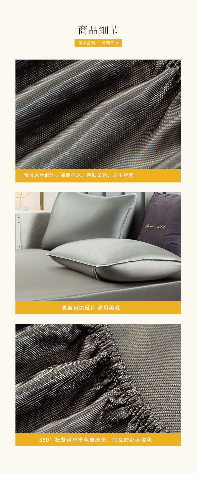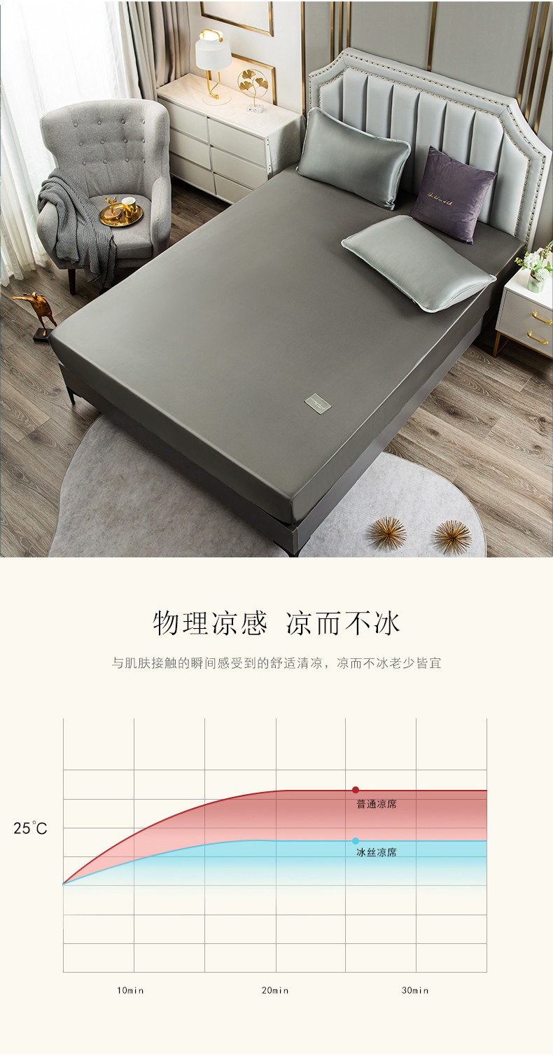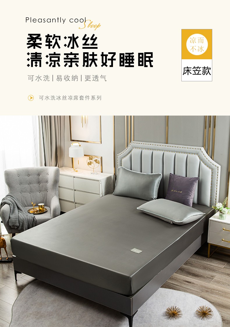 商品名称:潮邦 2025新款可水洗四公分松紧整圈柔软清凉冰丝凉席床笠款 太空灰