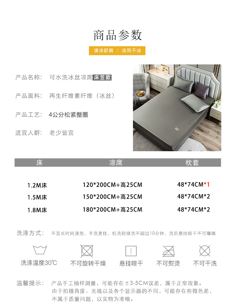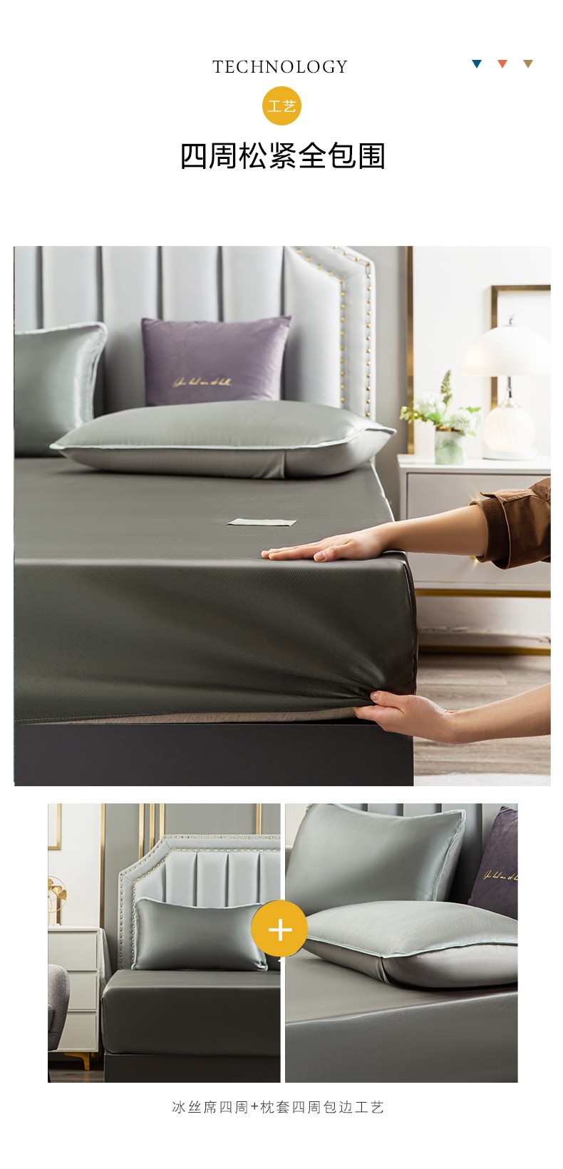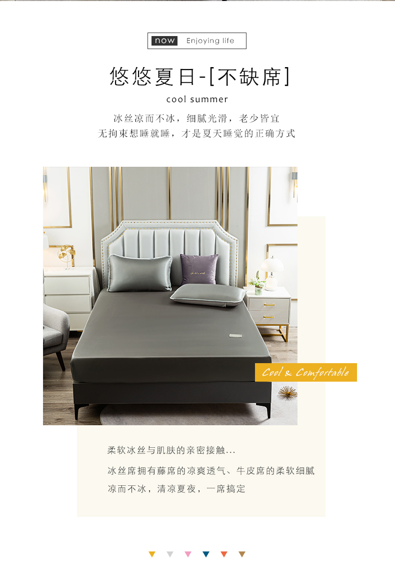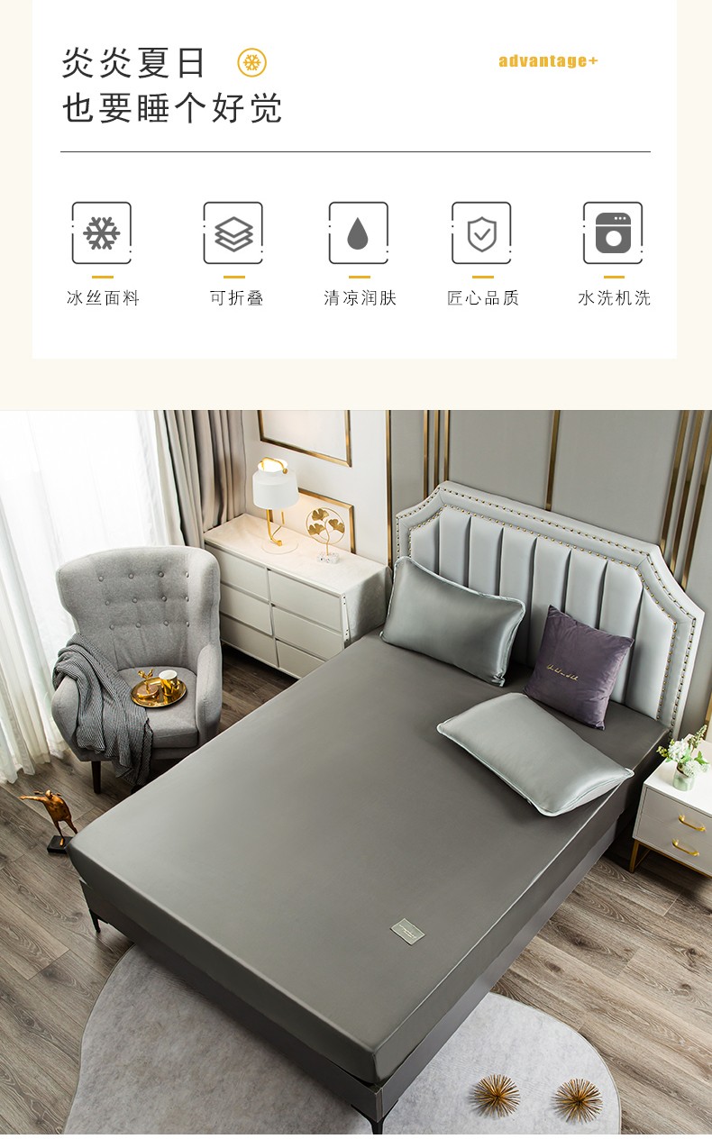 商品名称:潮邦 2025新款可水洗四公分松紧整圈柔软清凉冰丝凉席床笠款 太空灰