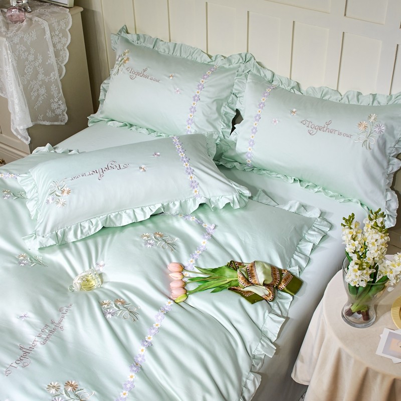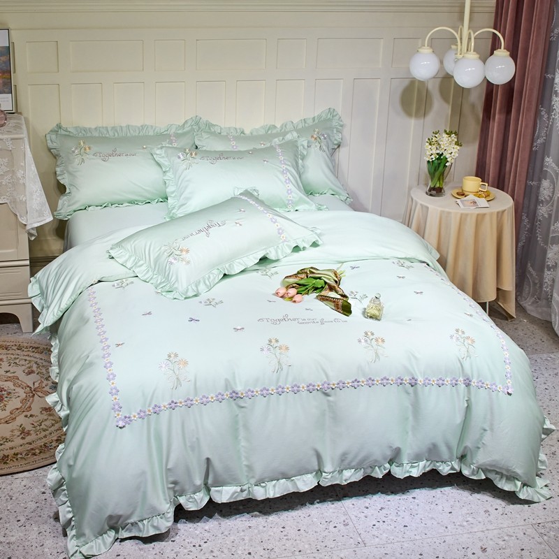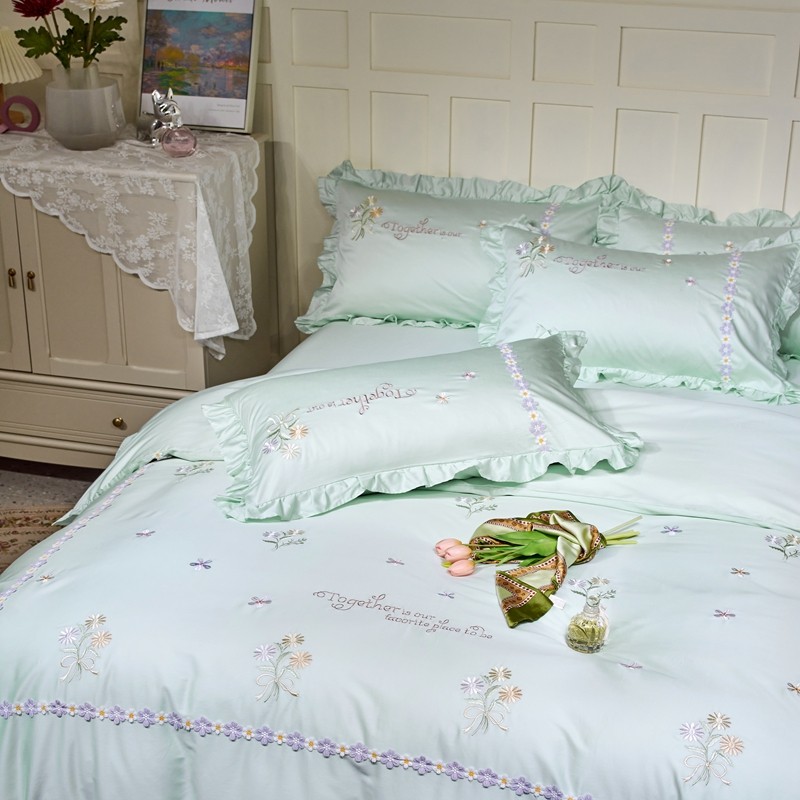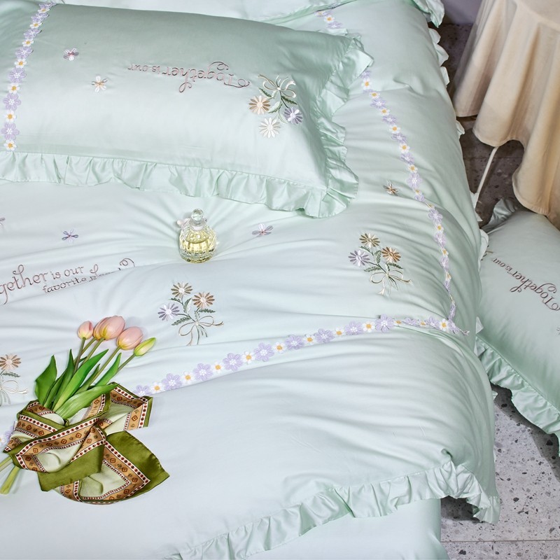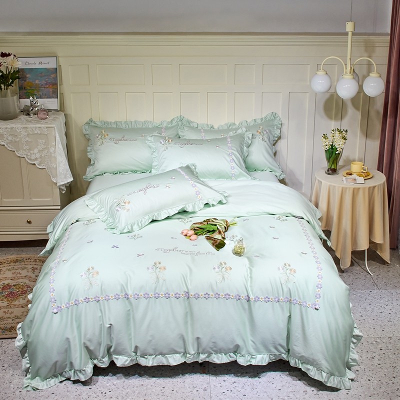 (总)星尚家纺 2024新款全消光230g牛奶绒刺绣保暖四件套-花漾,晨雾绿,豆沙粉,樱花粉
