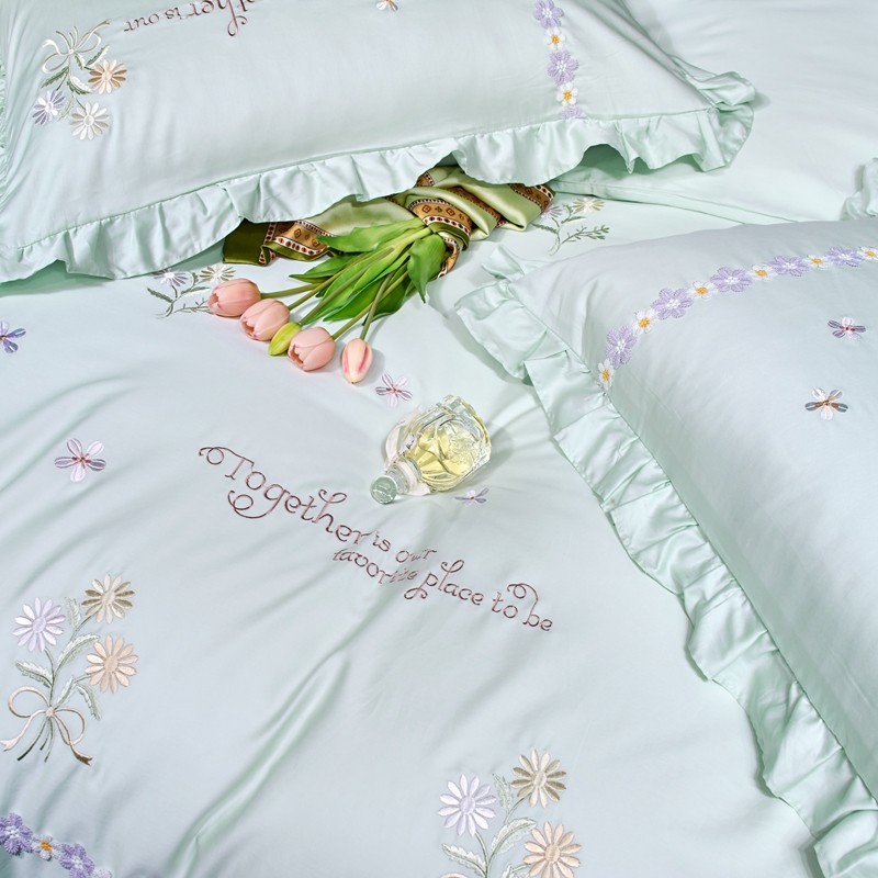 商品名称:星尚 2022新款100支长绒棉 花艺园 豆绿