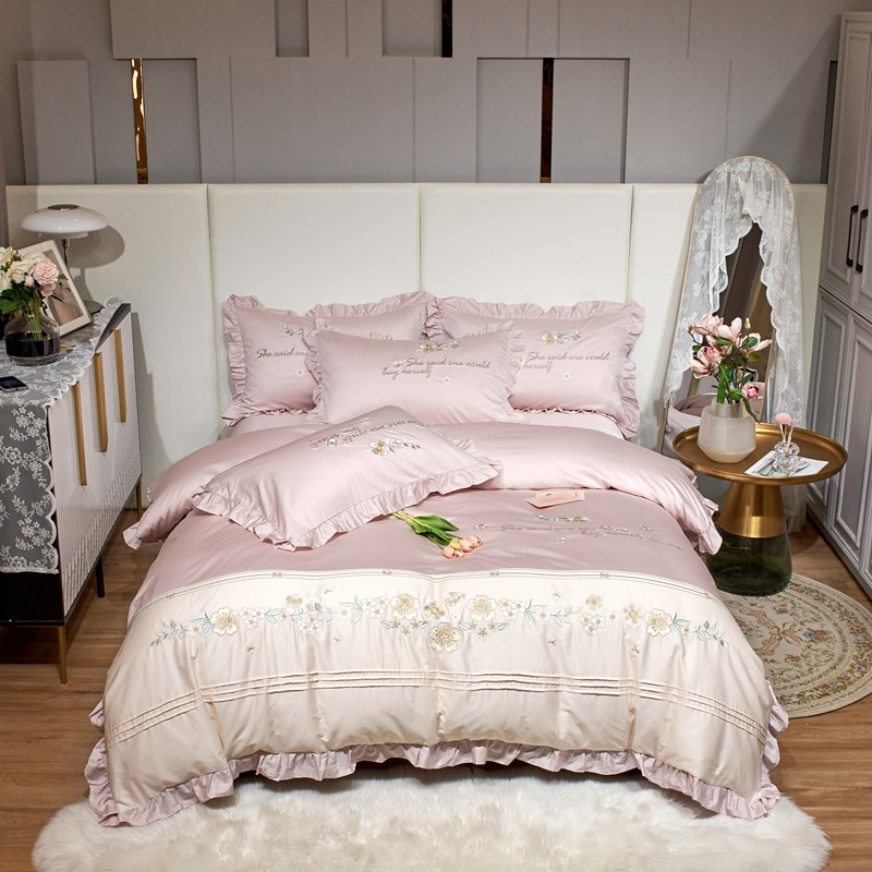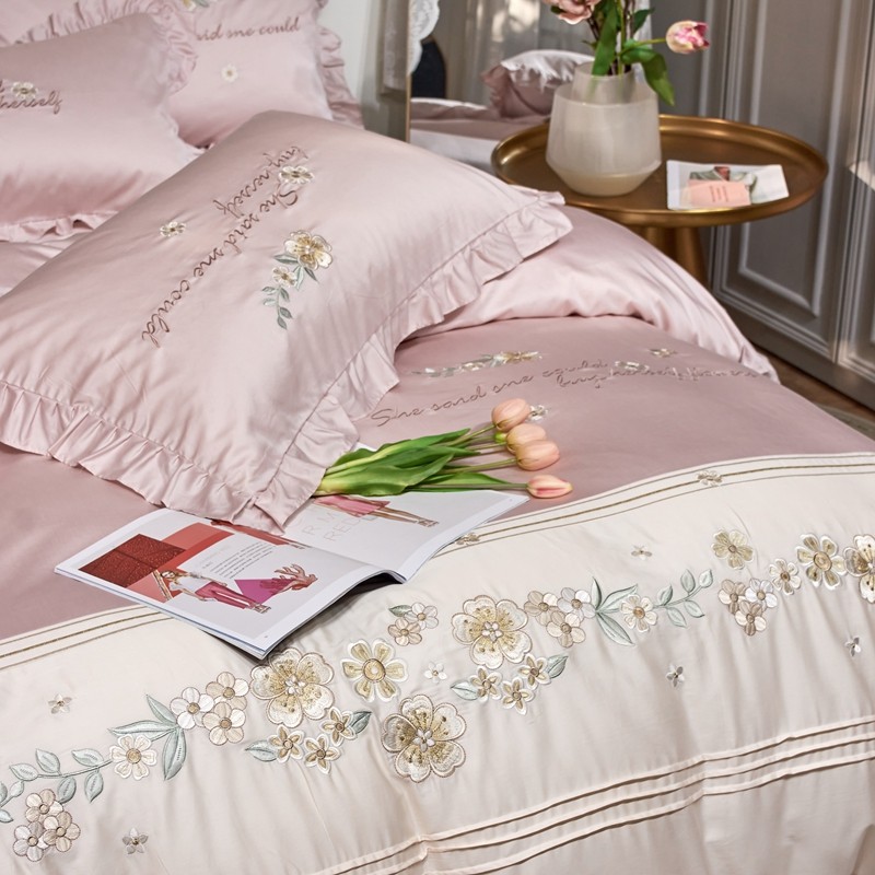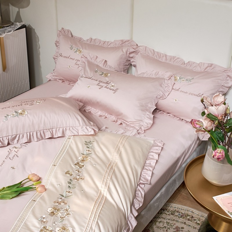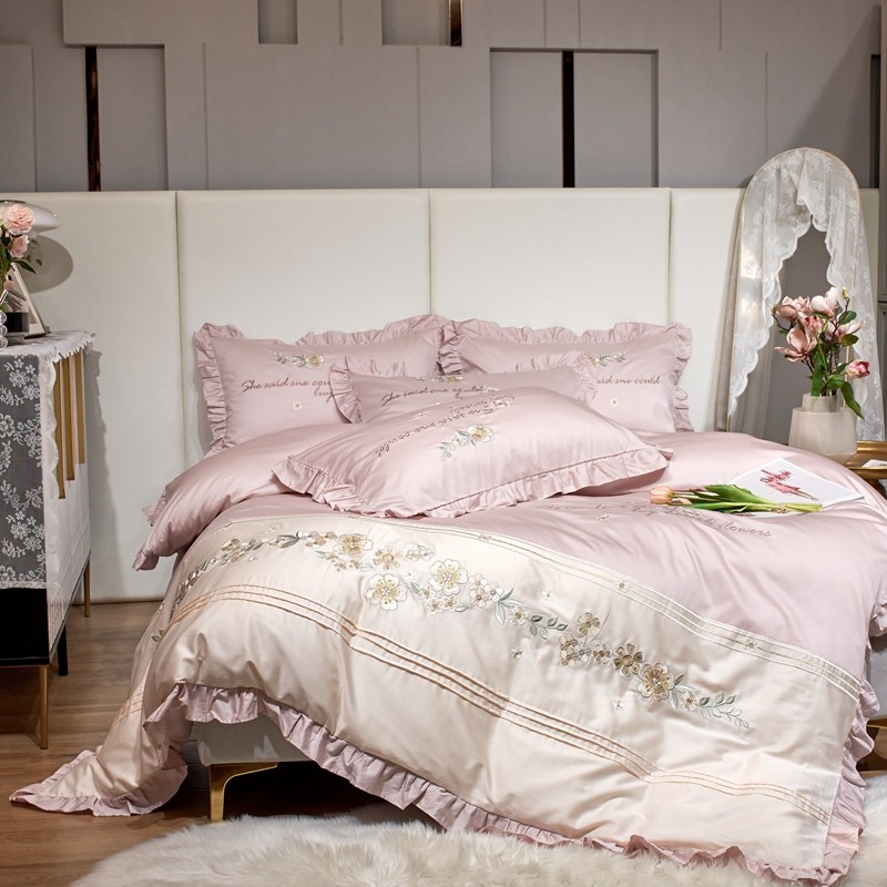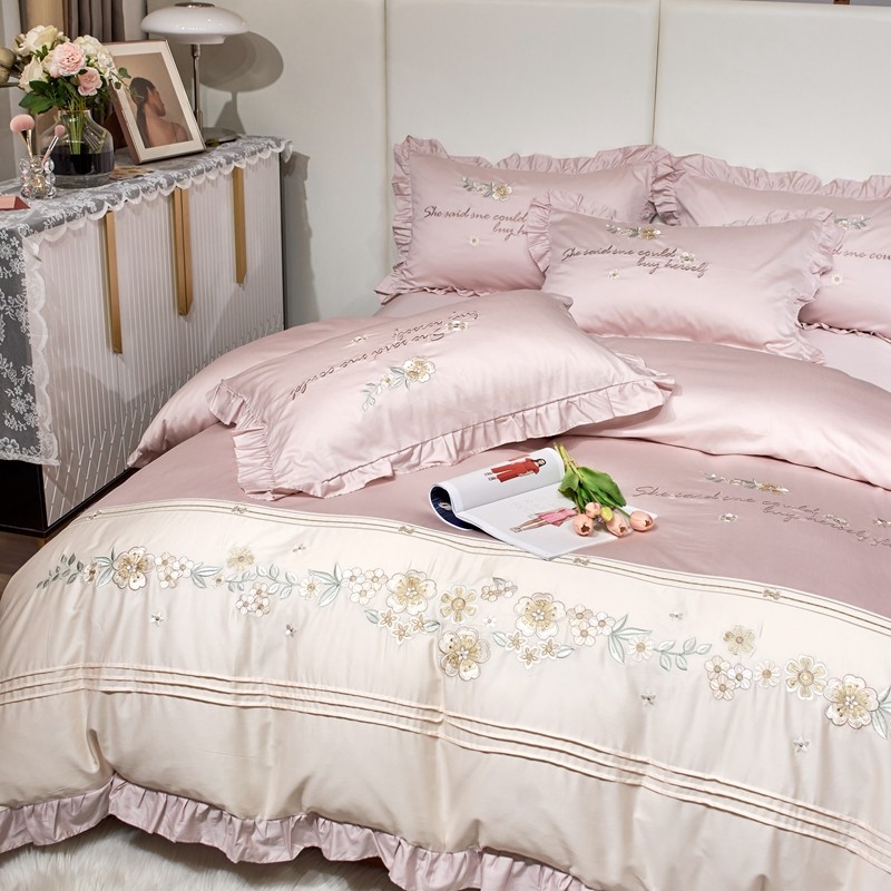 (总)星尚家纺 2024新款全消光230g牛奶绒刺绣保暖四件套-花漾,晨雾绿,豆沙粉,樱花粉