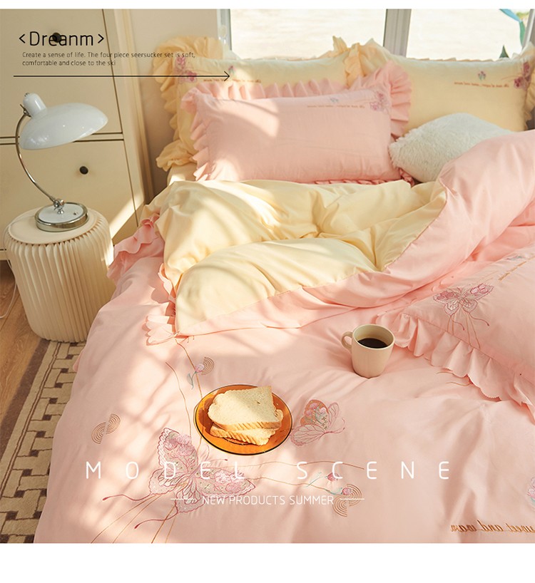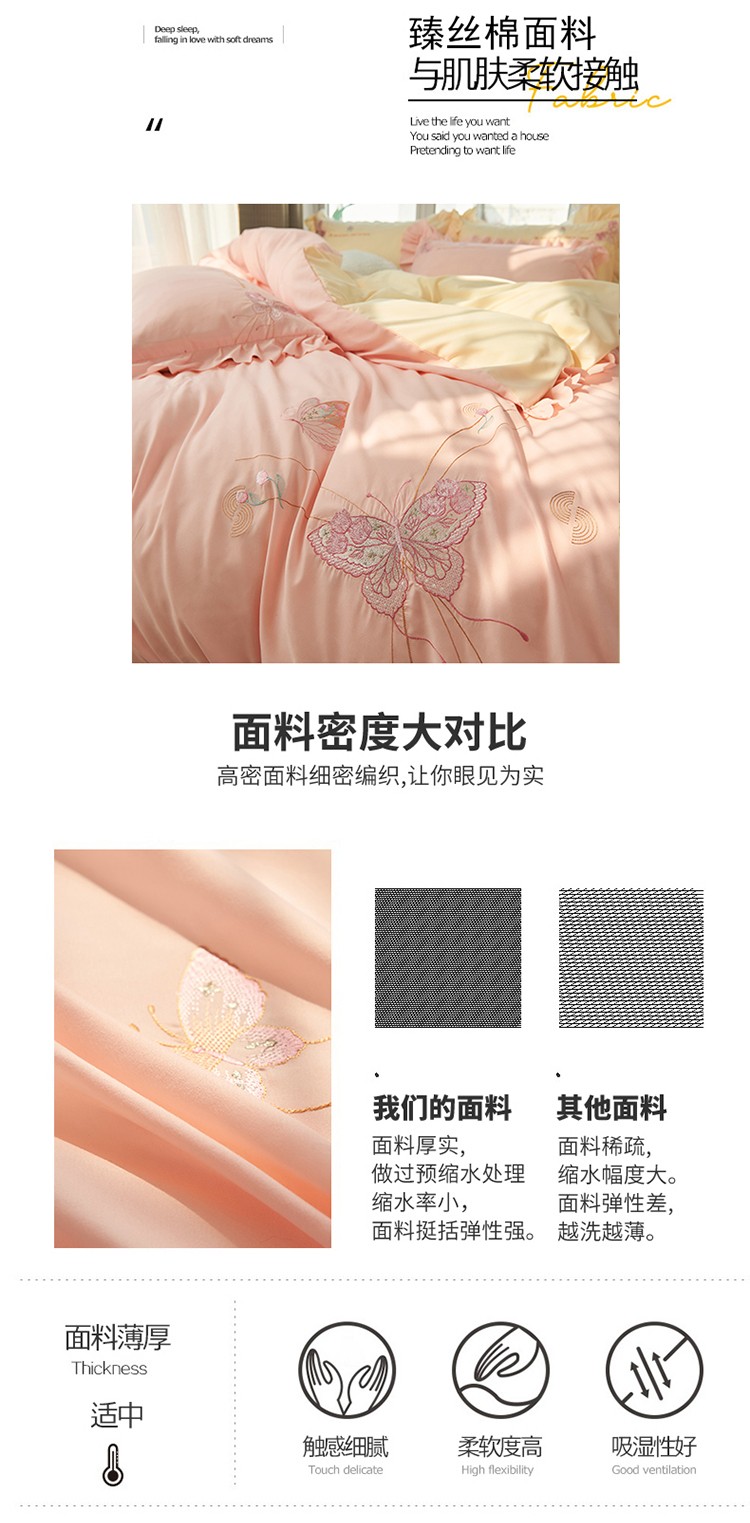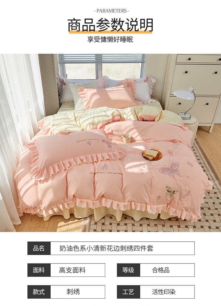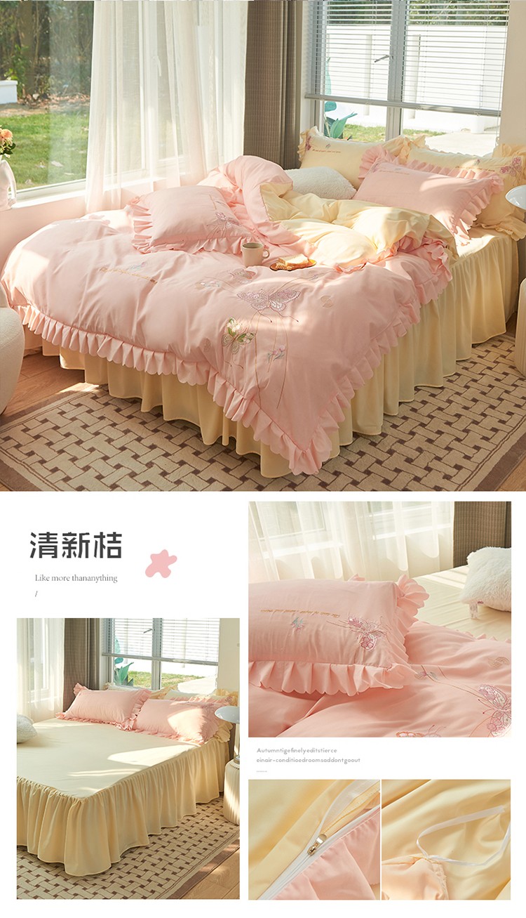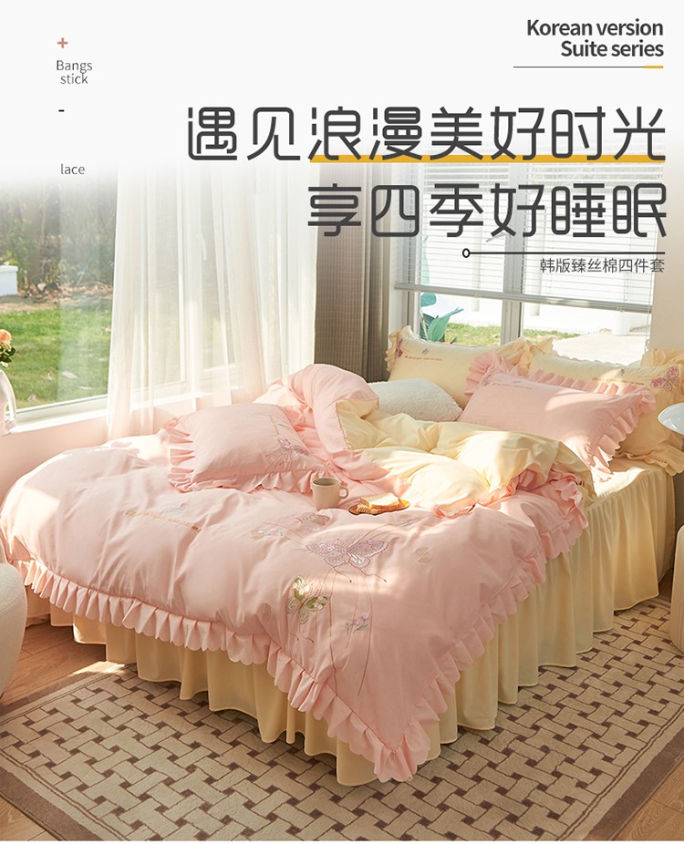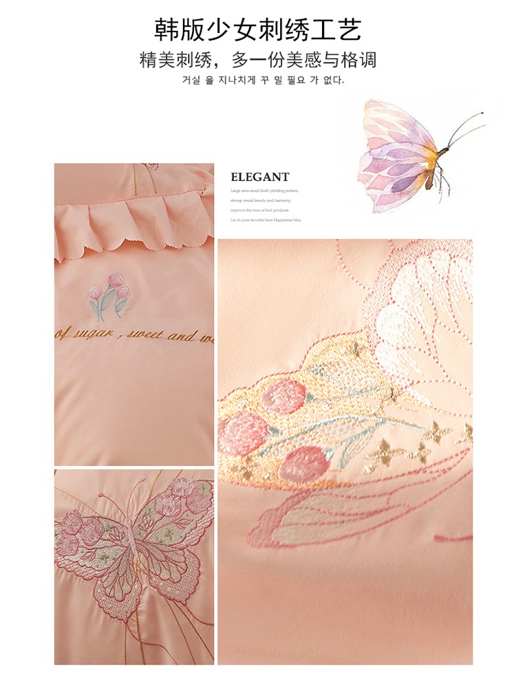 当前位置: 91家纺网 > 商品网购 > 床品套件 > 四件套 > 化纤活性四件套 > 包小包 2024春夏新款韩版蝶舞系列臻丝棉四件套 清新桔