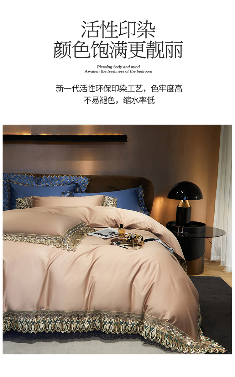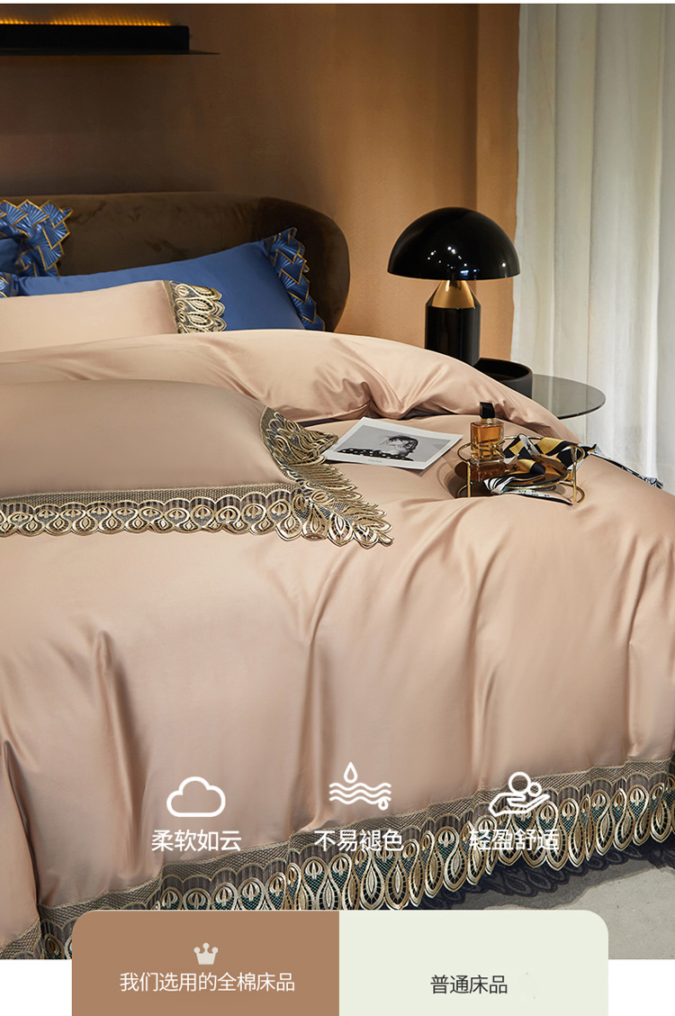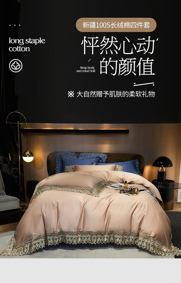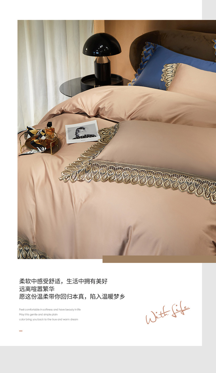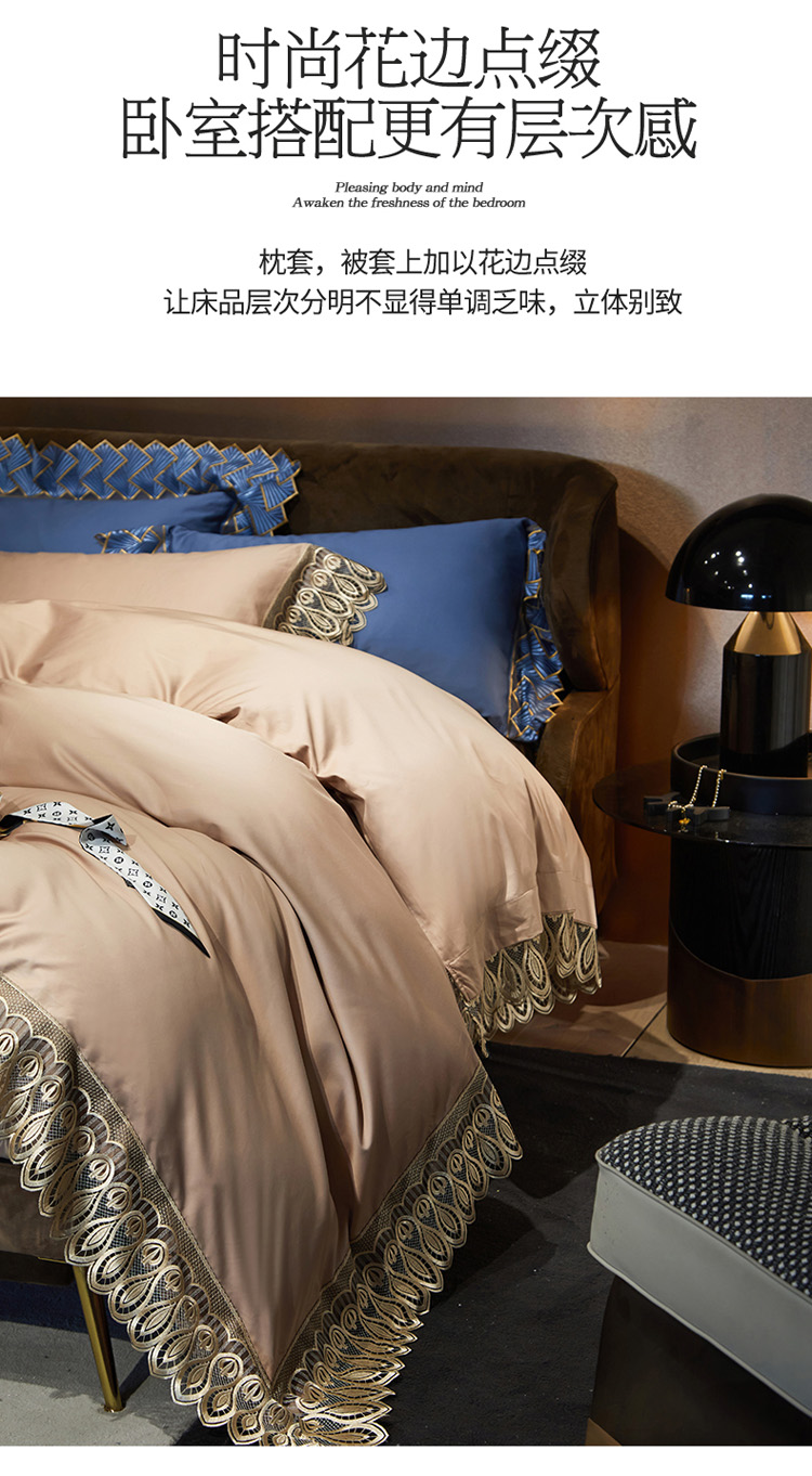商品名称:2023名品优仓直播爆款奥黛丽系列100s长绒棉四件套 奥黛丽 香槟金
