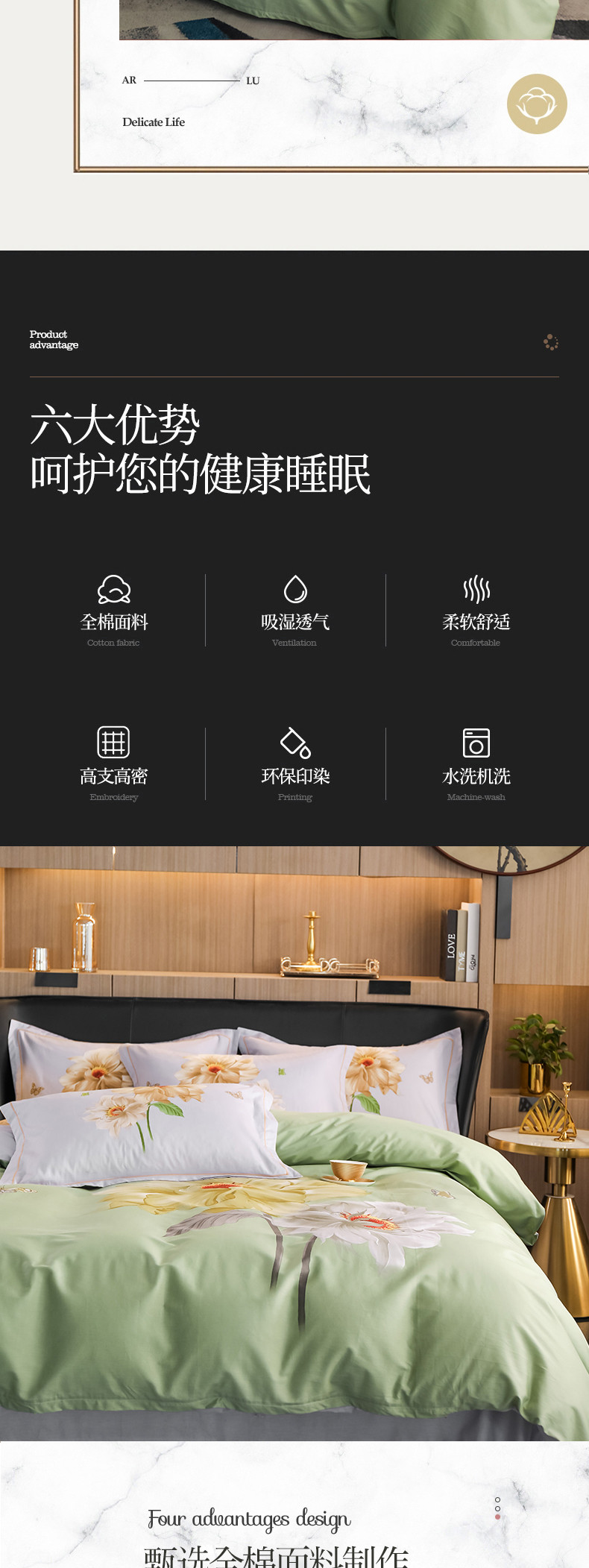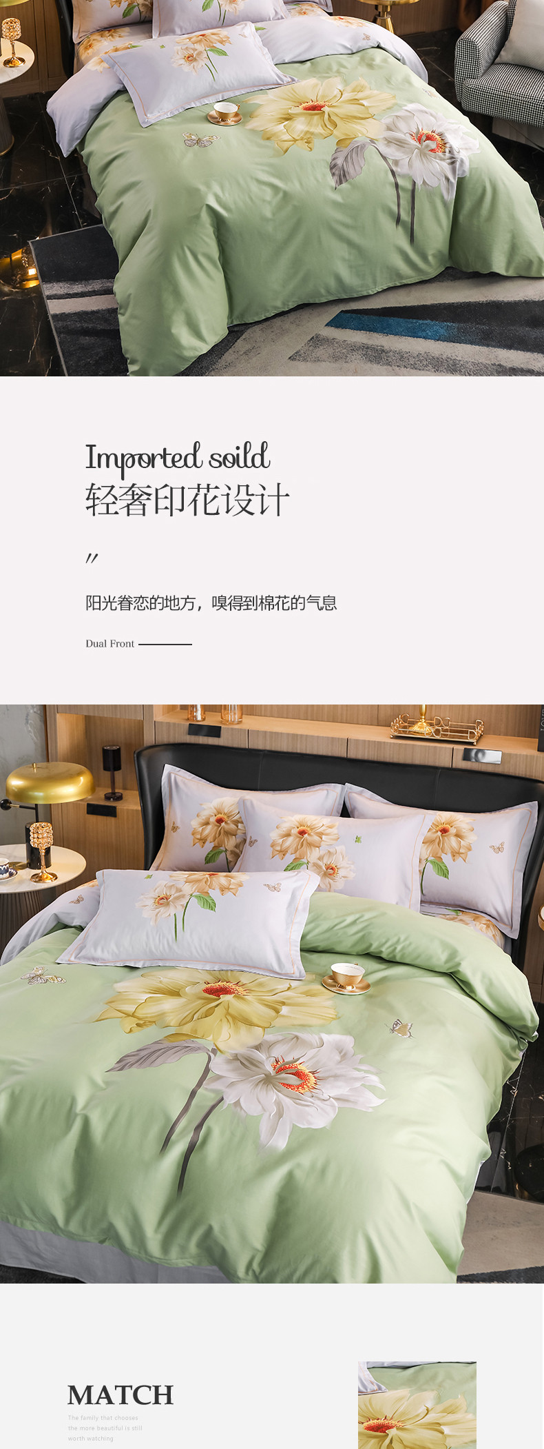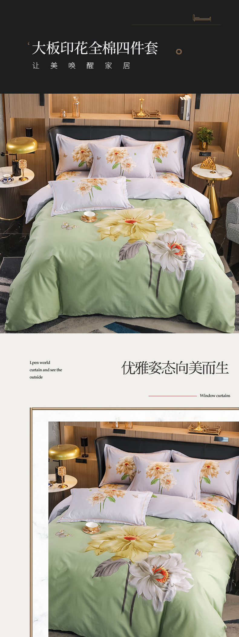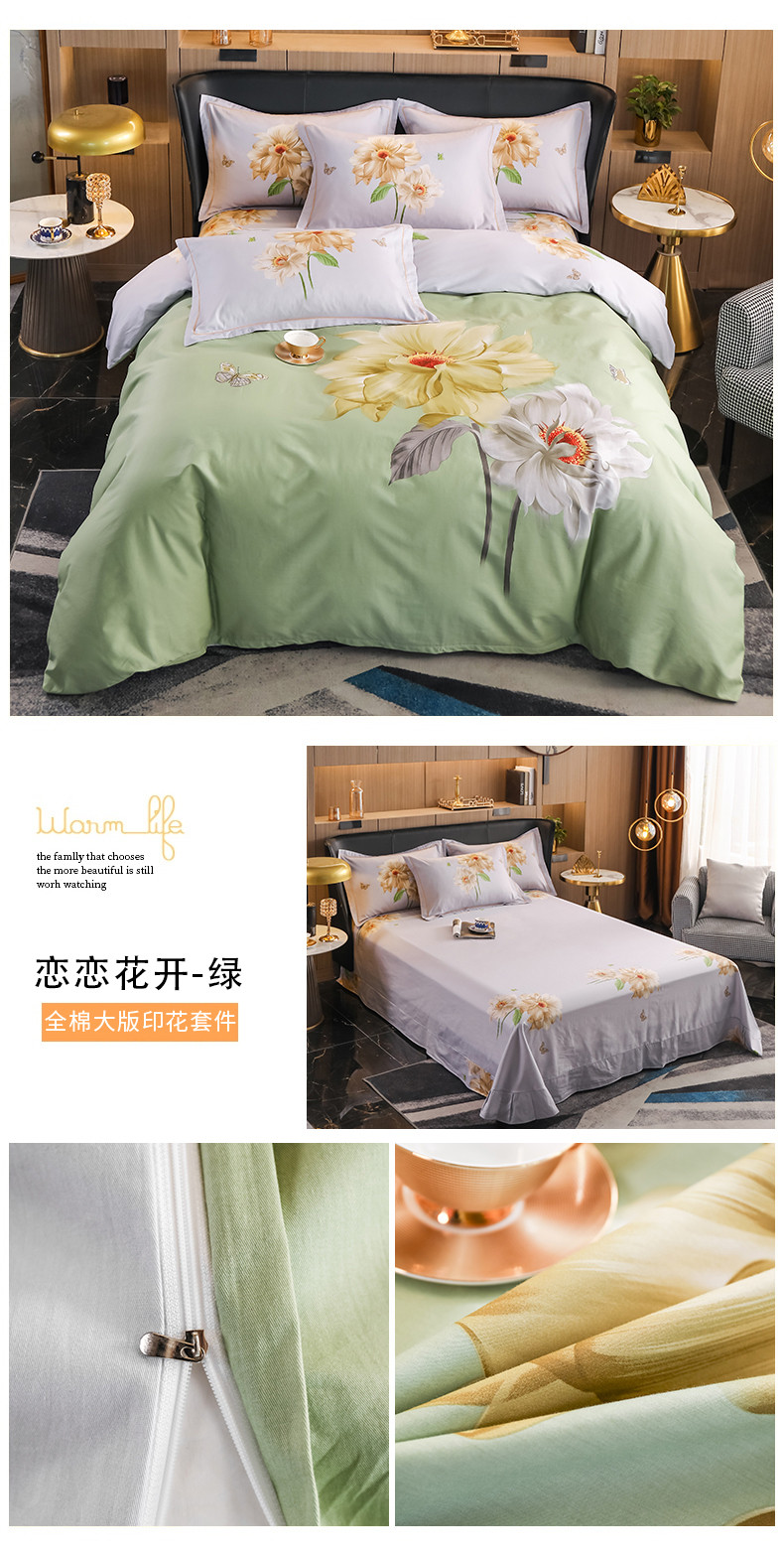商品名称:雲归梦 2022新款全棉大版四件套 花卉花型 恋恋花开-绿
