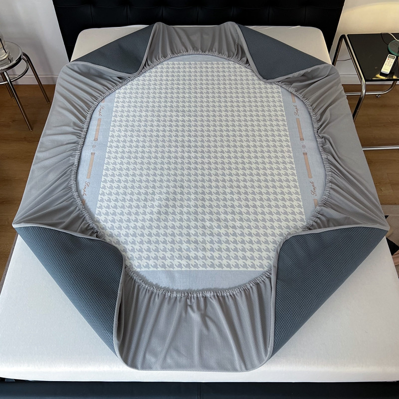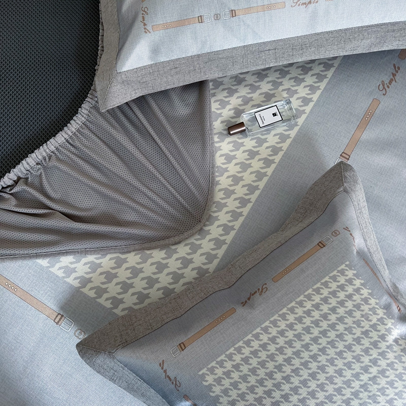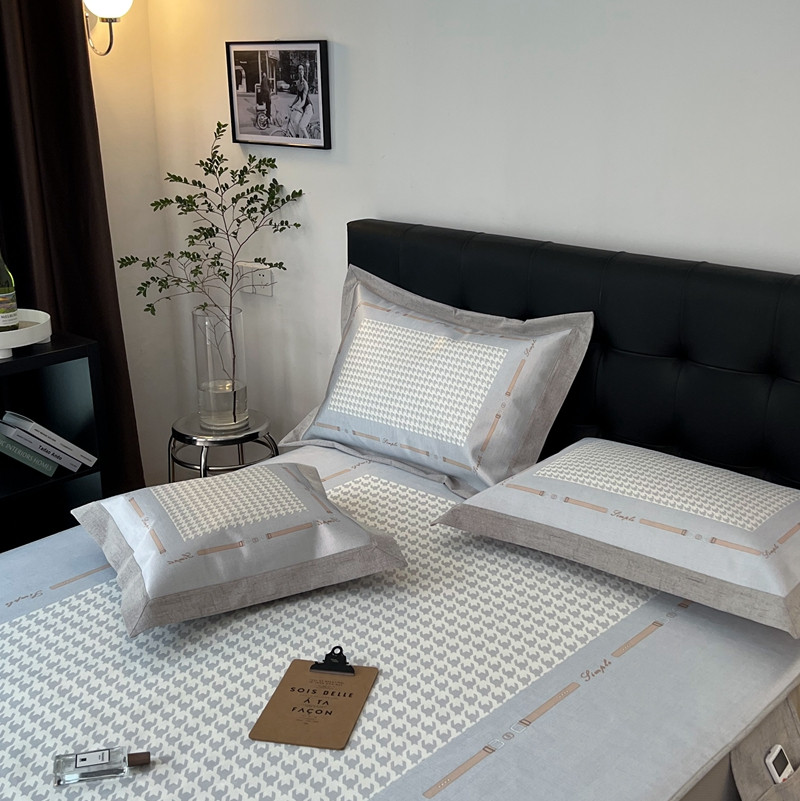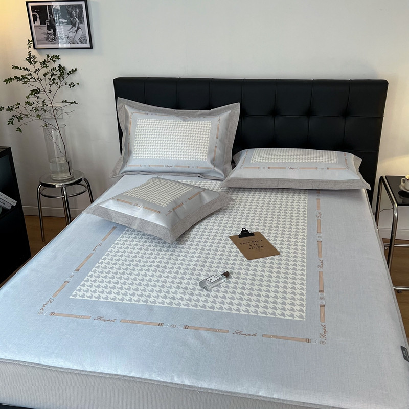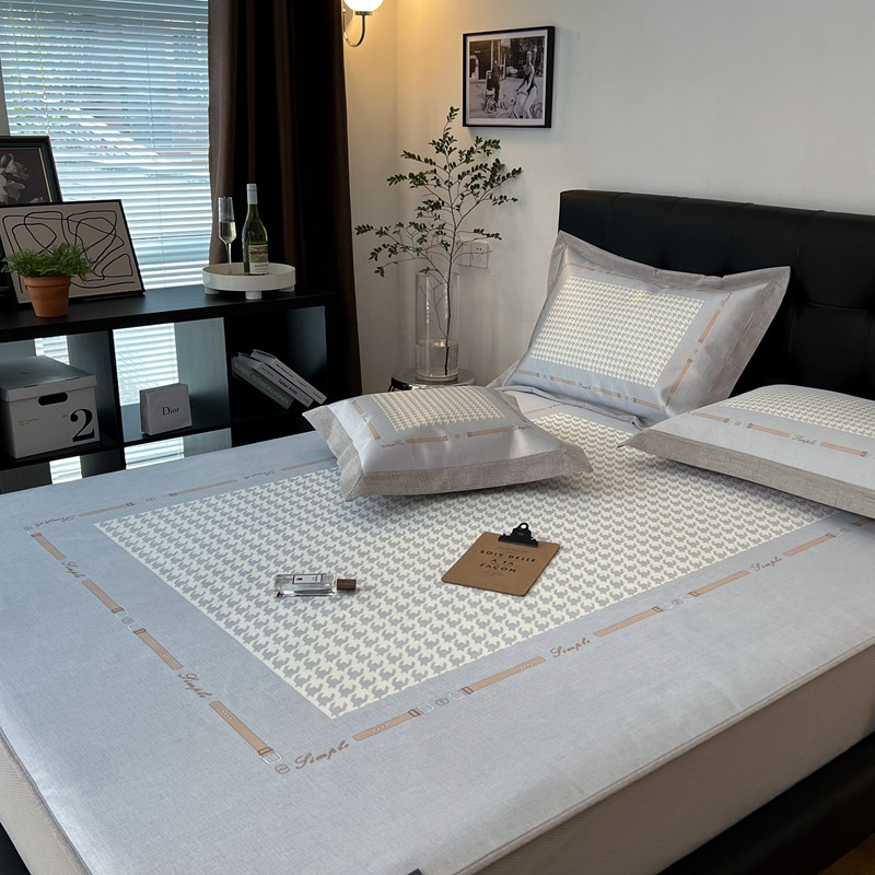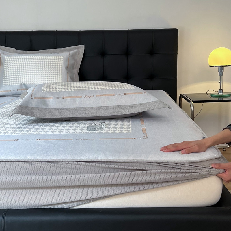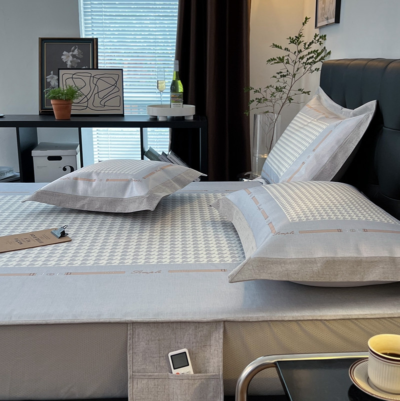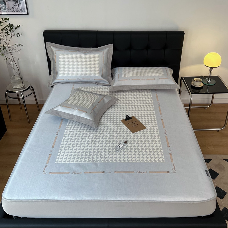 本希 2022高端数码印花水洗冰丝席床笠款-法式简约系列 爱马仕千鸟格