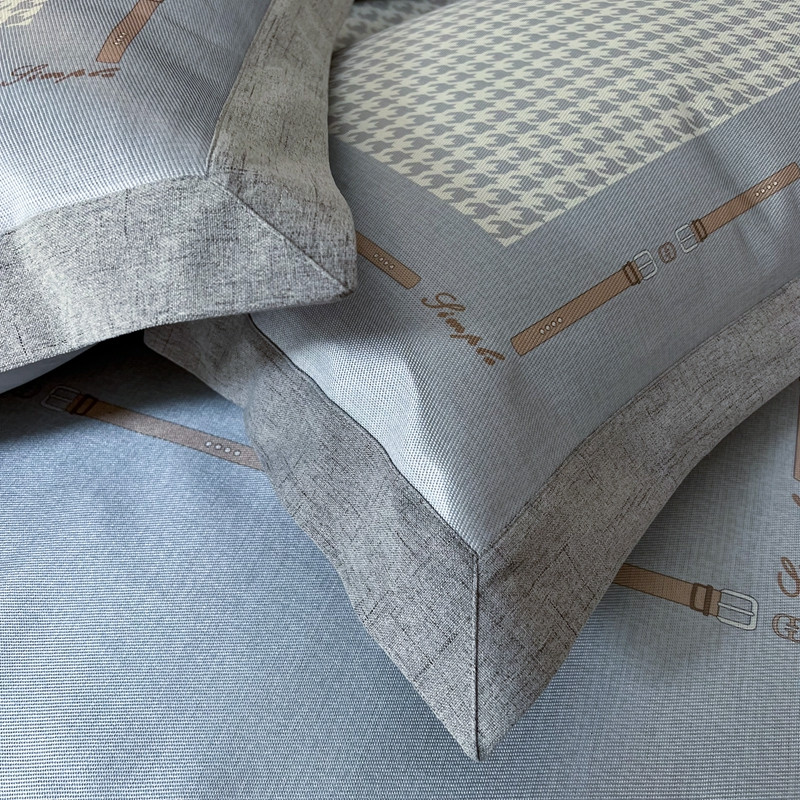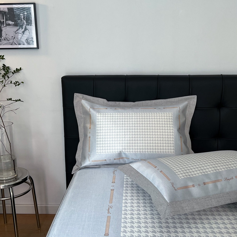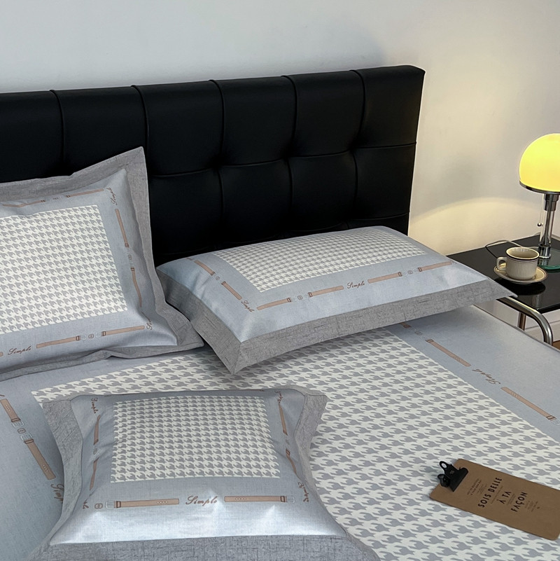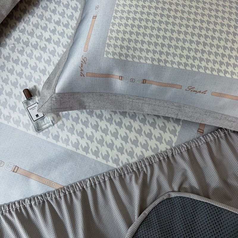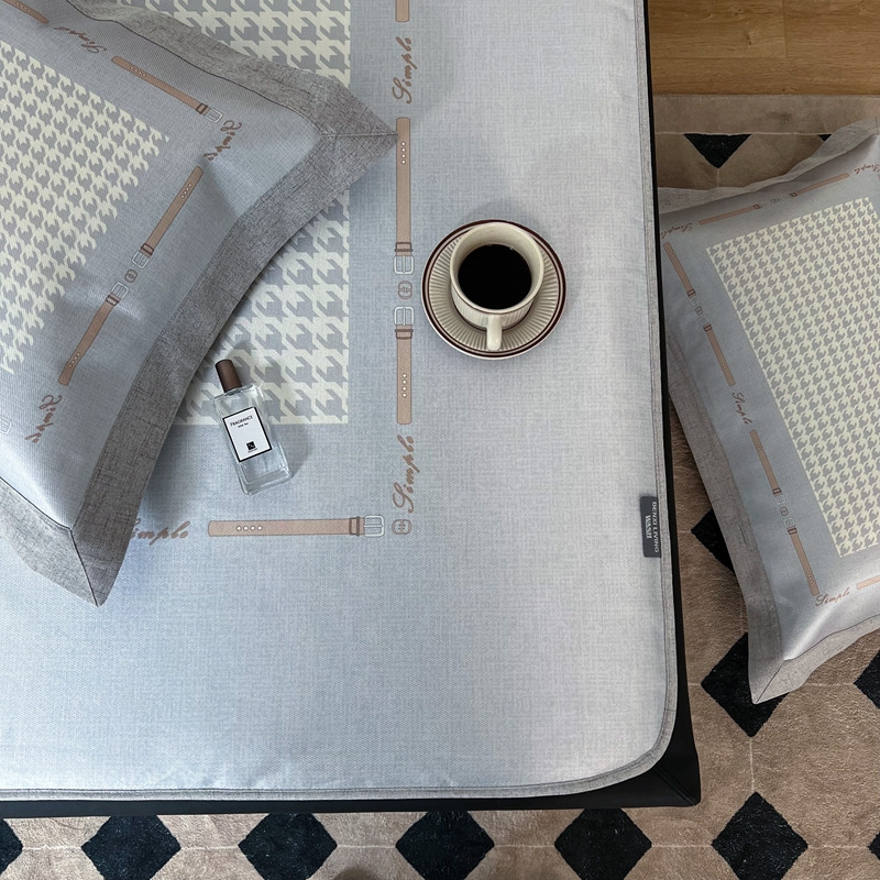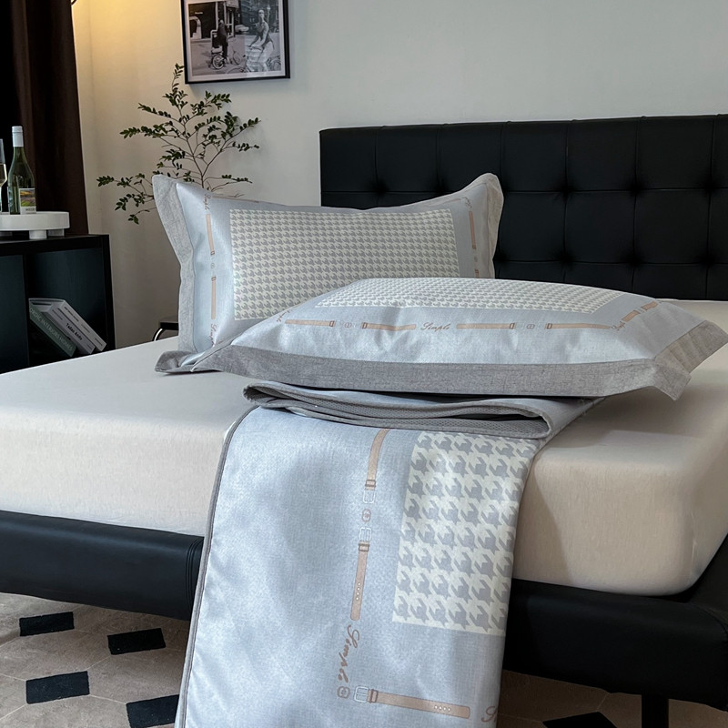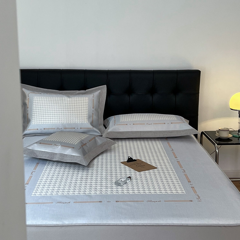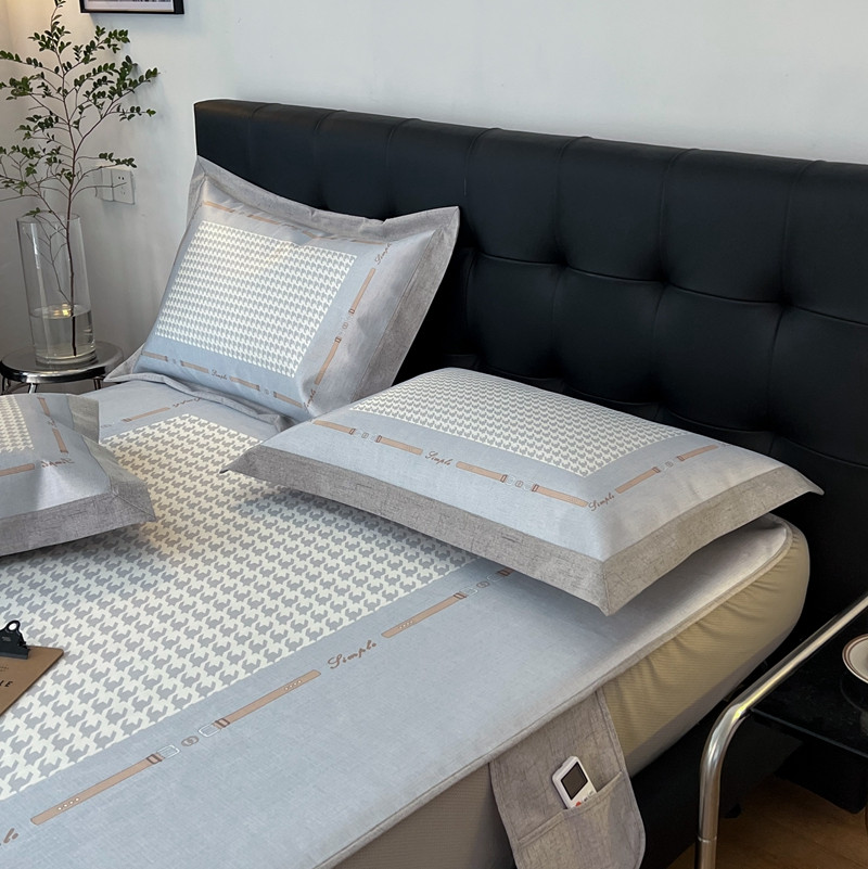 本希 2022高端数码印花水洗冰丝席床笠款-法式简约系列 爱马仕千鸟格