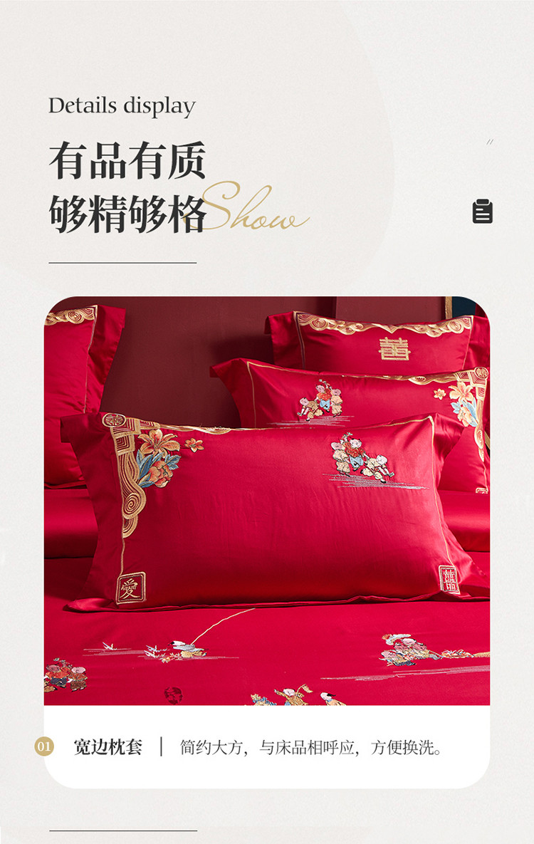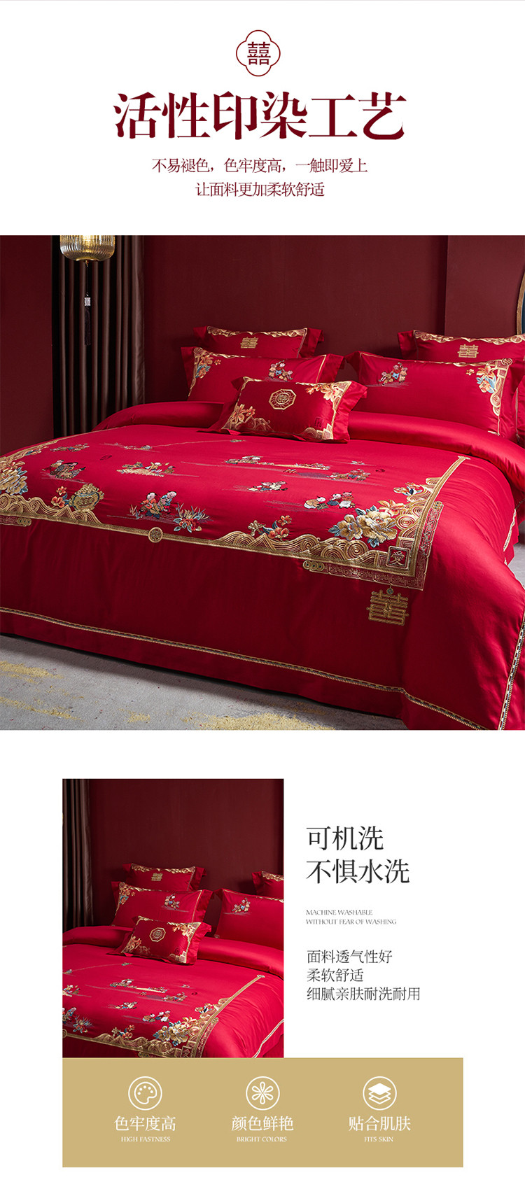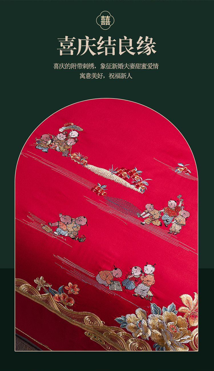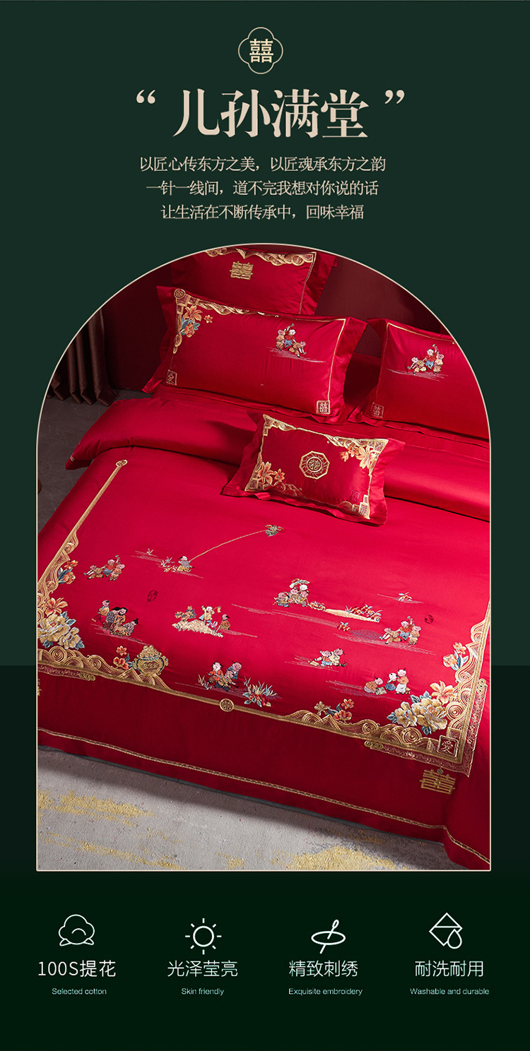 当前位置: 91家纺网 > 商品网购 > 床品套件 > 多件套 > 高大尚 2022新款长绒棉提花婚庆-儿孙满堂