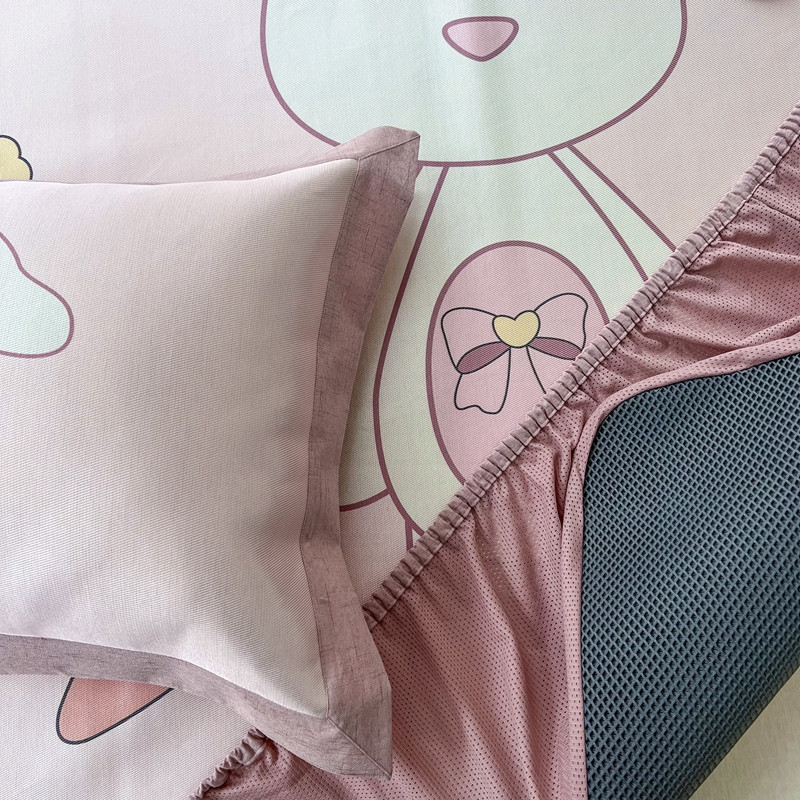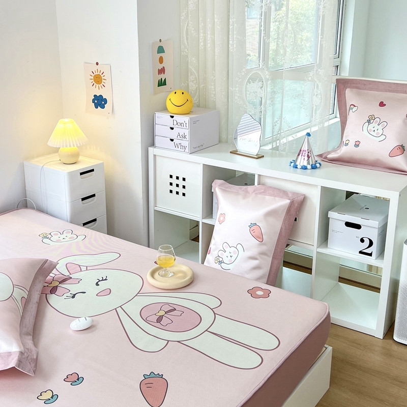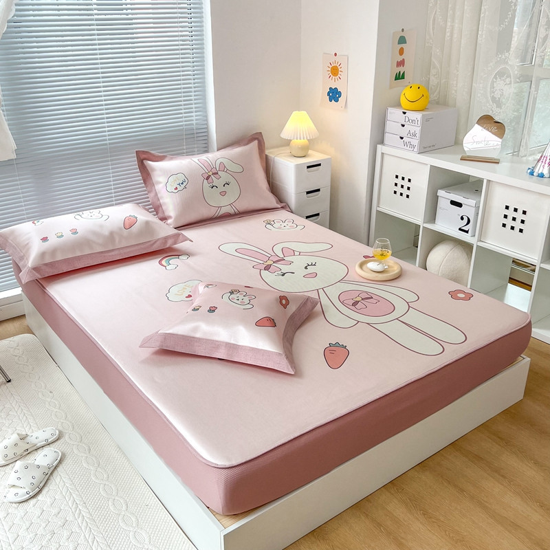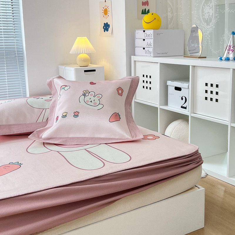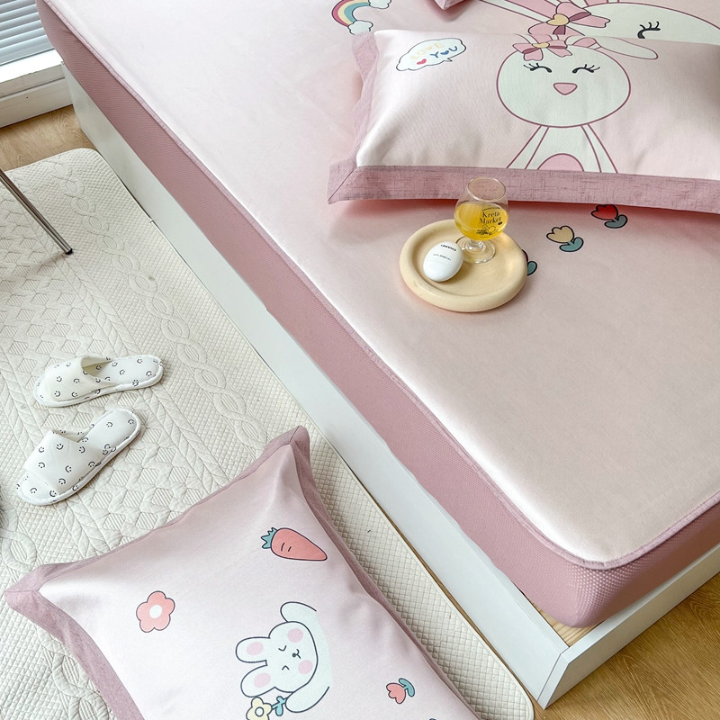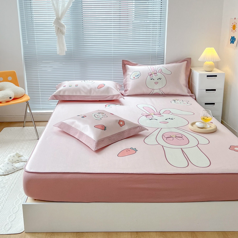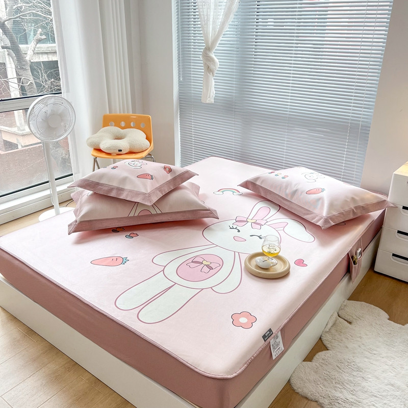 本希 2022新款水洗数码印花卡通简约冰丝席床笠款 长耳朵嘟嘟