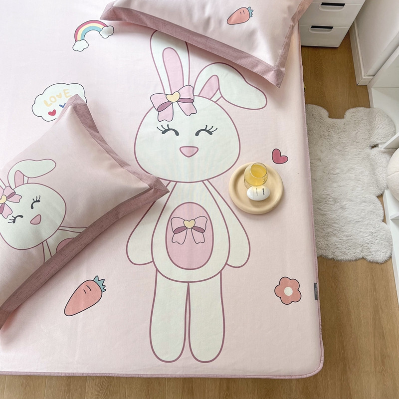 商品名称:本希 2022新款水洗数码印花卡通简约冰丝席床笠款 长耳朵嘟嘟