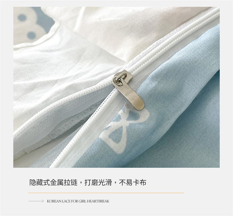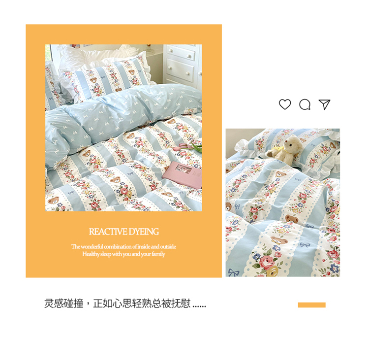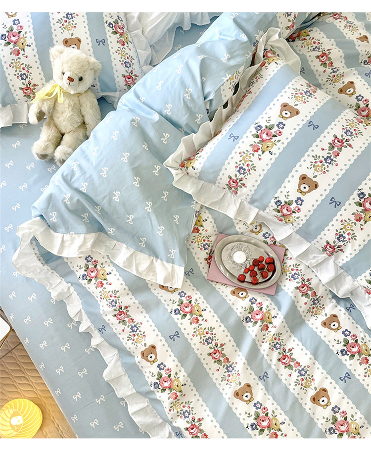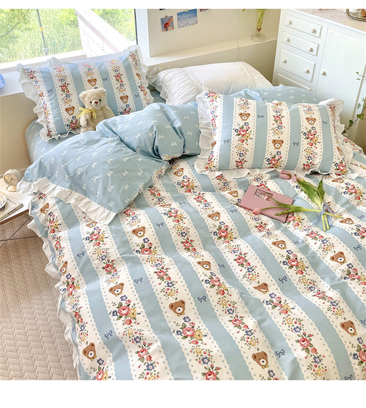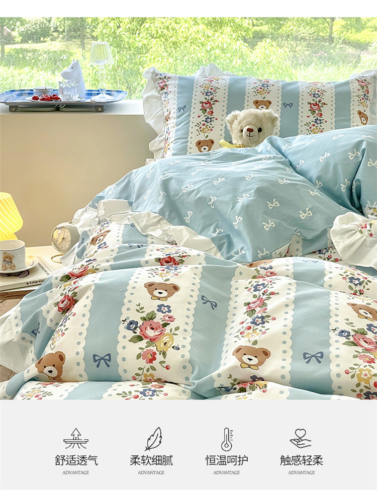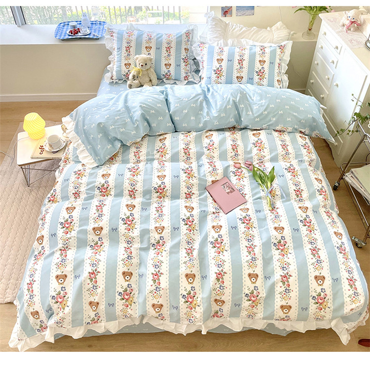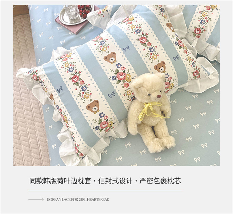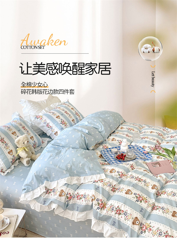 桃子家居 2022新款仙气奶油碎花少女心韩版花边纯棉四件套 花边蓝色思念