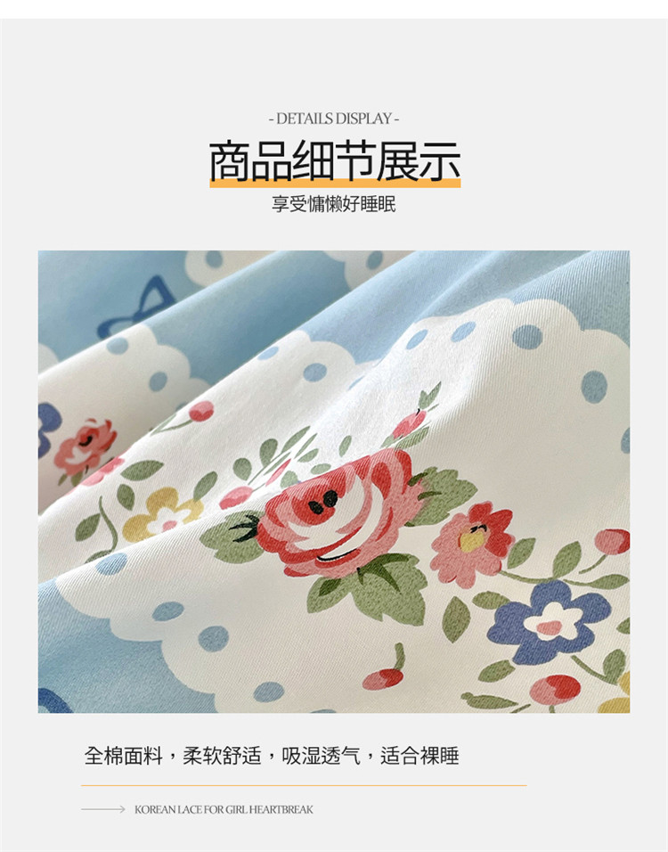 商品名称:桃子家居 2022新款仙气奶油碎花少女心韩版花边纯棉四件套 花边蓝色思念