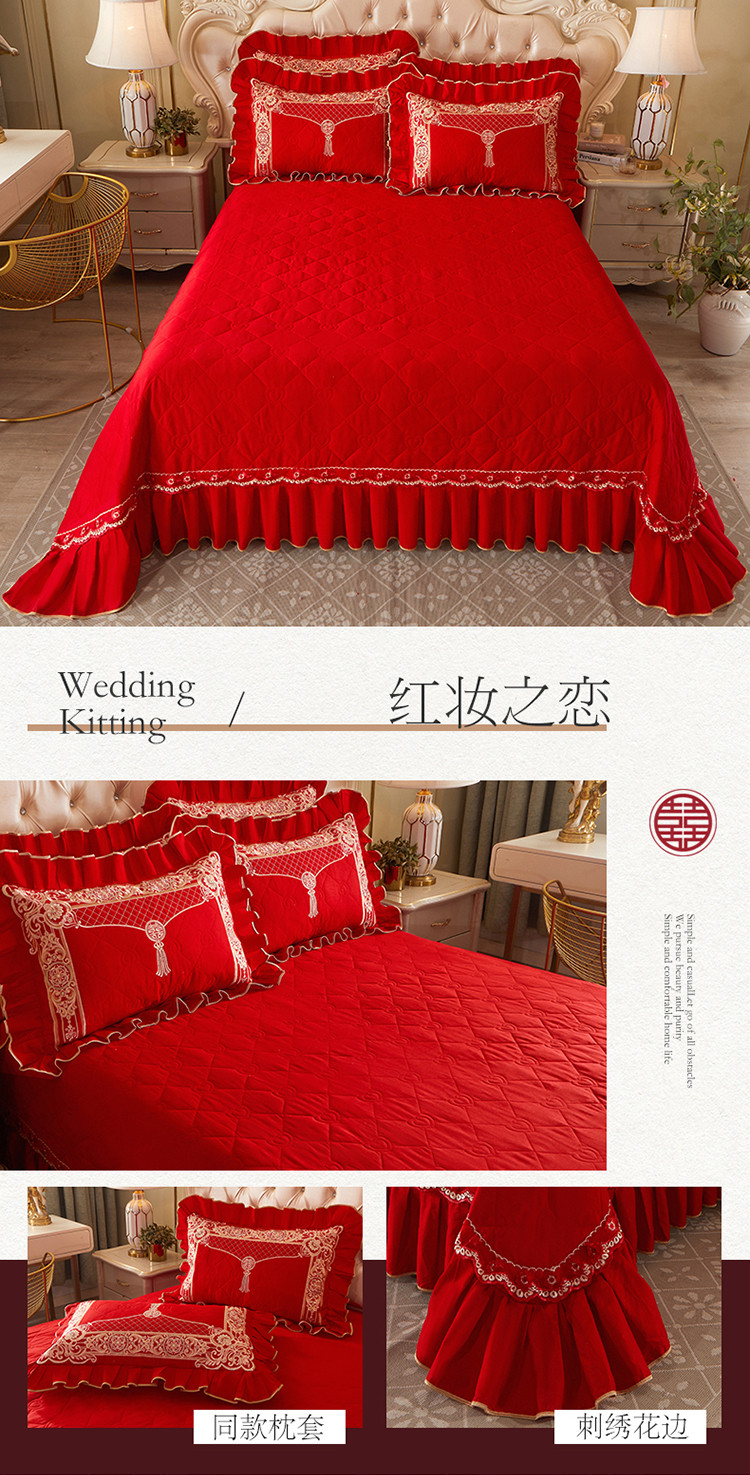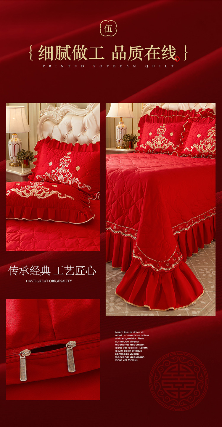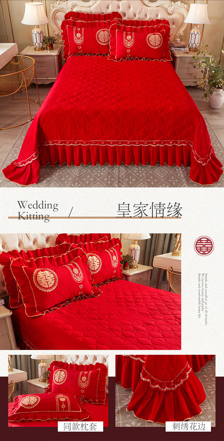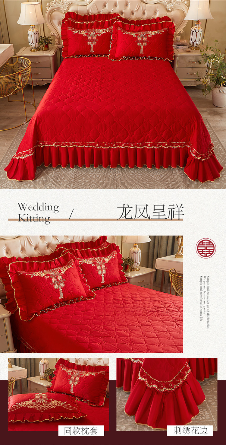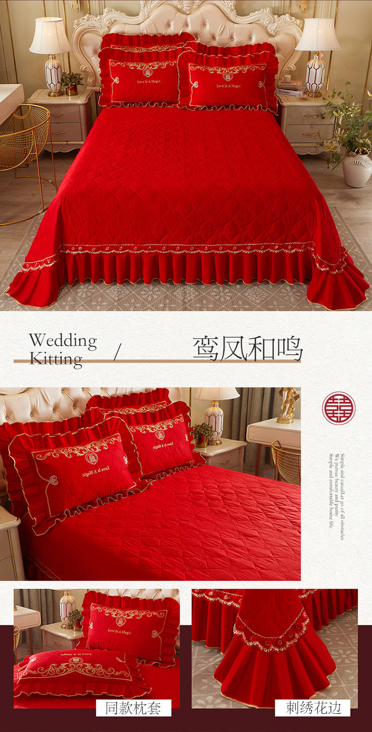(总)宜凡 2022新款绣花婚庆全棉夹棉床盖三件套