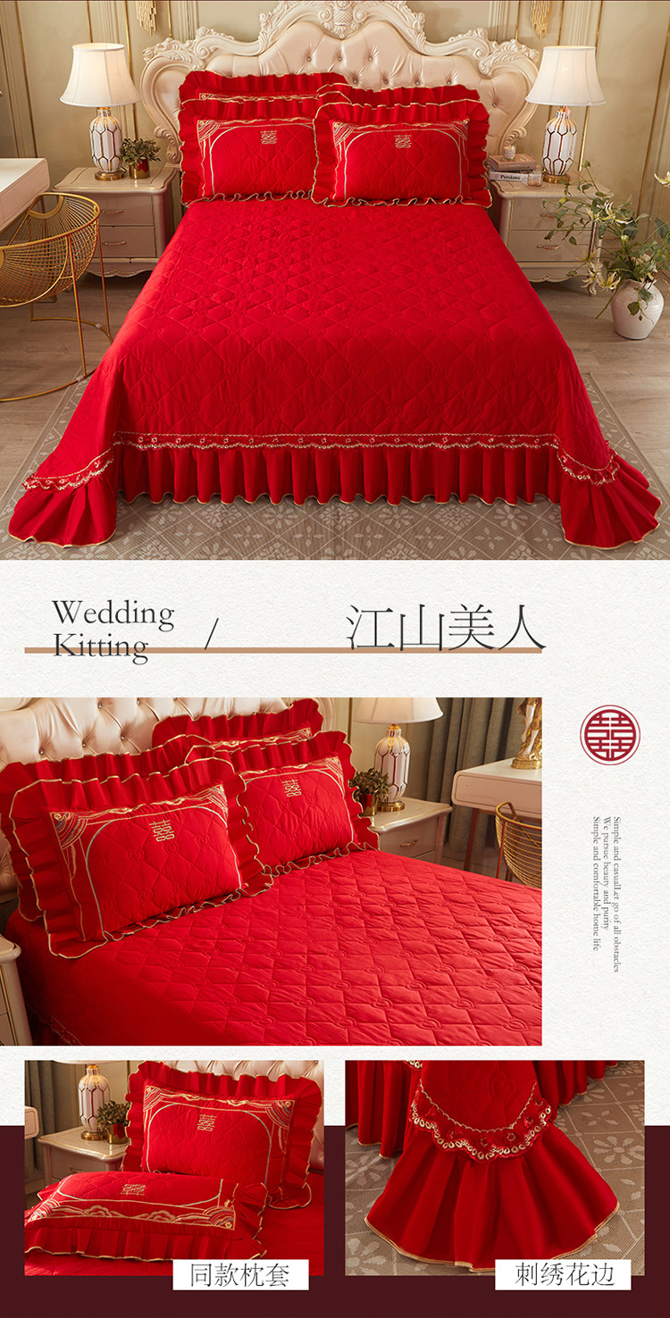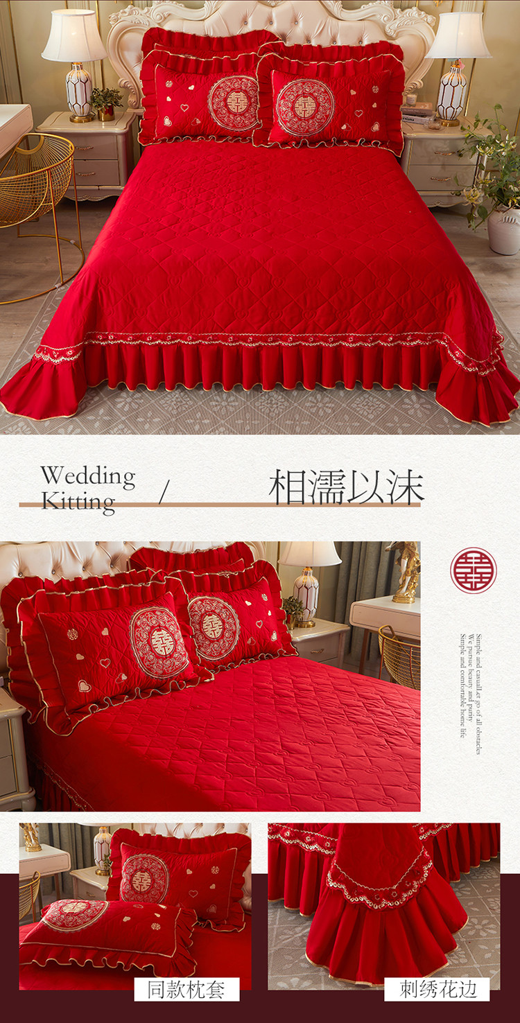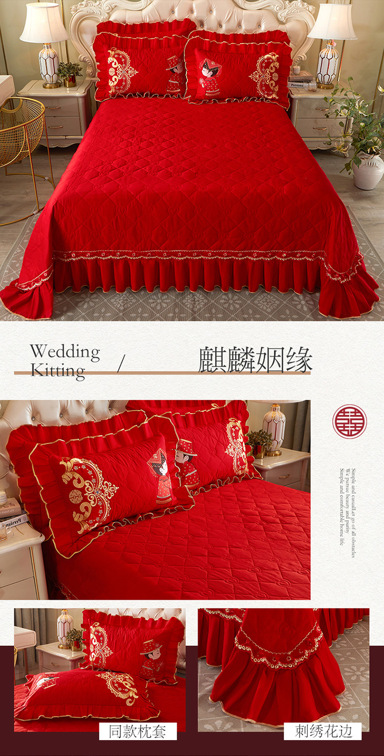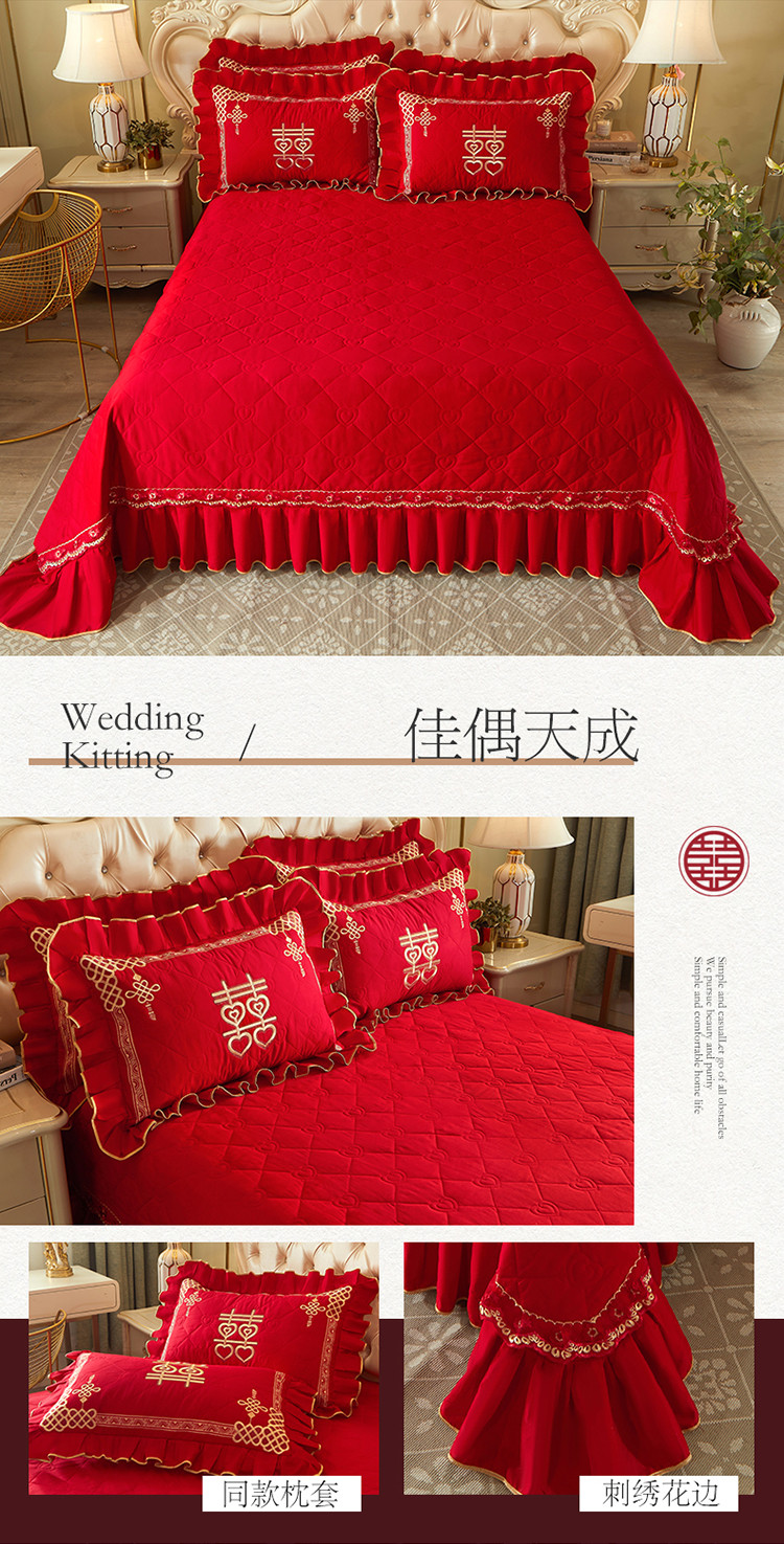(总)宜凡 2022新款绣花婚庆全棉夹棉床盖三件套