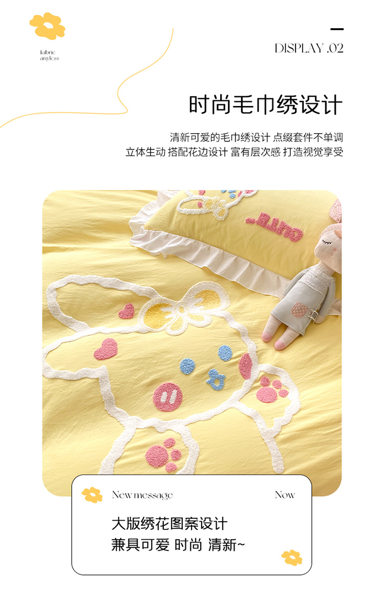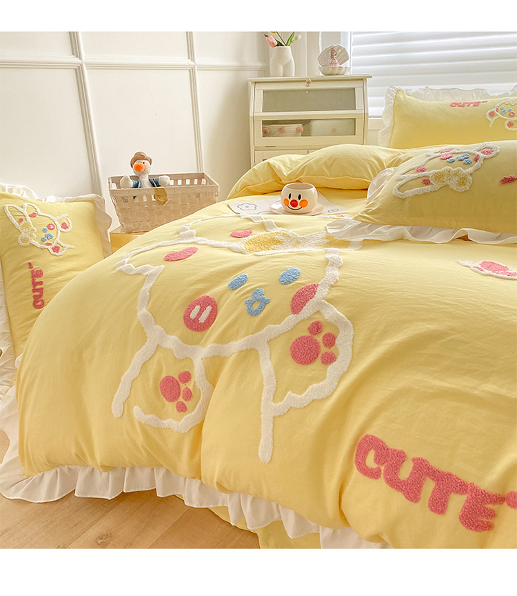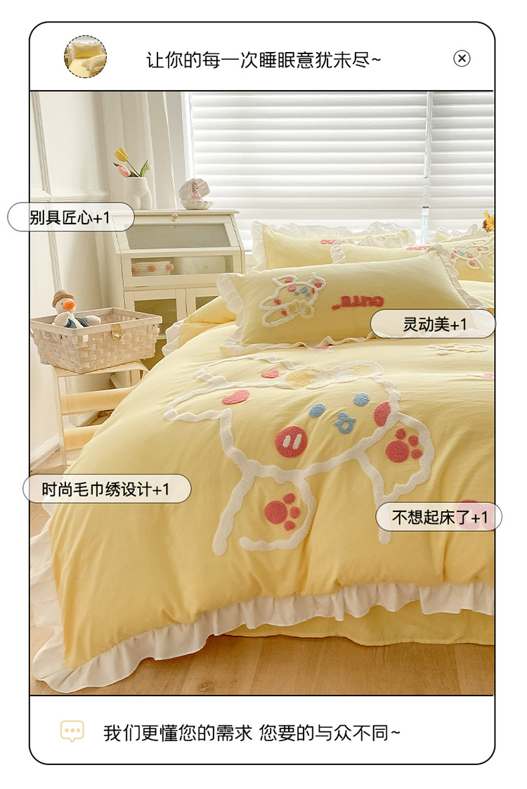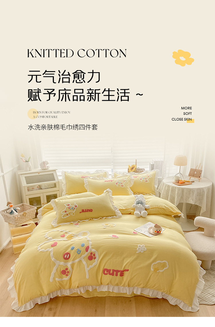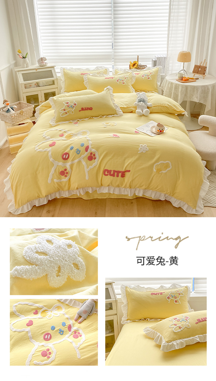 当前位置: 91家纺网 > 商品网购 > 床品套件 > 四件套 > 水洗棉四件套 > 泉欣 2024新款网红水洗棉毛巾绣韩版四件套可爱兔可爱兔-黄