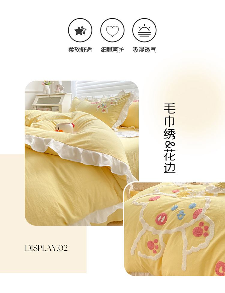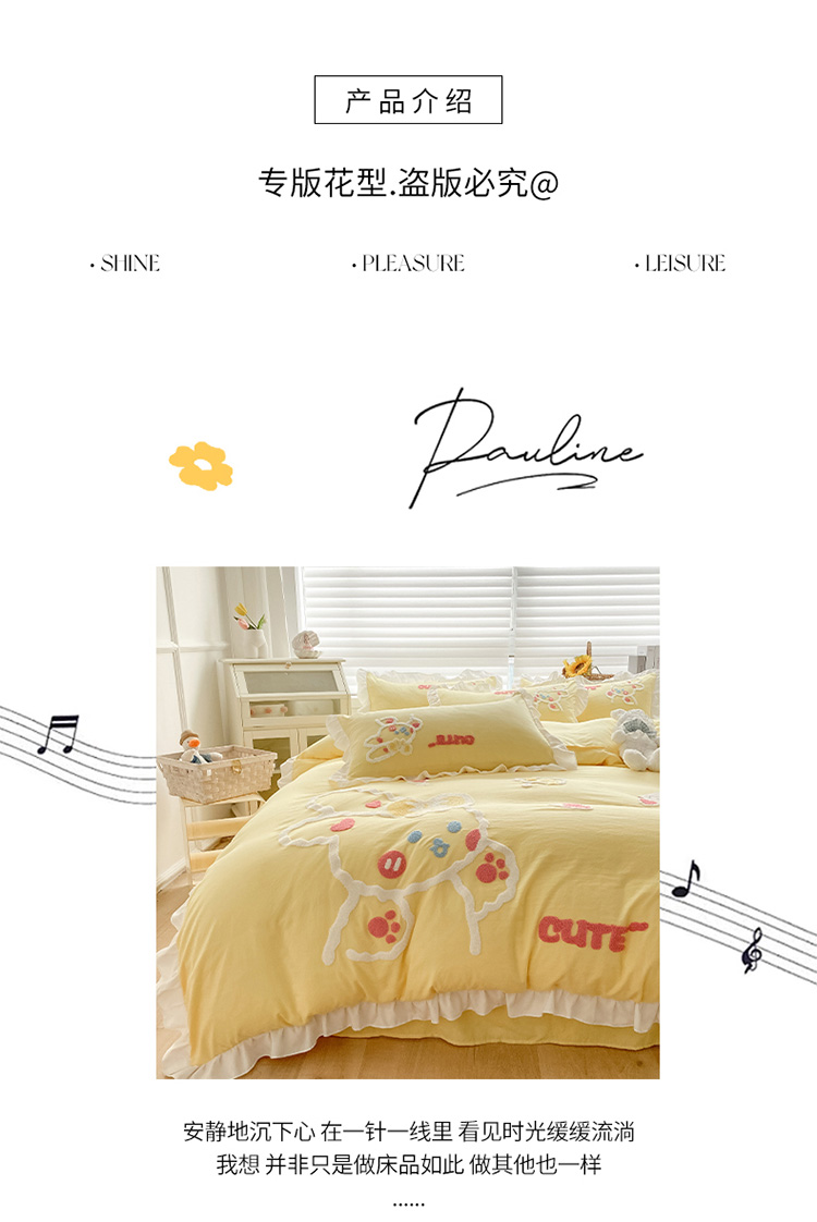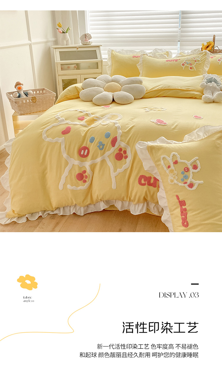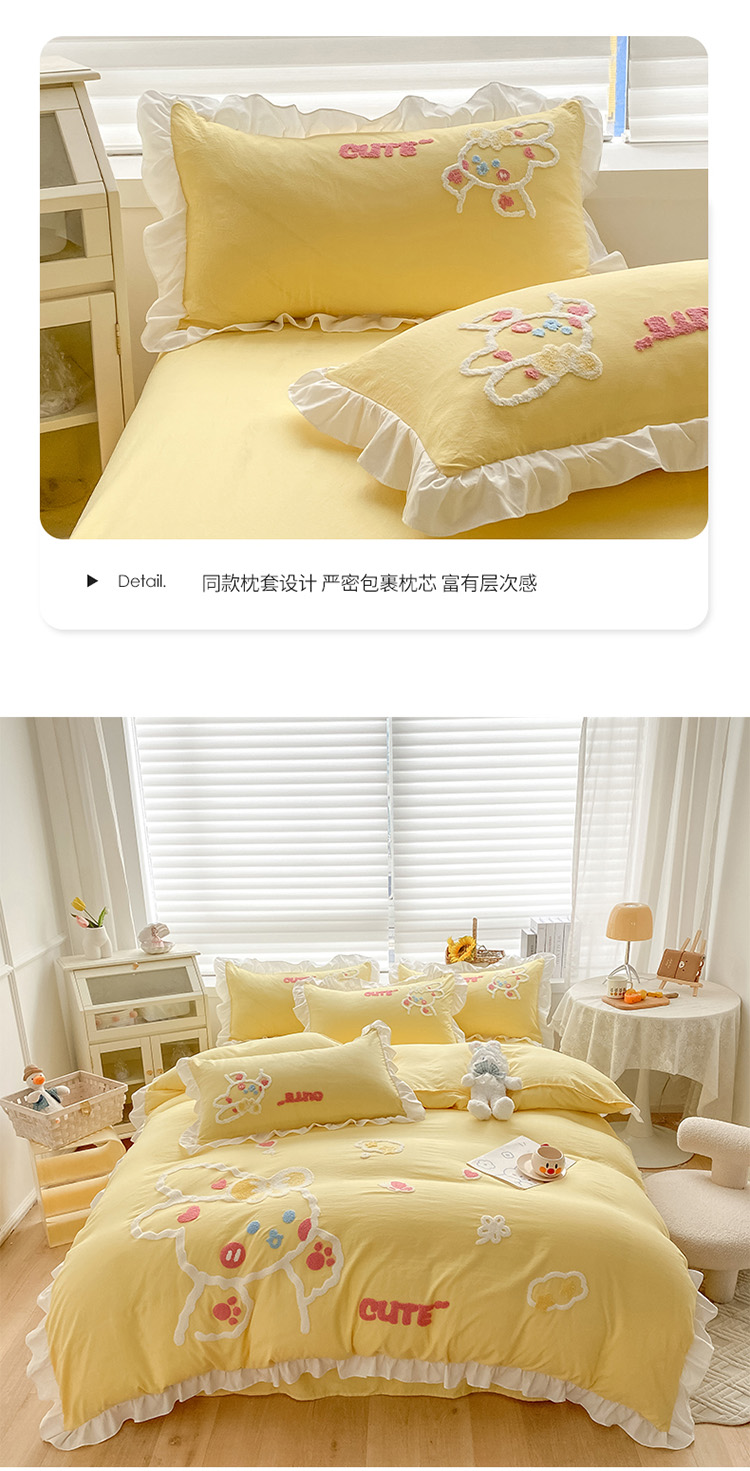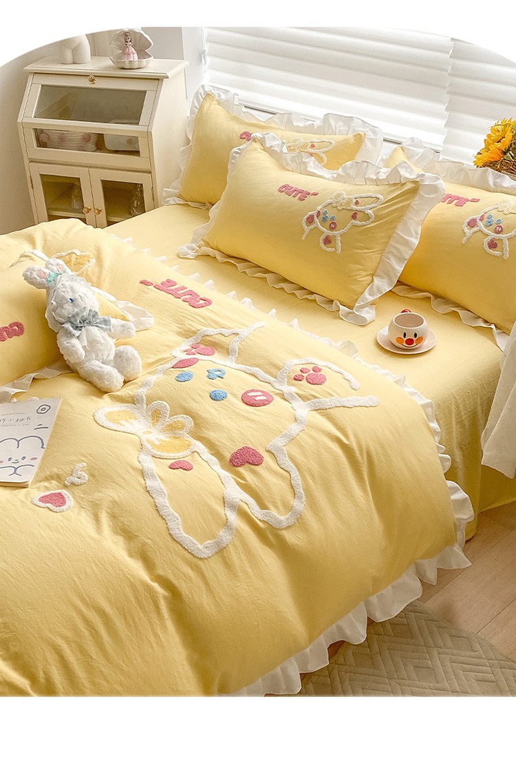 当前位置: 91家纺网 > 商品网购 > 床品套件 > 四件套 > 水洗棉四件套 > 泉欣 2024新款网红水洗棉毛巾绣韩版四件套可爱兔可爱兔-黄