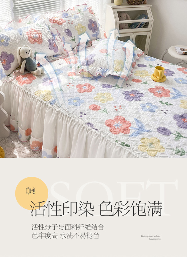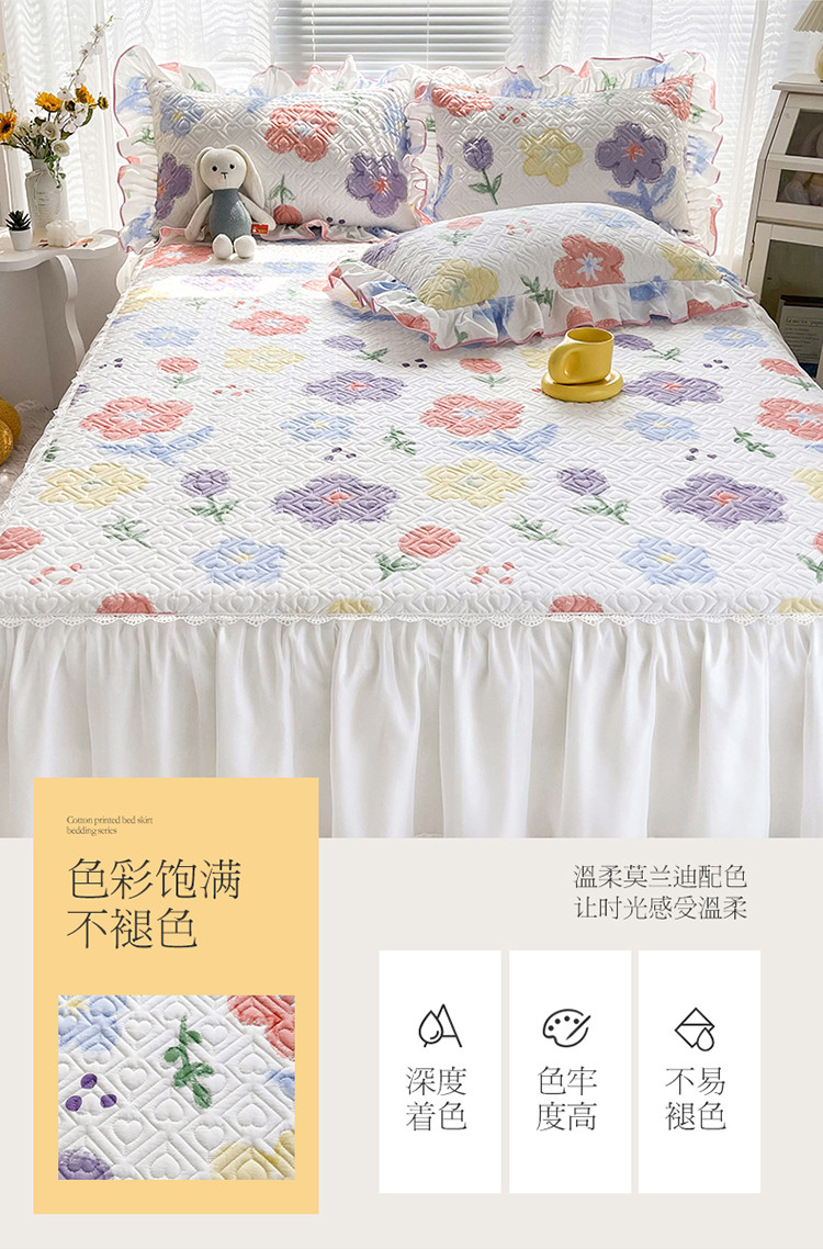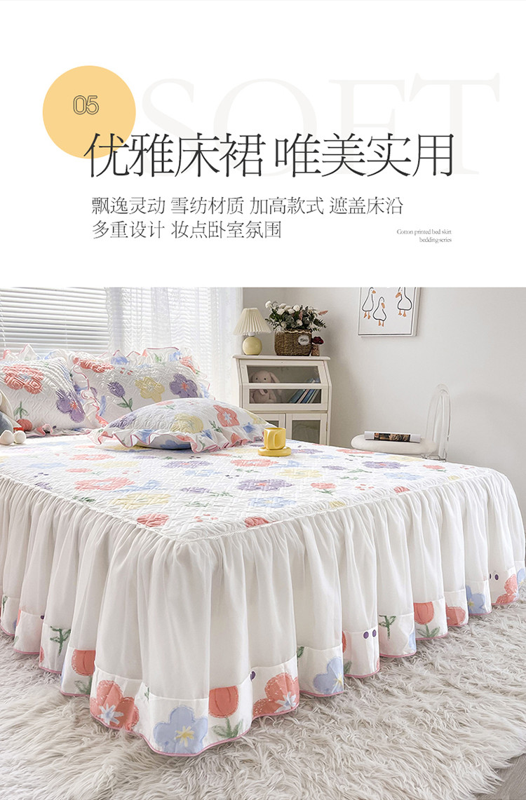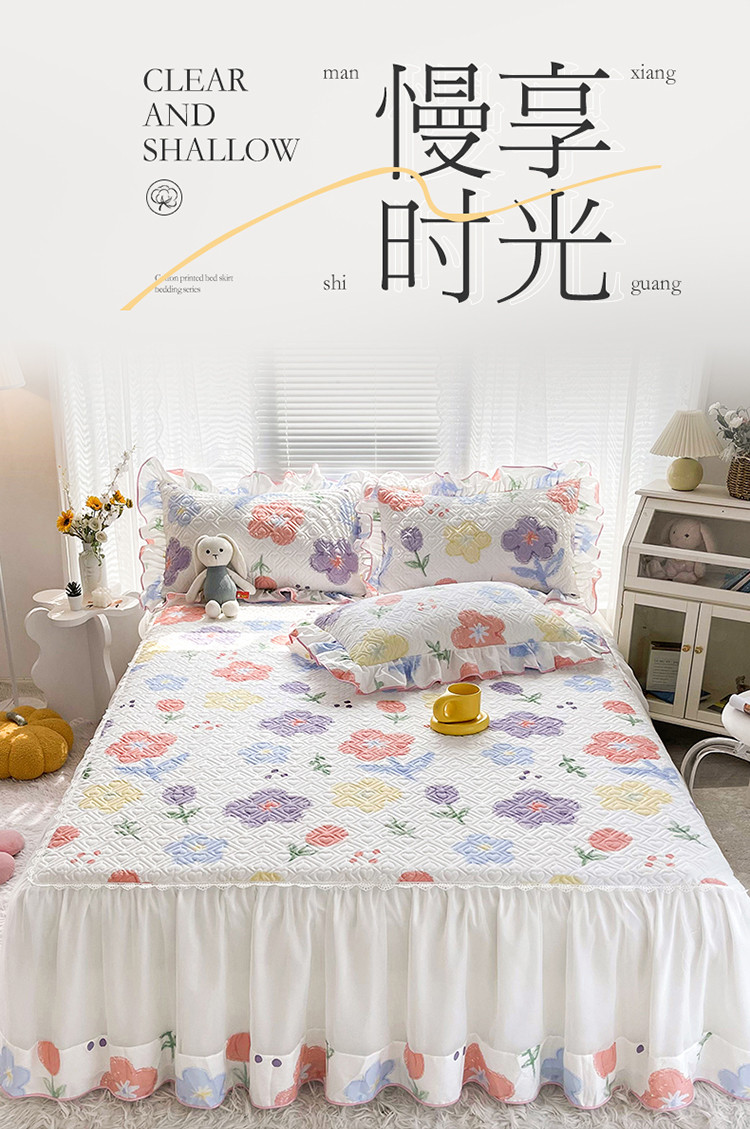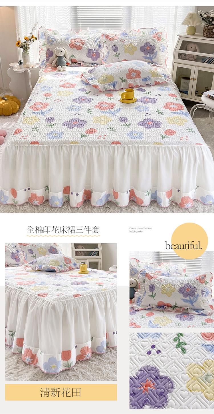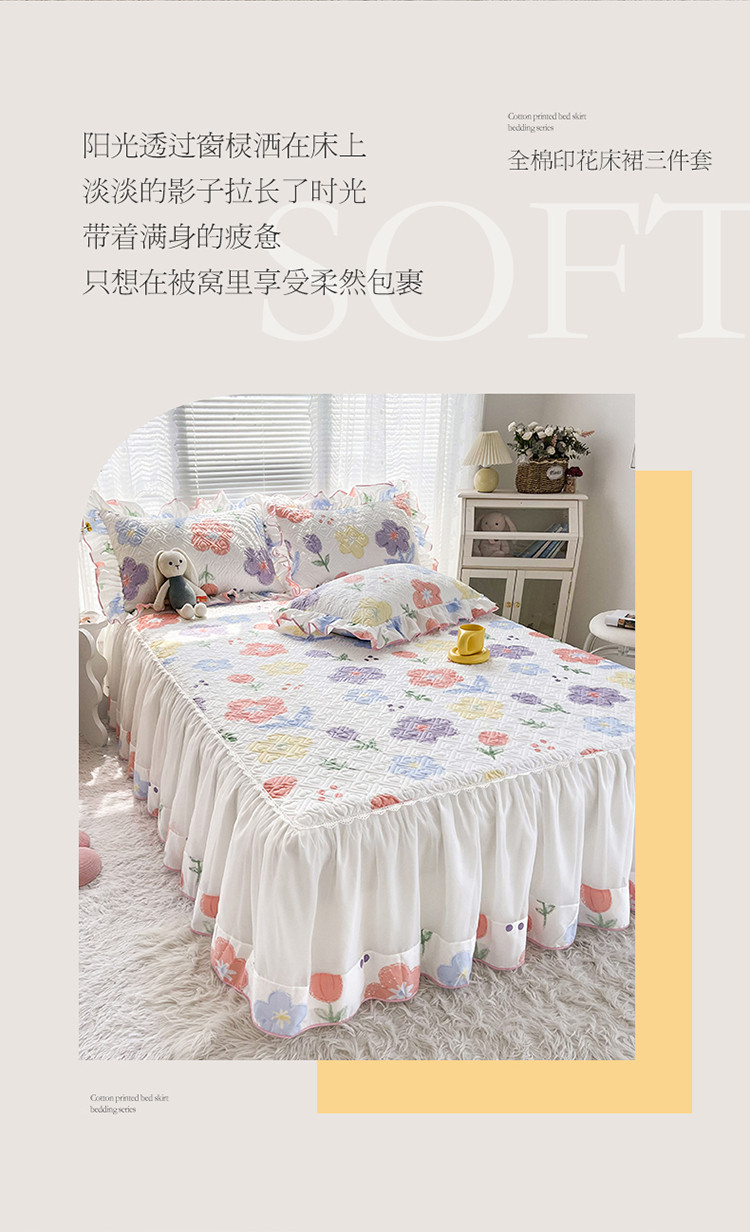 当前位置: 91家纺网 > 商品网购 > 床品套件 > 三件套 > 宜凡 2022新款全棉印花夹棉双层裙边床裙款三件套 清新花田