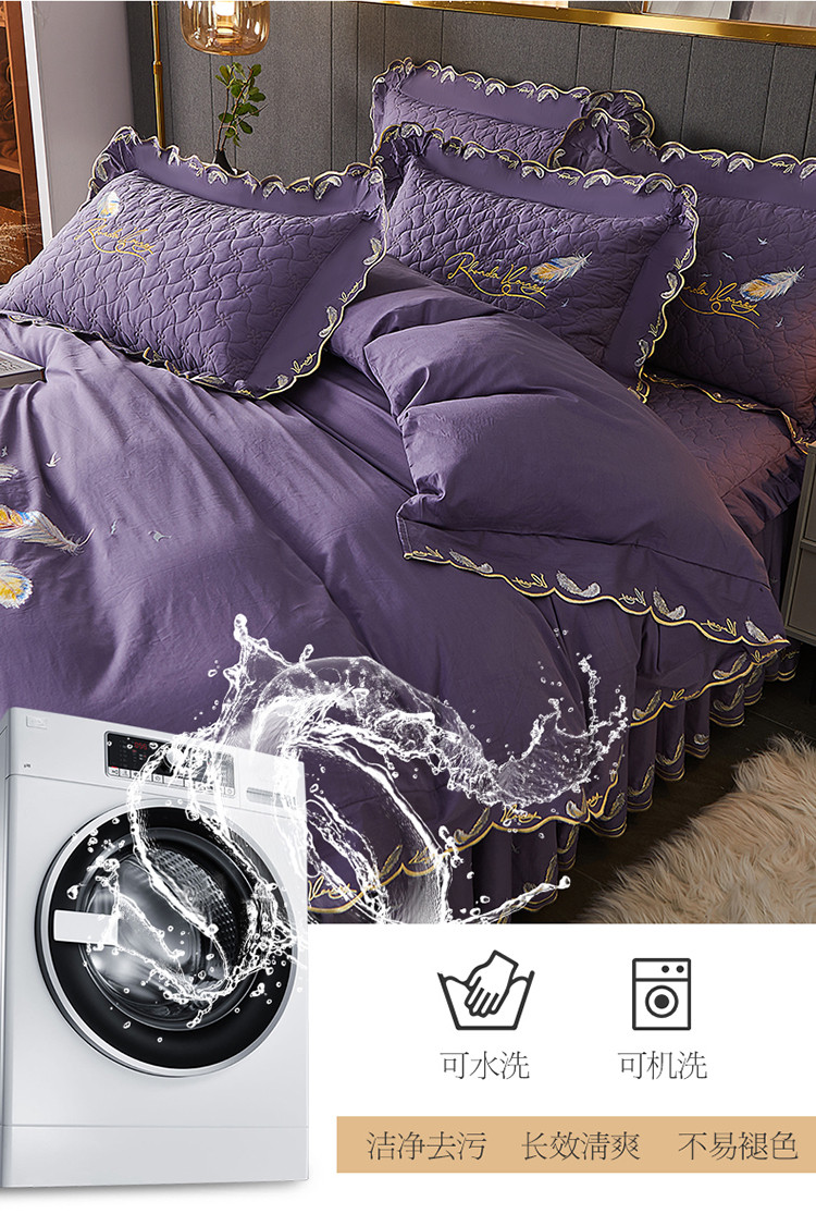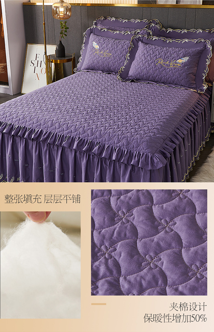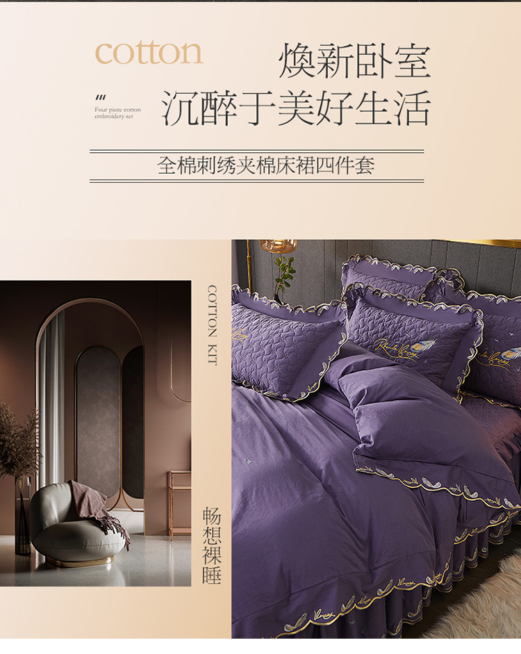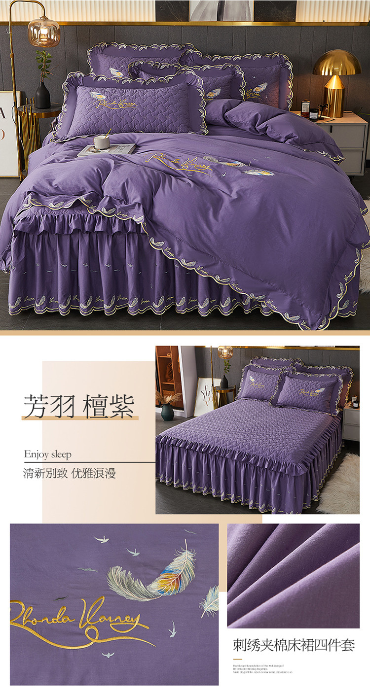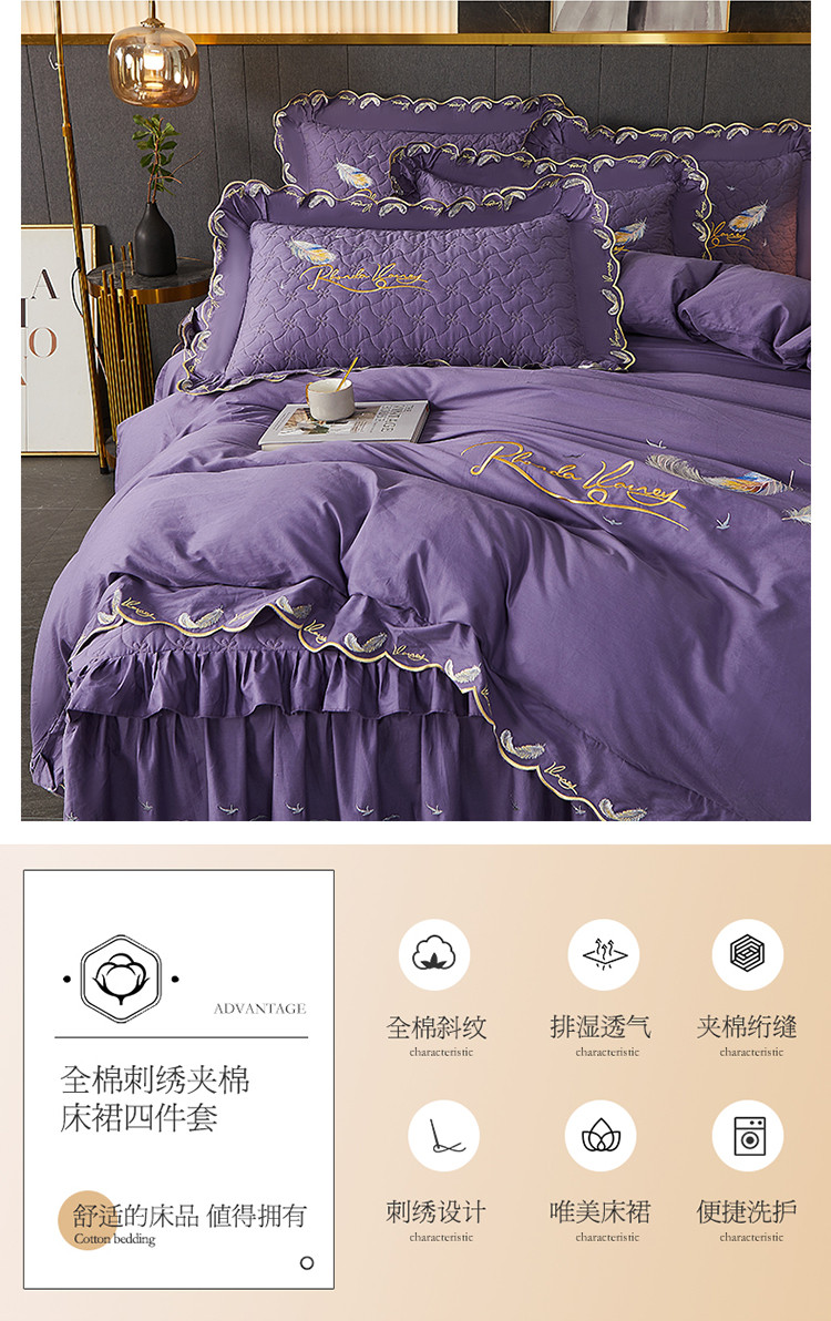 当前位置: 91家纺网 > 商品网购 > 床品套件 > 四件套 > 全棉普通四件套 > 宜凡 2022新款全棉刺绣夹棉床裙款四件套-芳羽 芳羽檀紫